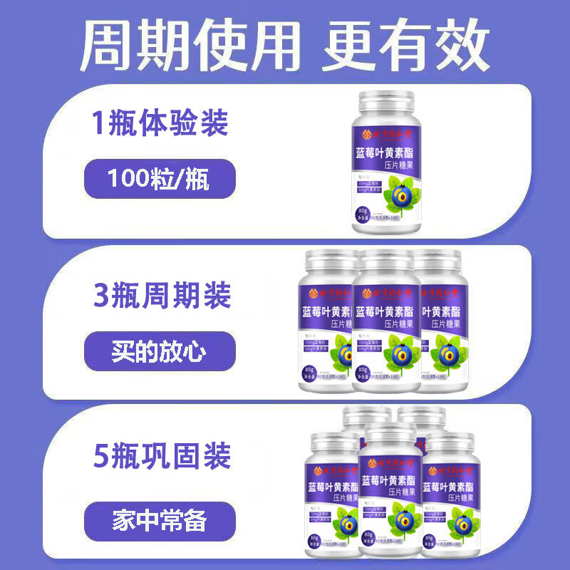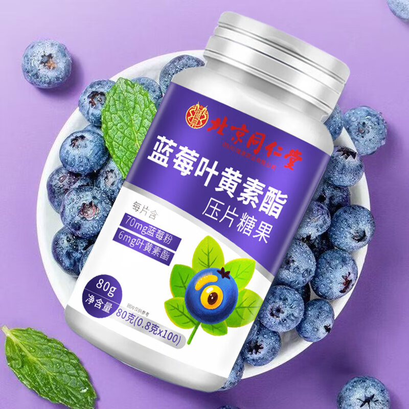 朕皇北京同仁堂蓝莓叶黄素片叶黄素软糖口感好全家适用罐装爱护眼睛 蓝莓叶黄素软糖30粒*3瓶