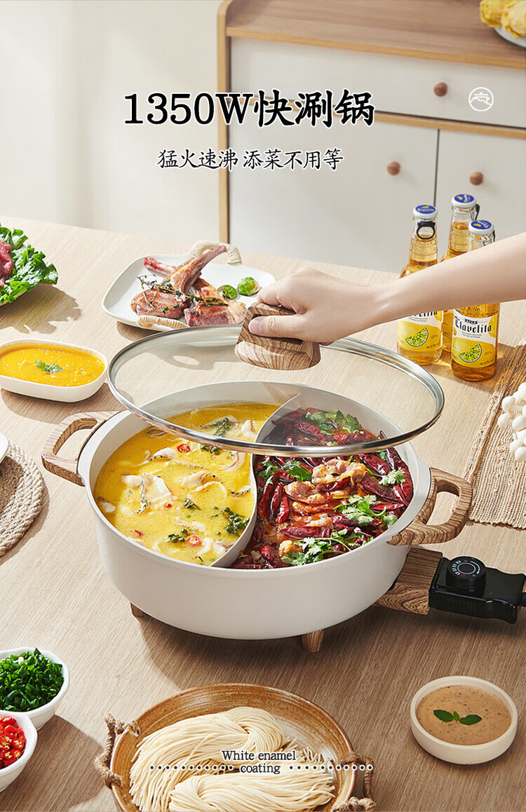 德国火锅专用锅一体电火锅鸳鸯电火锅家用多功能一体式专用电热火锅宿舍炒菜炒锅电煮锅421 黑色鸳鸯锅(3-10人适用)