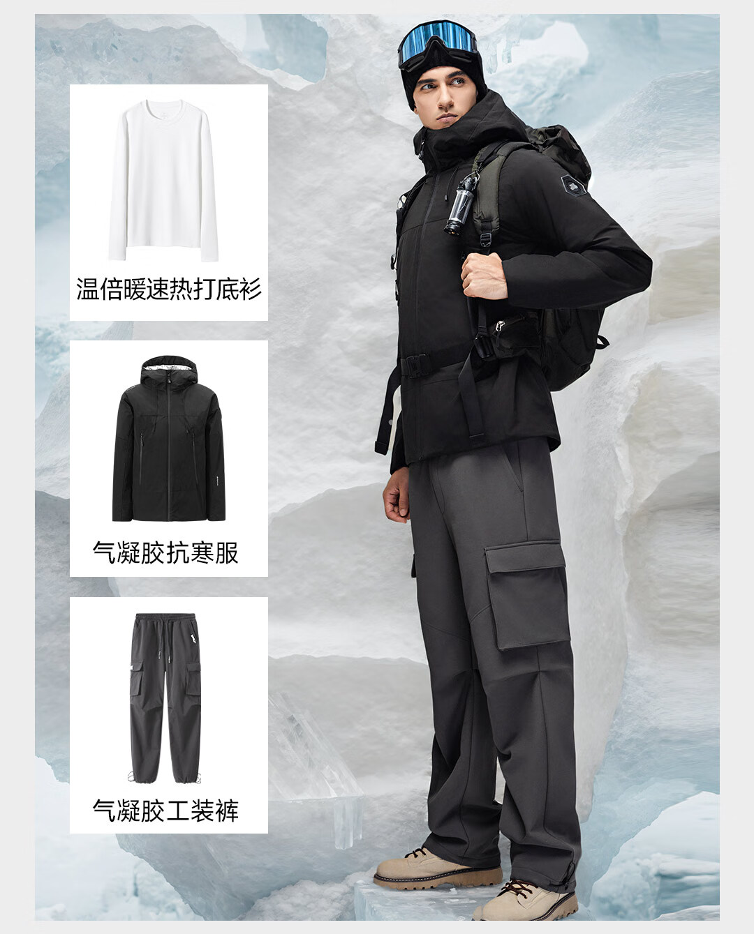 素湃气凝胶抗寒软壳工装裤防油防污冬户外保暖滑雪裤 曜石黑-男款 2XL