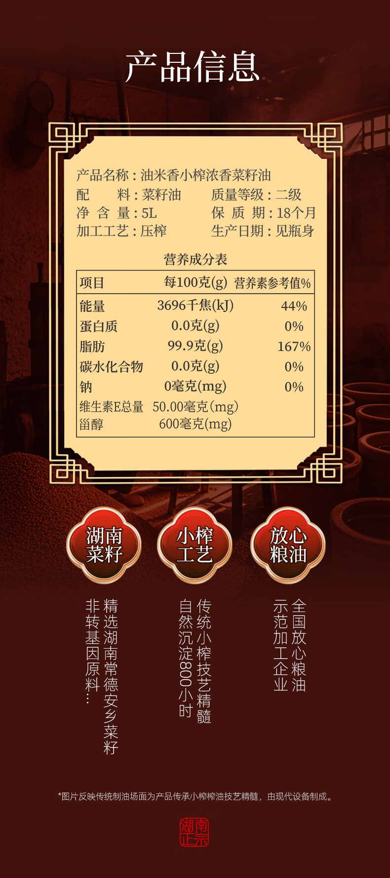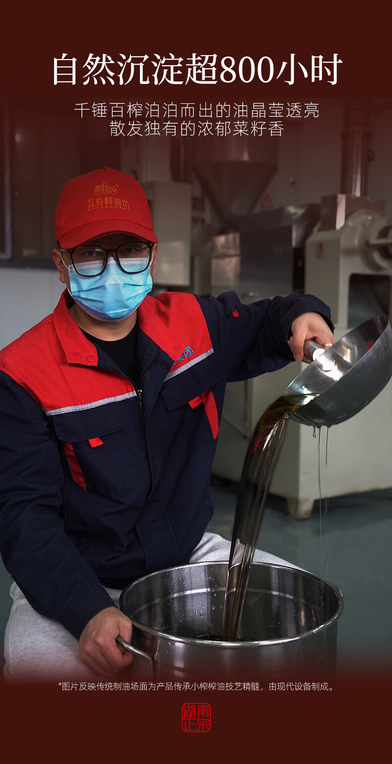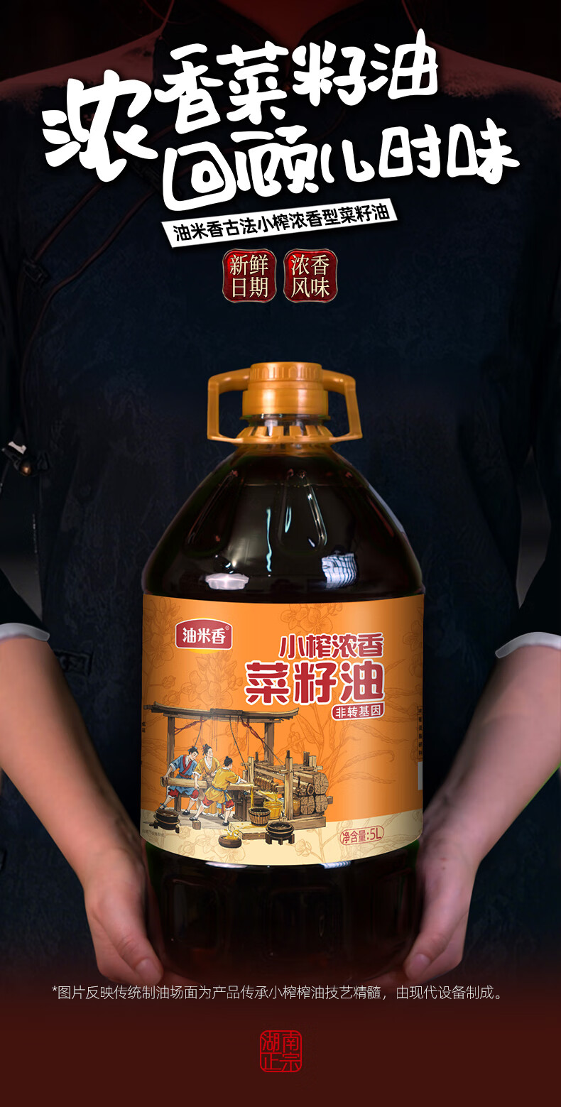 油米香小榨浓香菜籽油5L非转基因物理压榨二级湖南菜油家用食用油9.2斤