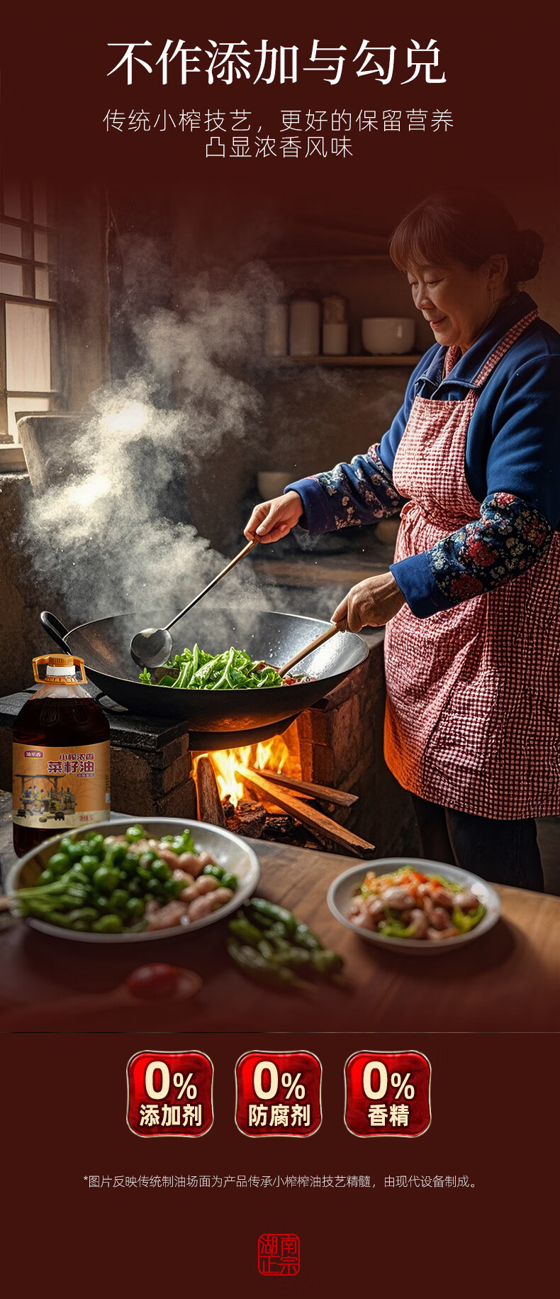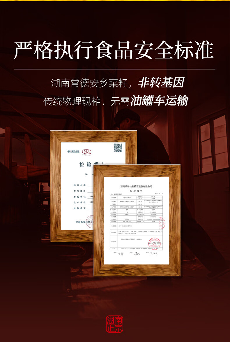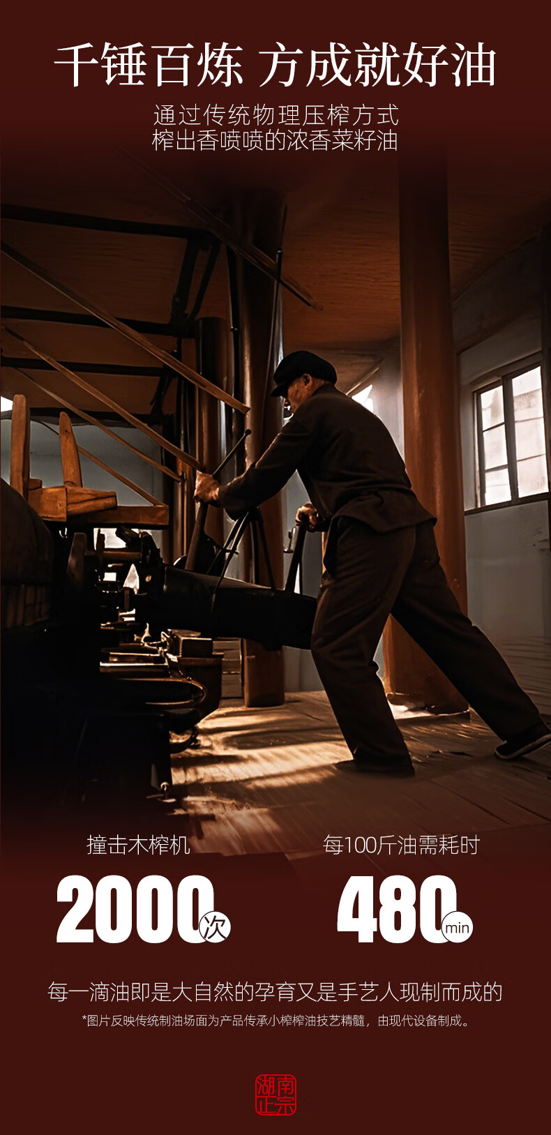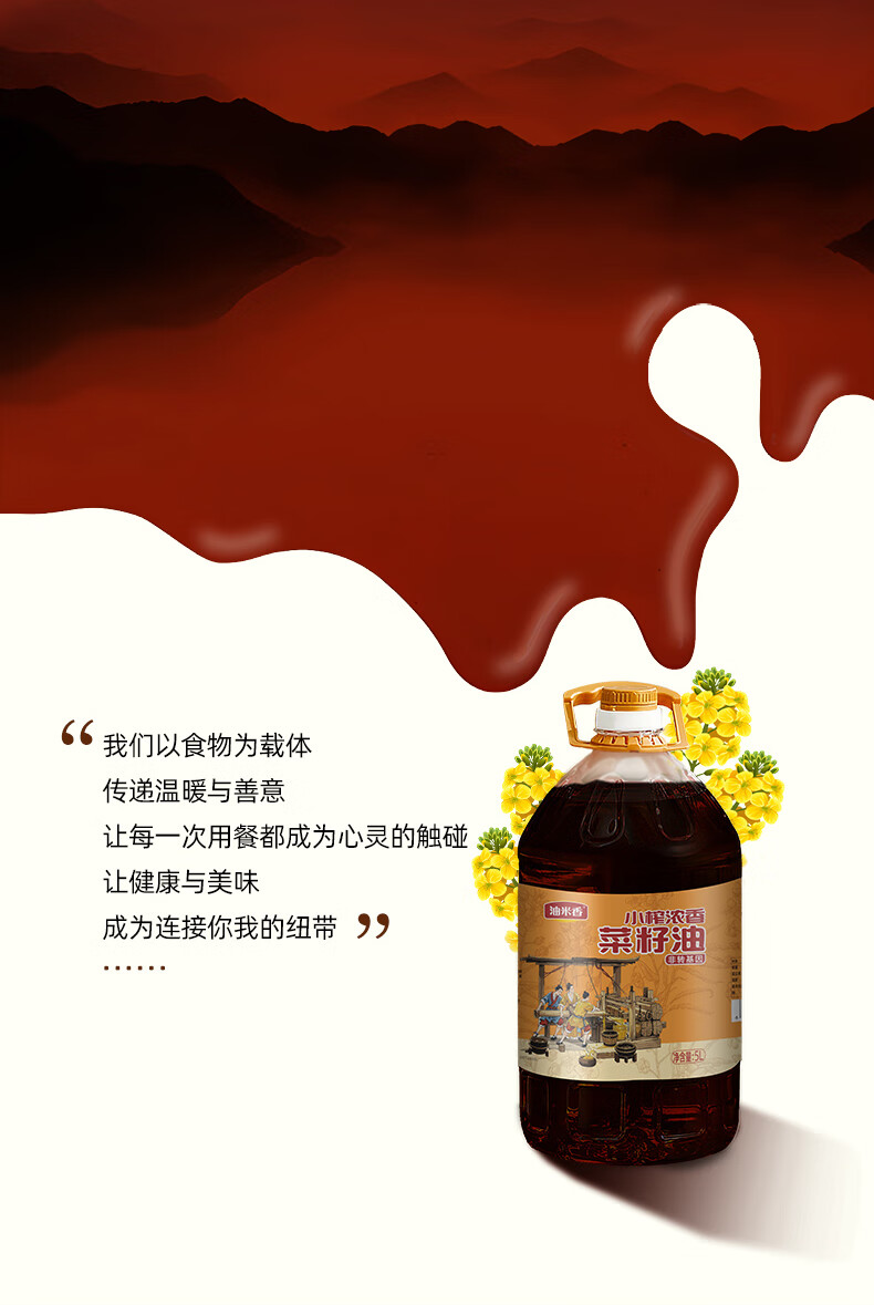 油米香小榨浓香菜籽油5L非转基因物理压榨二级湖南菜油家用食用油9.2斤