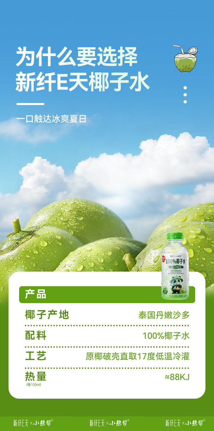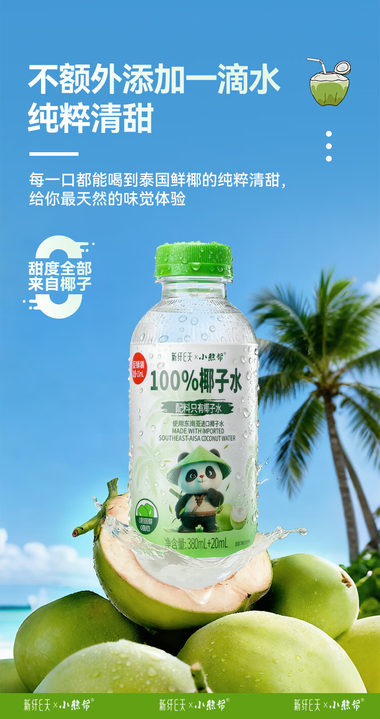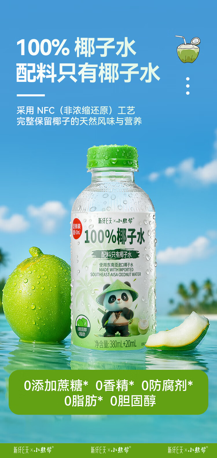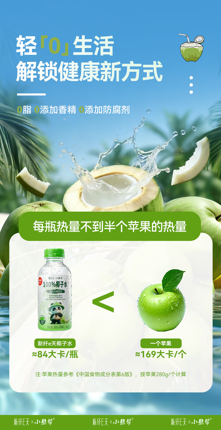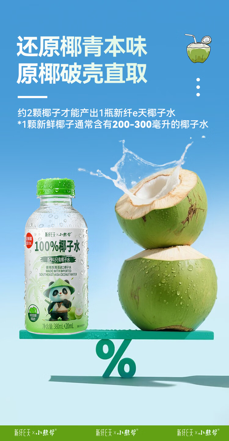 新纤E天100%椰子水 椰汁饮料400ml*6瓶分享装