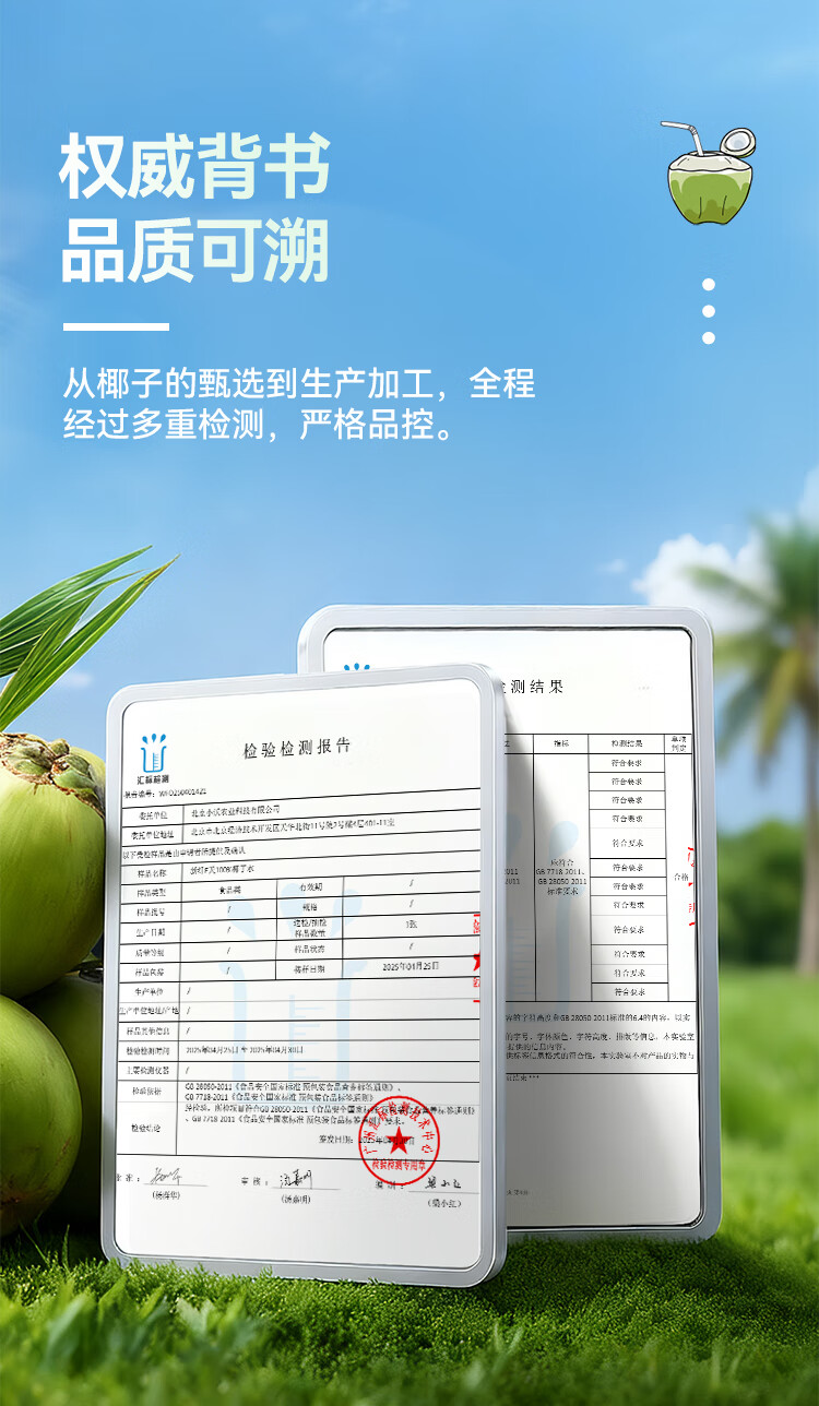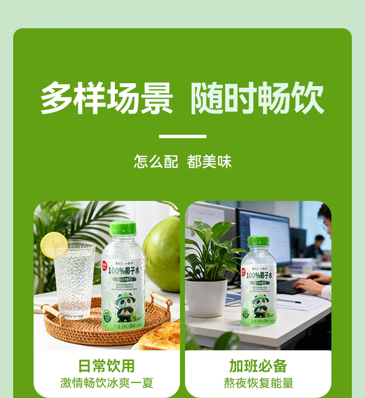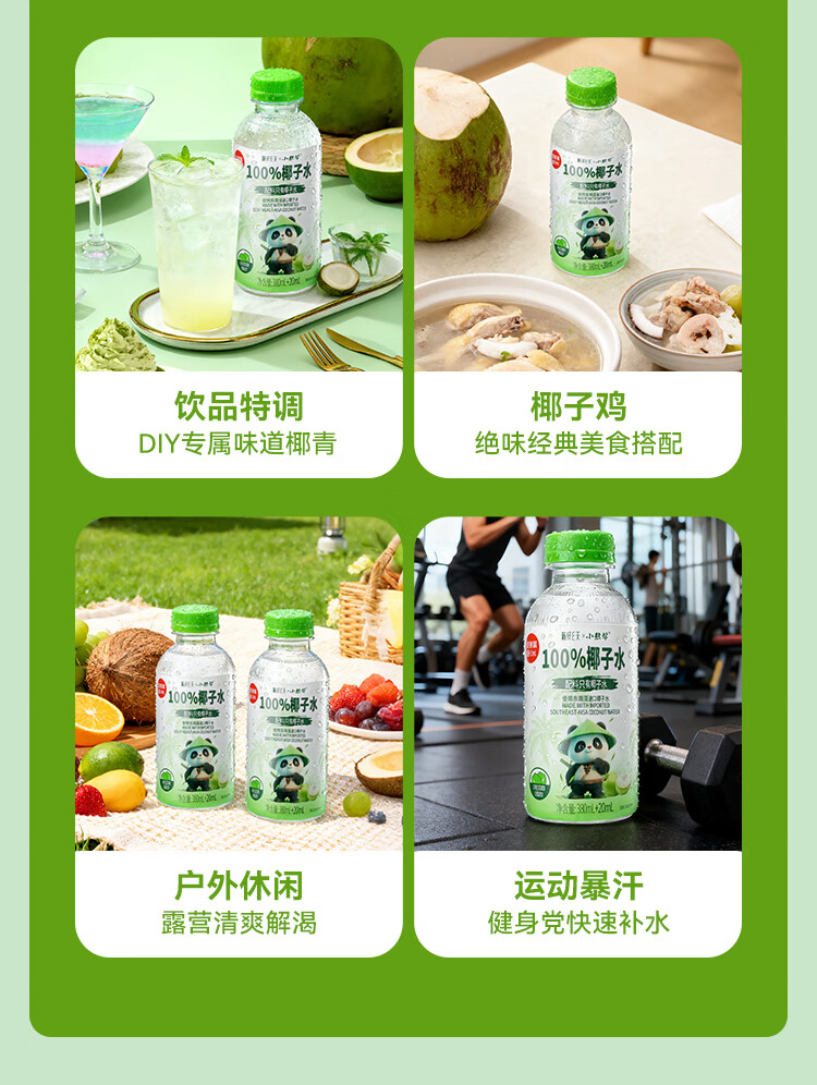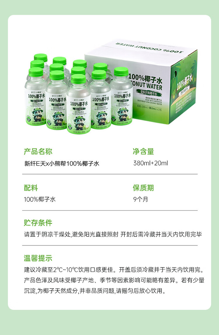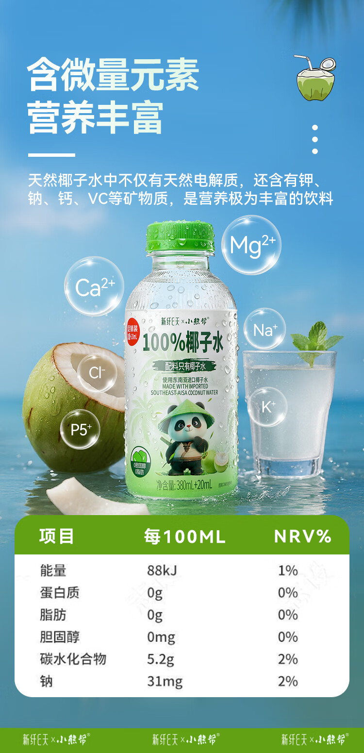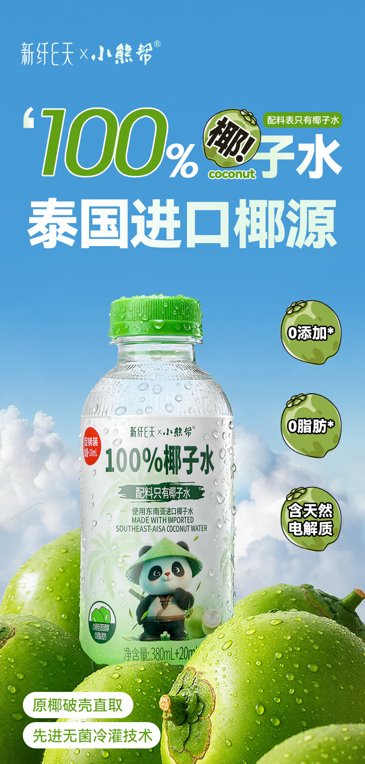 新纤E天100%椰子水 椰汁饮料400ml*6瓶分享装