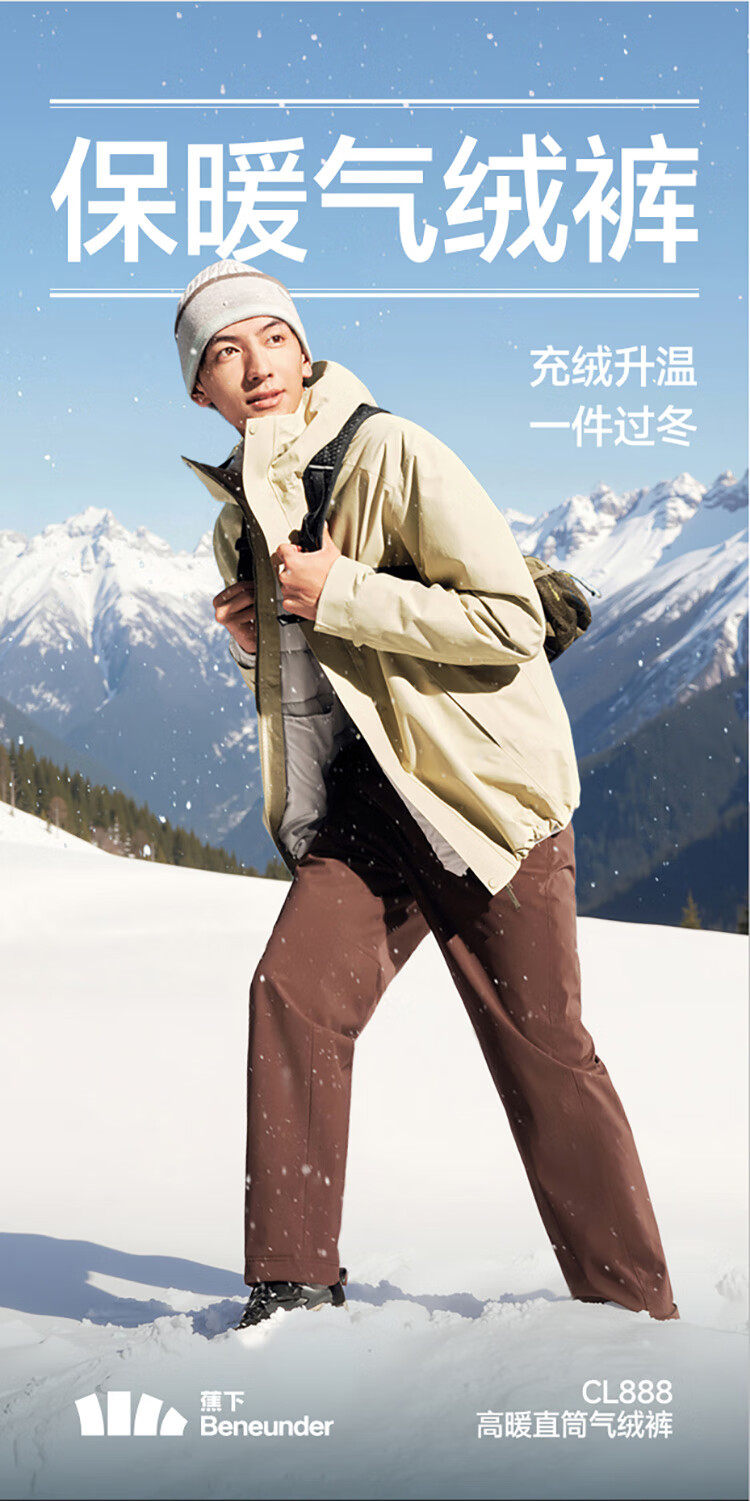 蕉下(beneunder)休闲裤子男士棉裤气绒高暖加厚直筒长裤CL888 浅屿灰 L