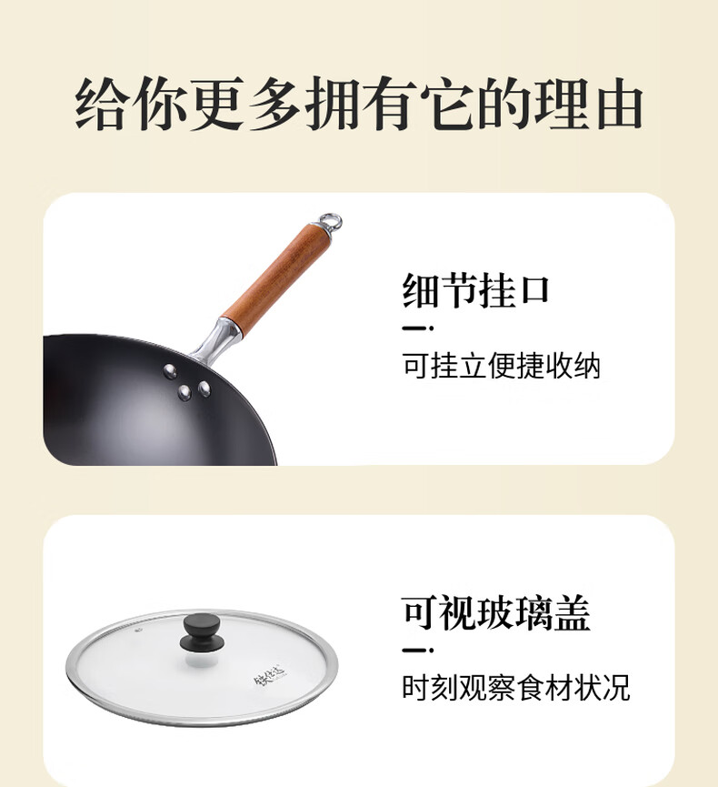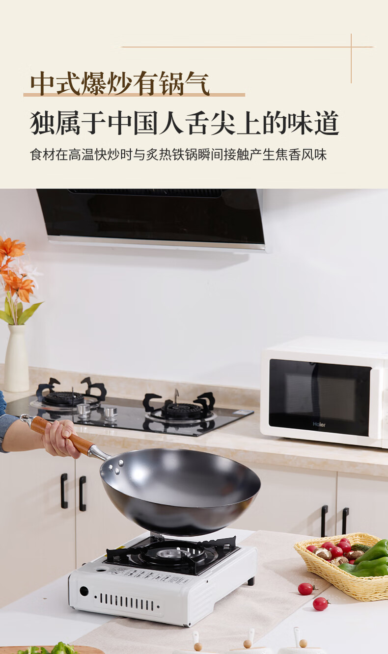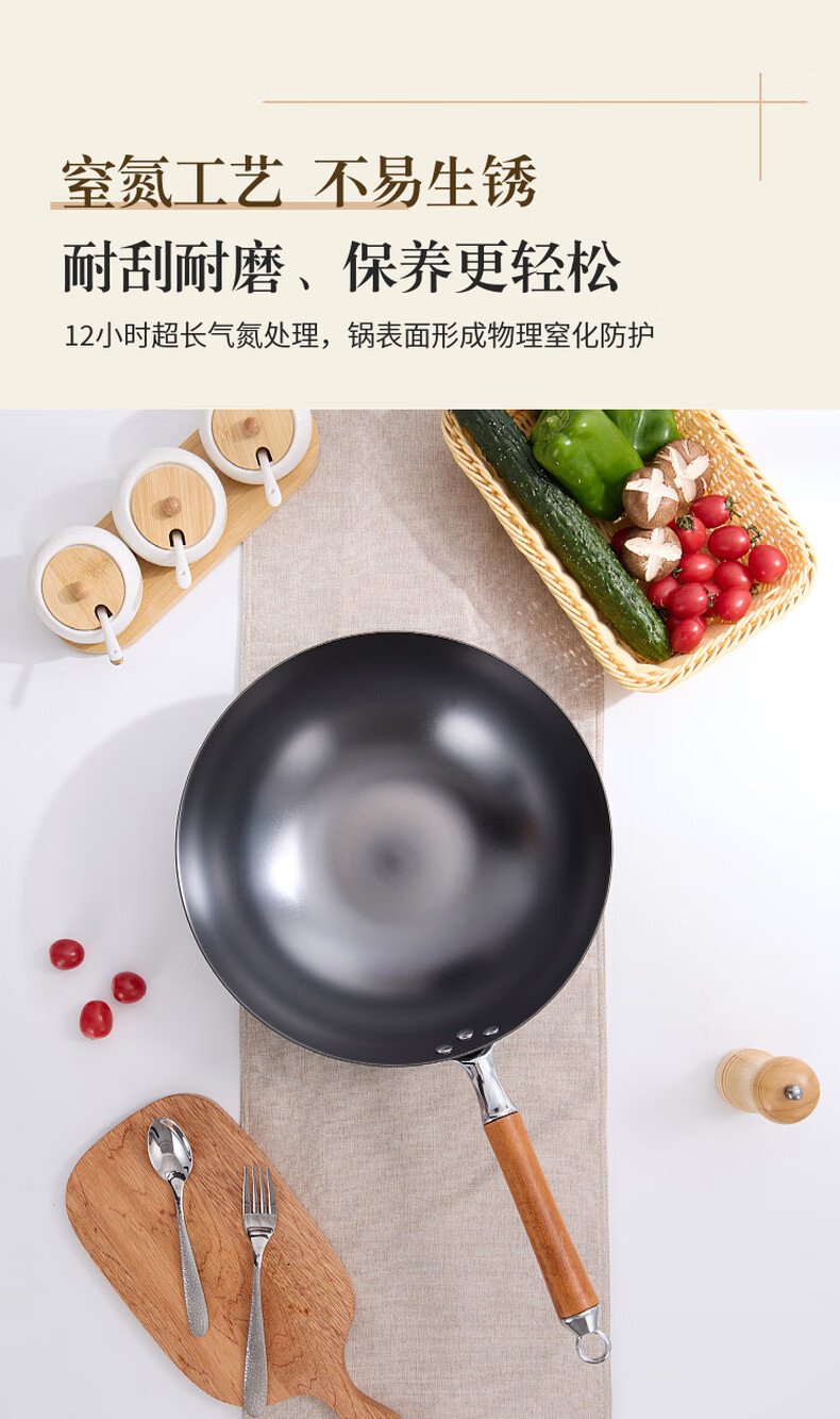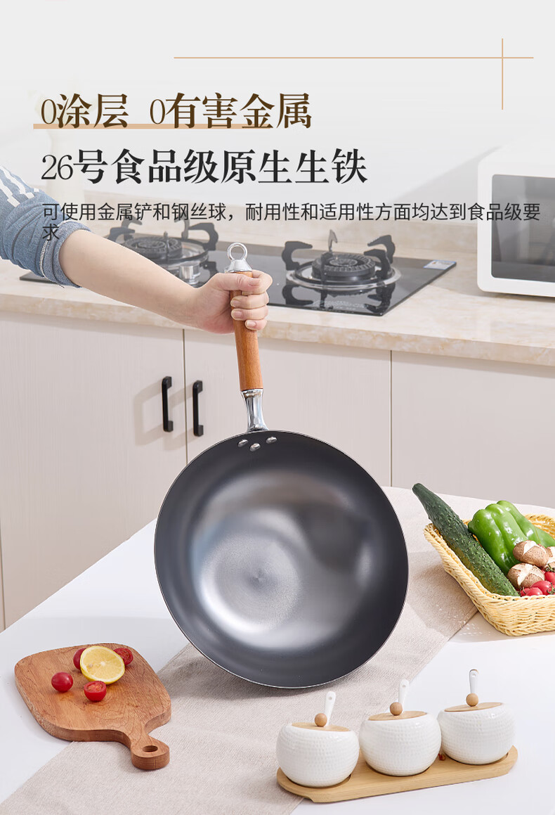 铁仕达(Telssida)轻型铸铁平底炒锅家用无涂层女士生铁锅不粘轻薄款铸铁炒菜锅30cm