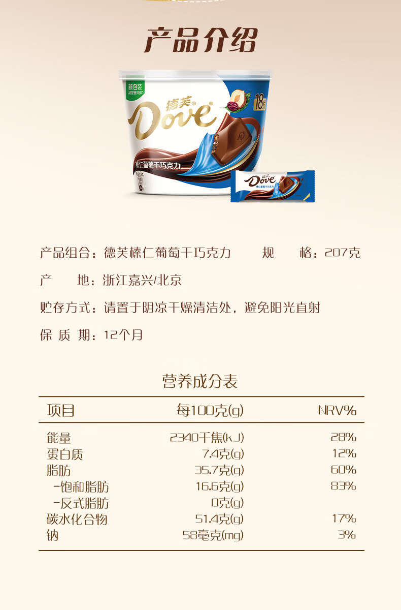 德芙全家桶 榛仁葡萄干巧克力 碗装207g 休闲零食 糖果 生日礼物 送礼