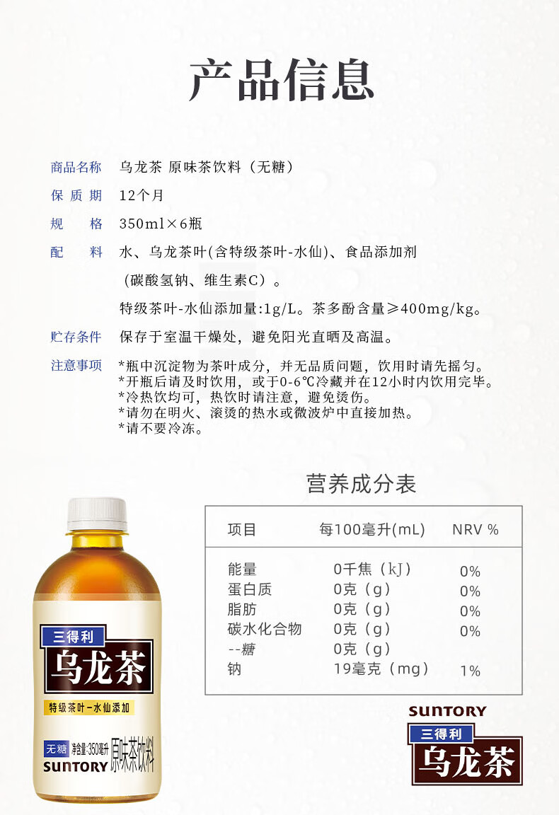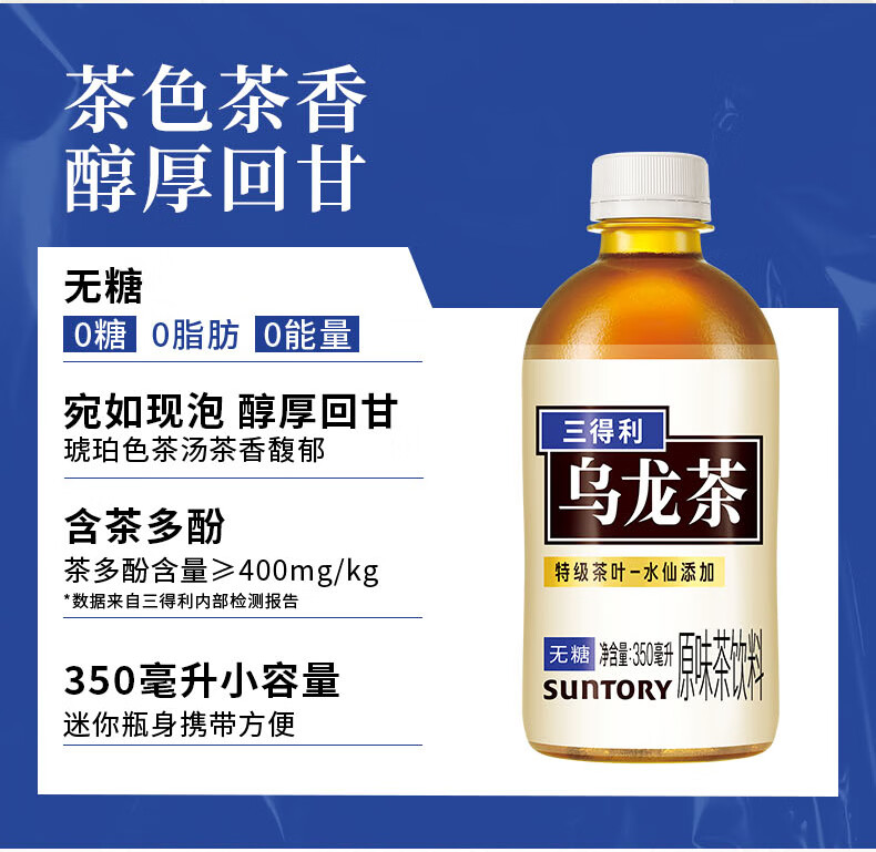 三得利(Suntory) 无糖 乌龙茶饮料 0脂0卡0糖 350ml*6瓶