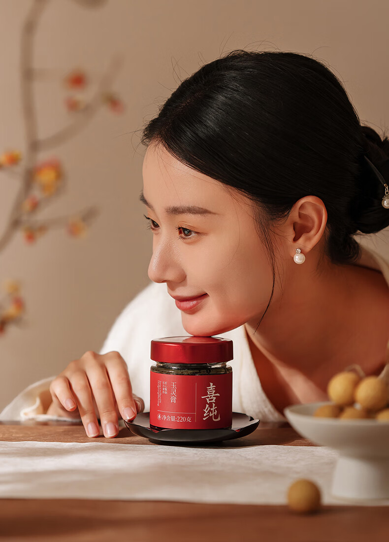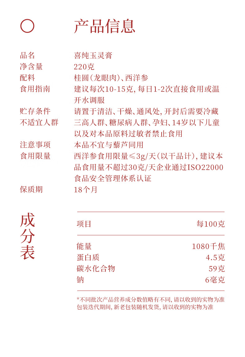 喜纯西洋参玉灵膏补蒸桂圆营养气血女性调理龙眼肉送礼礼物 【4瓶装】 玉灵膏 送怀姜枣膏*1+小圆勺*1