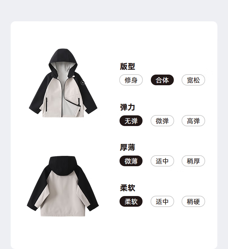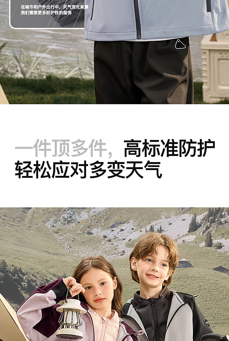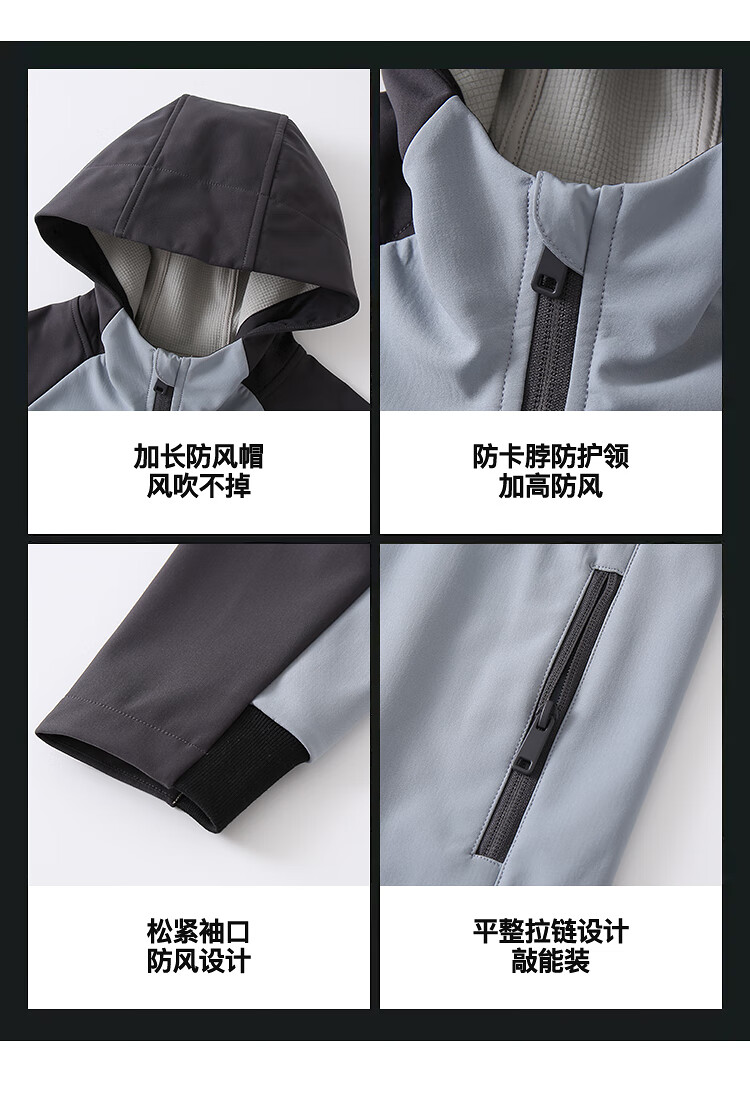棉致【科技三防】2025秋季儿童无氟防水户外立领轻量软壳三防中大童衣 黑色 160