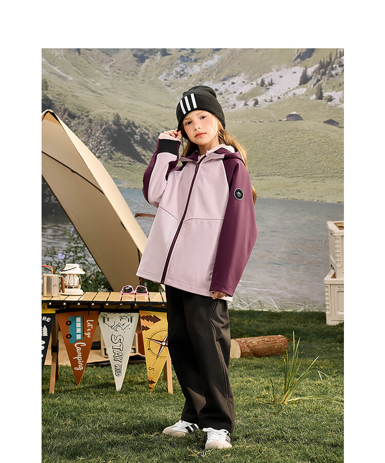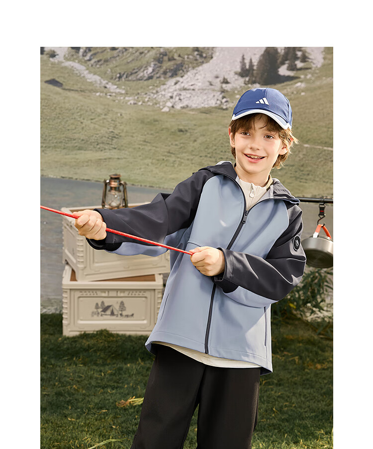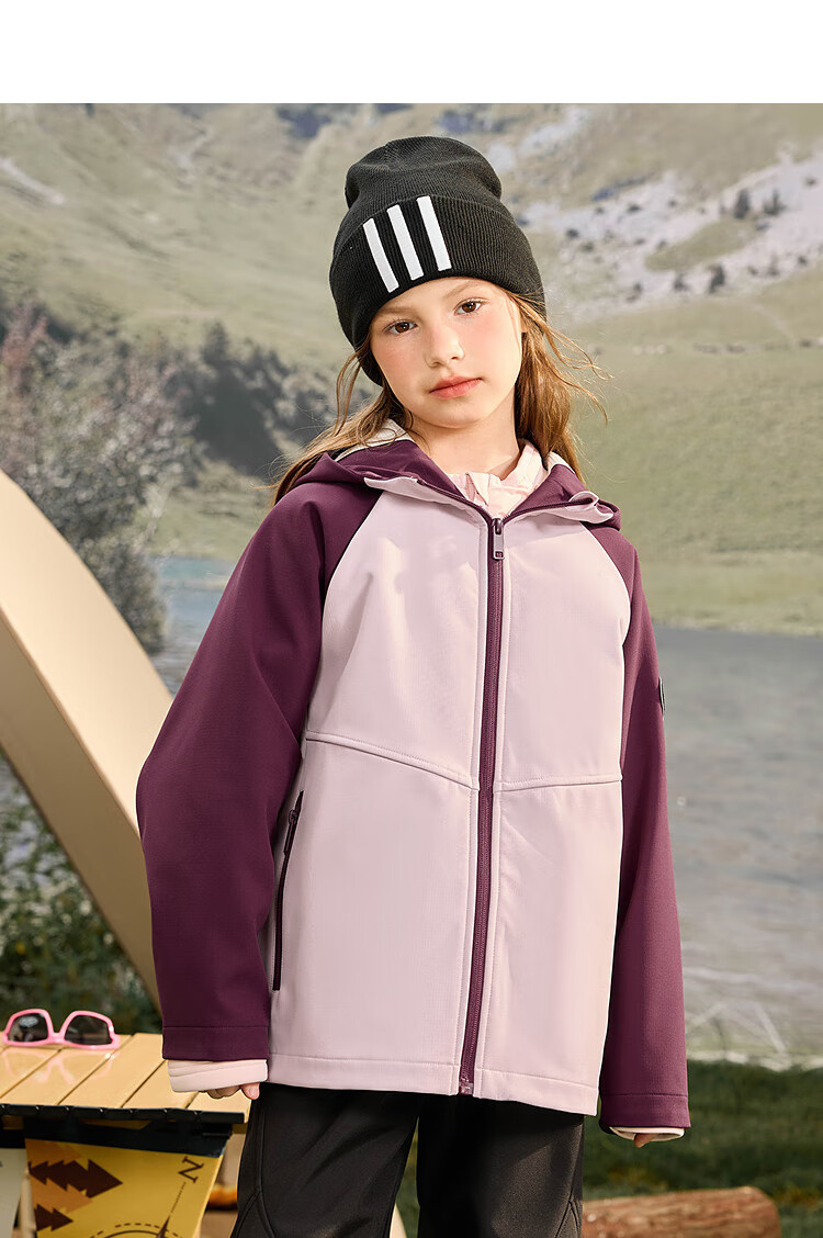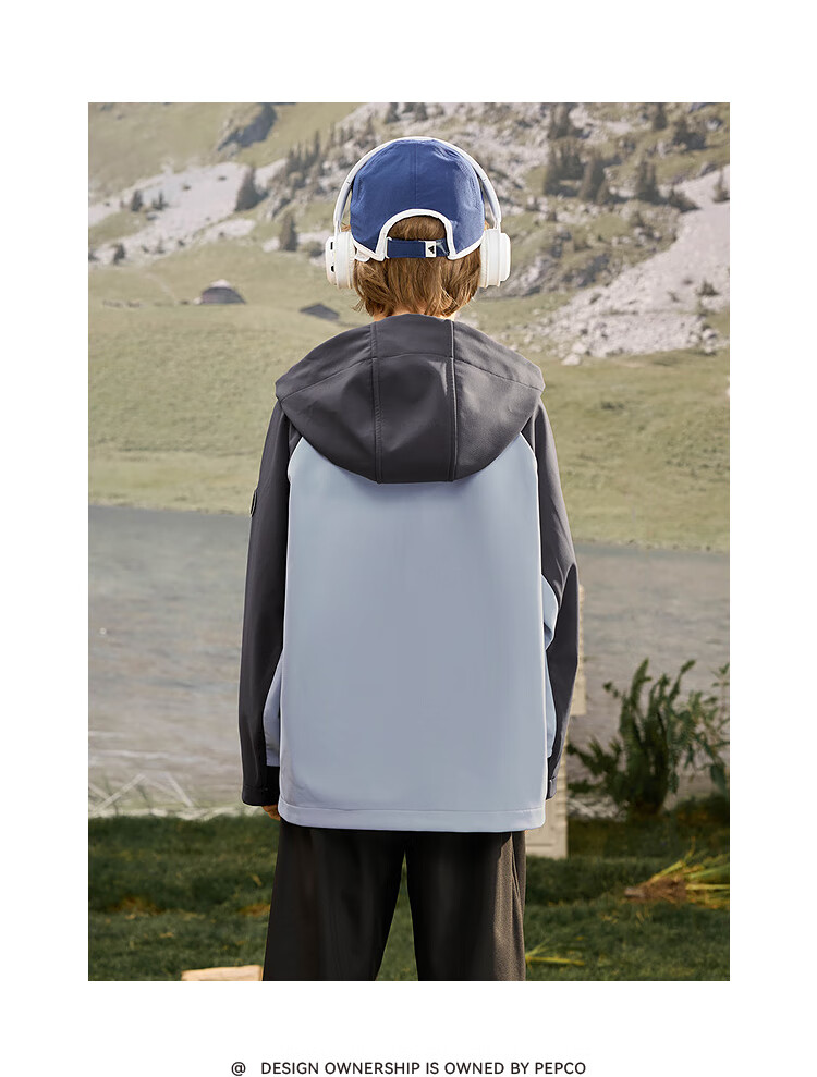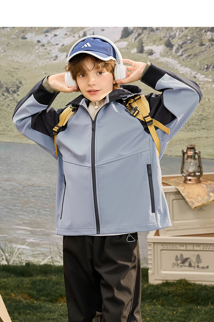 小猪班纳【户外机能软壳冲锋衣】童装秋季男女童防水防风耐磨连帽风衣外套 蓝色 130