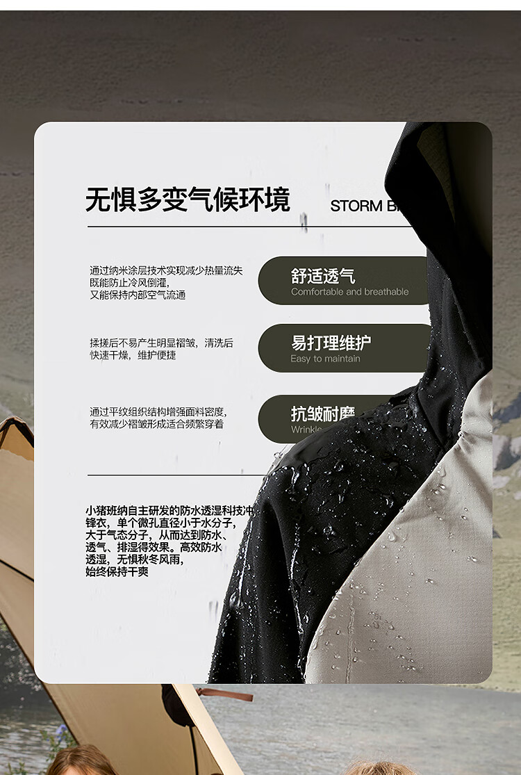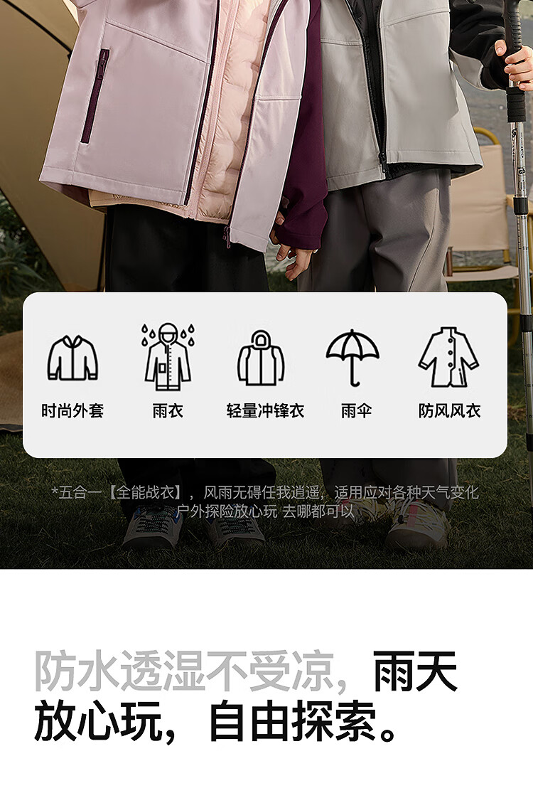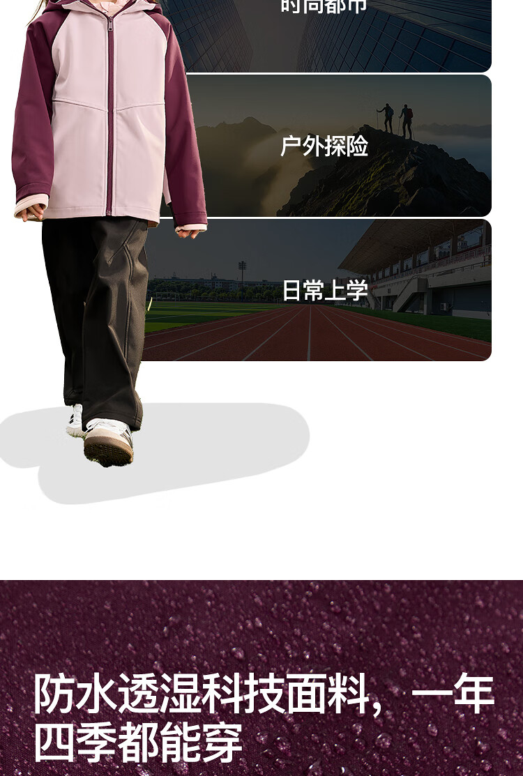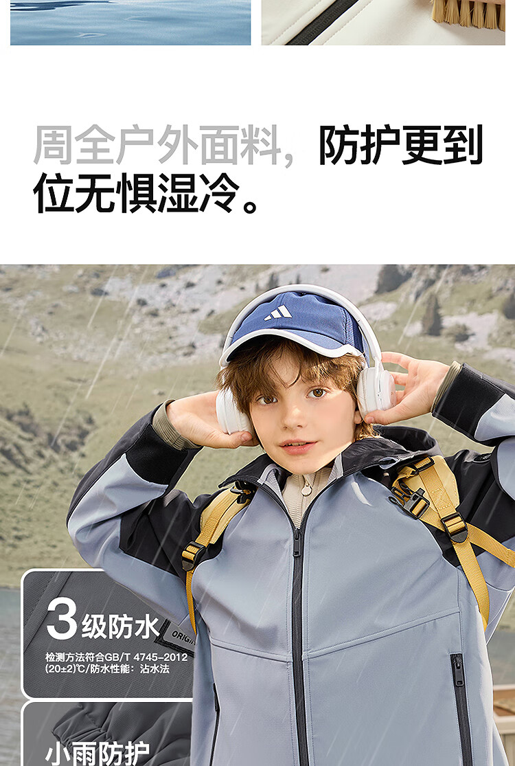 小猪班纳【户外机能软壳冲锋衣】童装秋季男女童防水防风耐磨连帽风衣外套 蓝色 130
