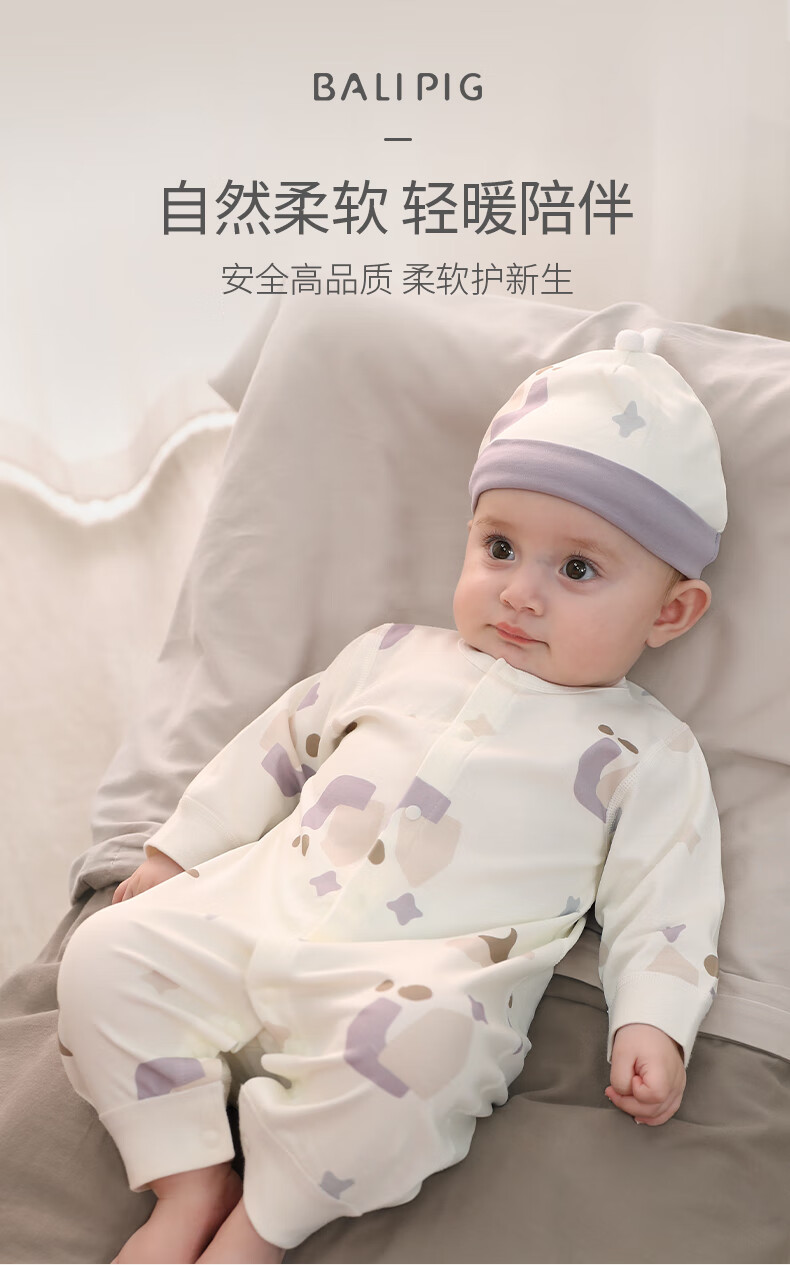 巴厘小猪宝宝秋季连体衣长袖新生儿59码衣服春秋哈衣爬服超洋气婴儿外出服