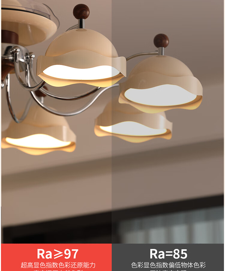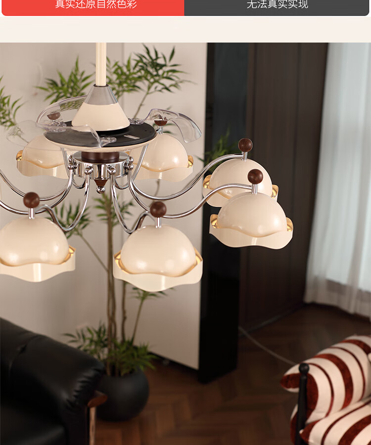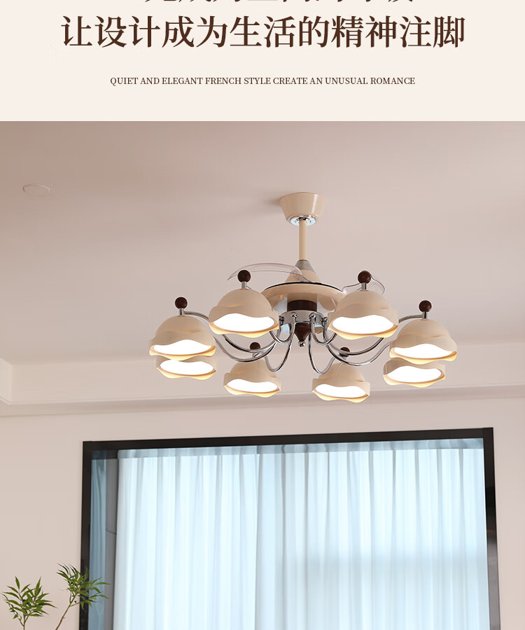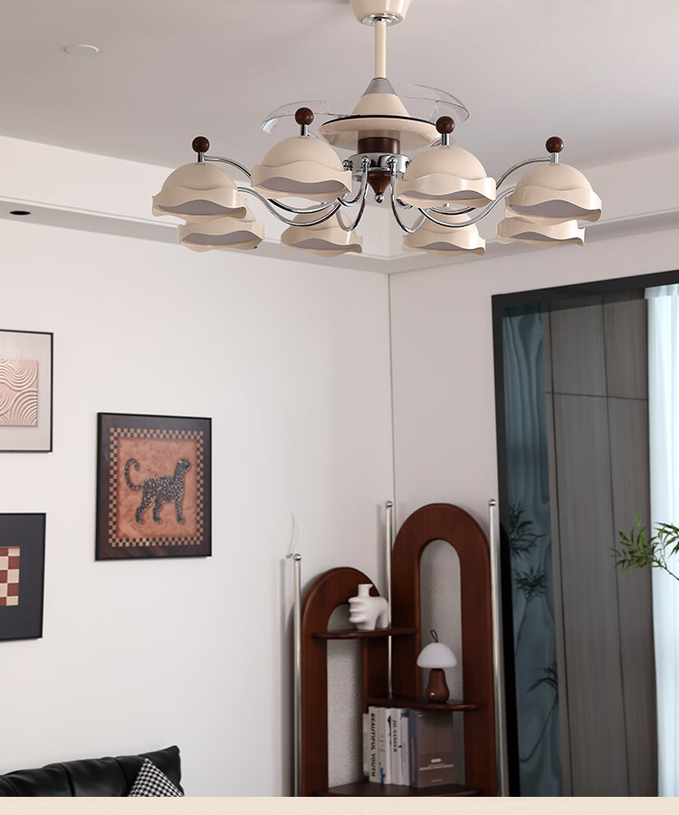 大自然照明(NATURE)客厅吊灯客厅灯2025新款中古风大尺寸隐形静音客厅吊灯风扇灯 【全光谱护眼光源】吊顶款 奶油色8头106CM 三色变光
