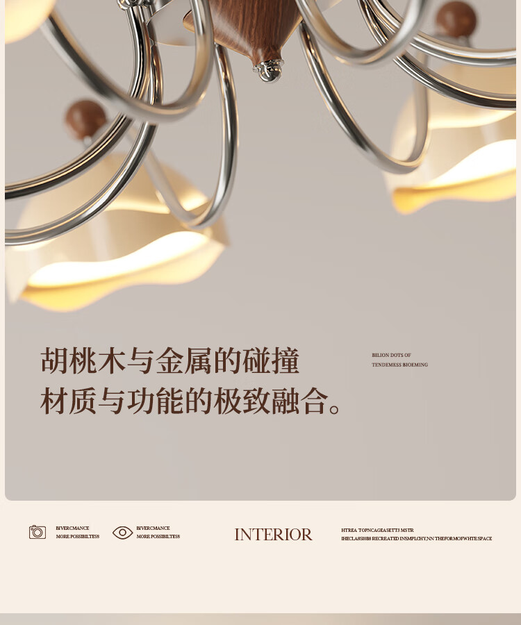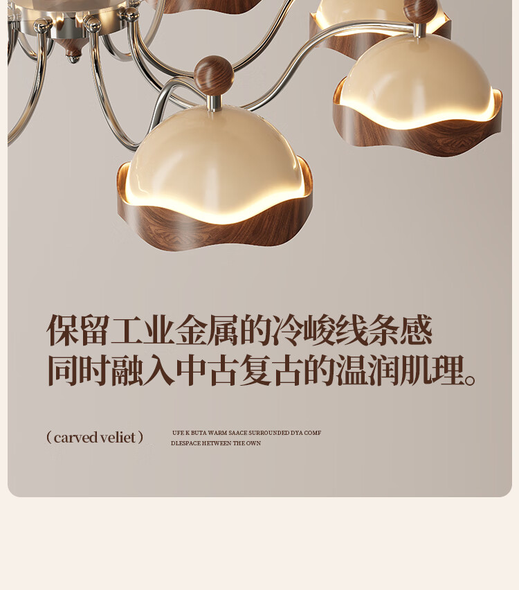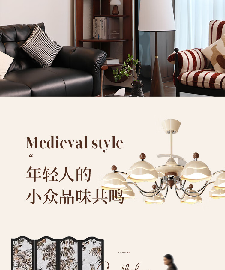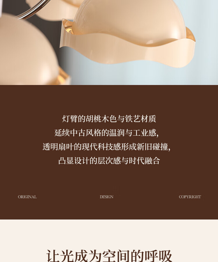 拉伯塔胡桃木纹隐形风扇灯客厅餐厅专用中古风复古吊扇灯电风扇吊灯一体 【胡桃木纹】无极调光 【全光谱护眼】42寸-带遥控