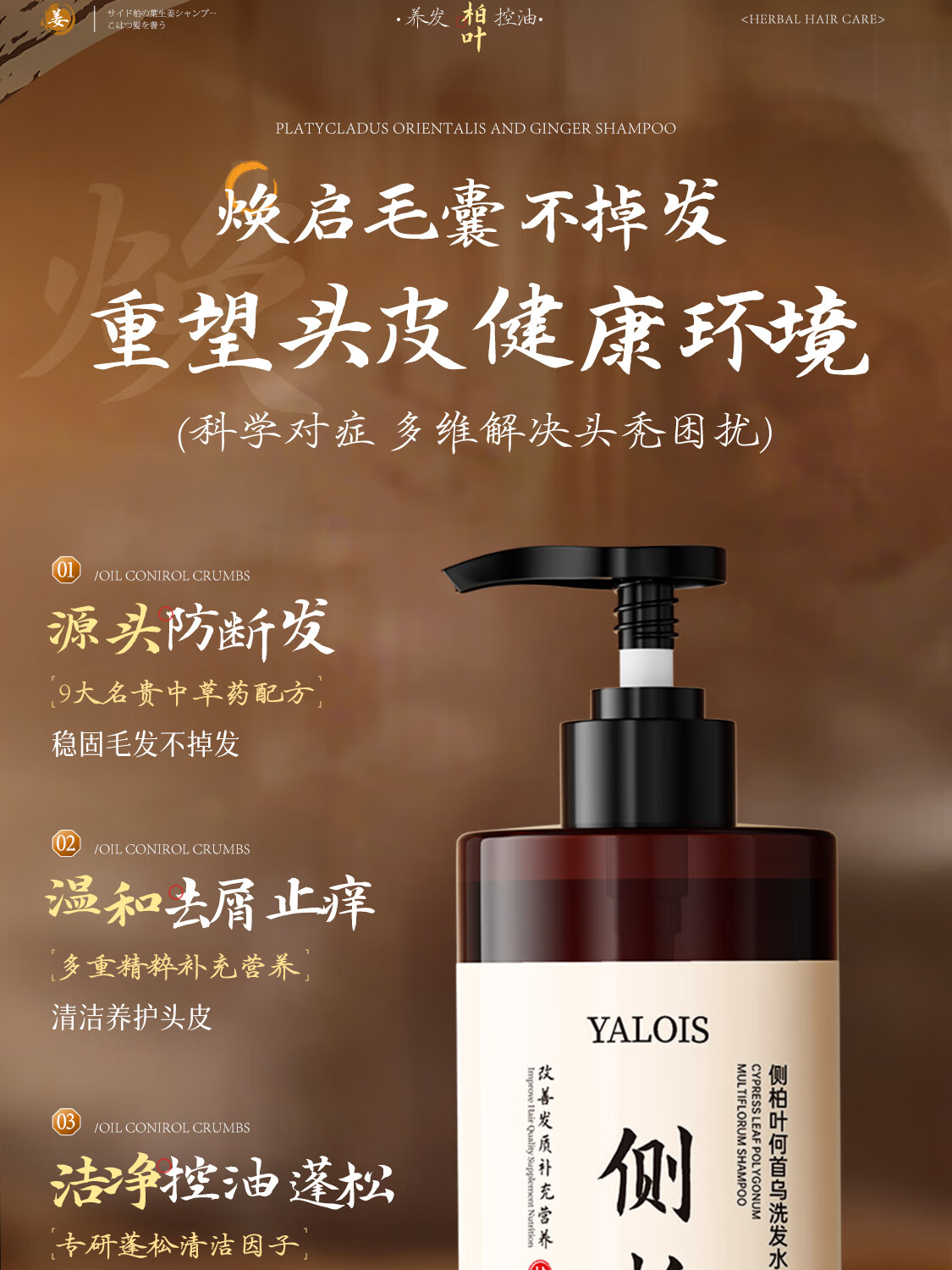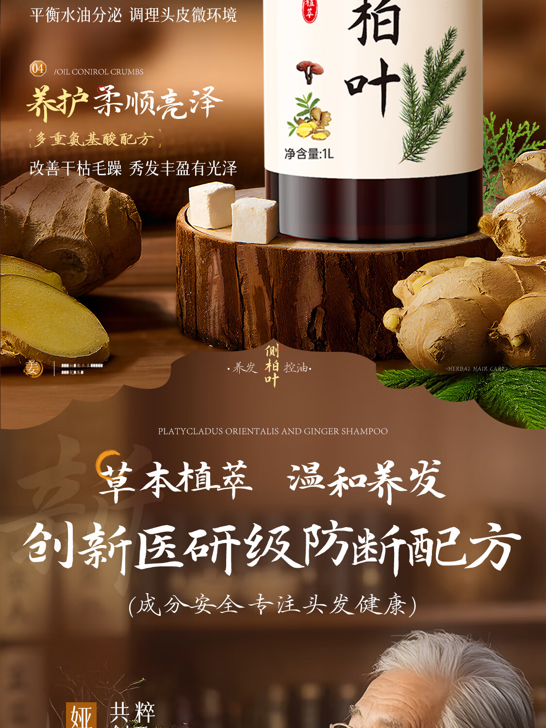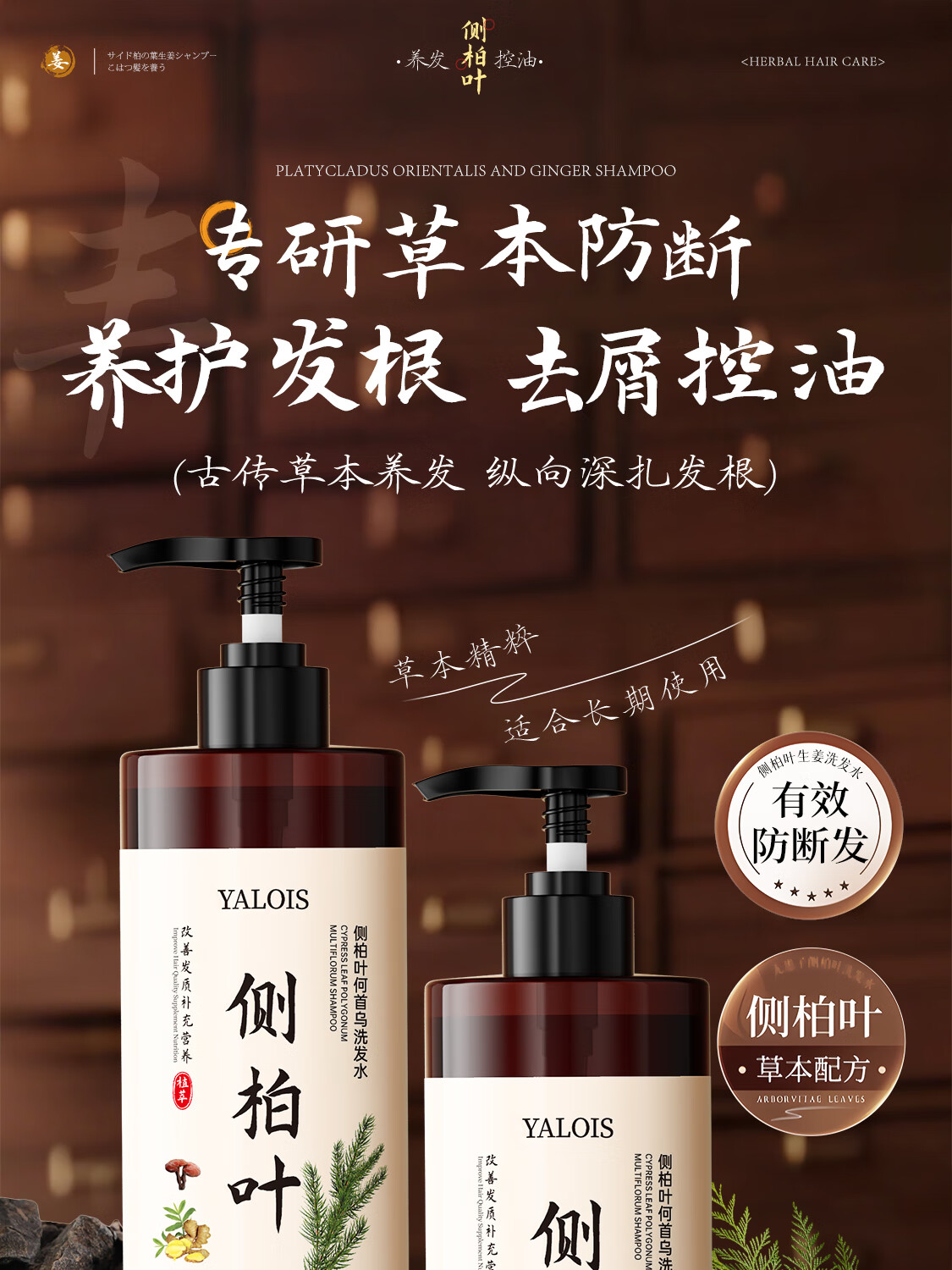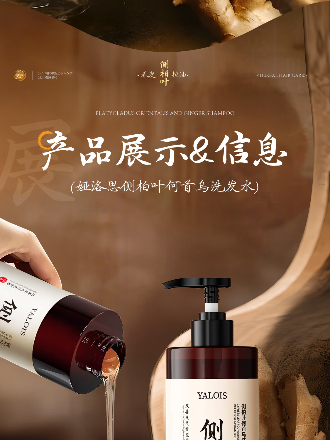 娅洛思侧柏叶生姜何首乌洗发水男女士专用防断控油清洁蓬松温和洗头水1L