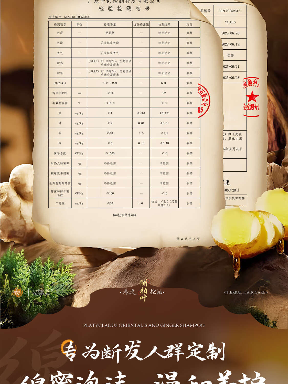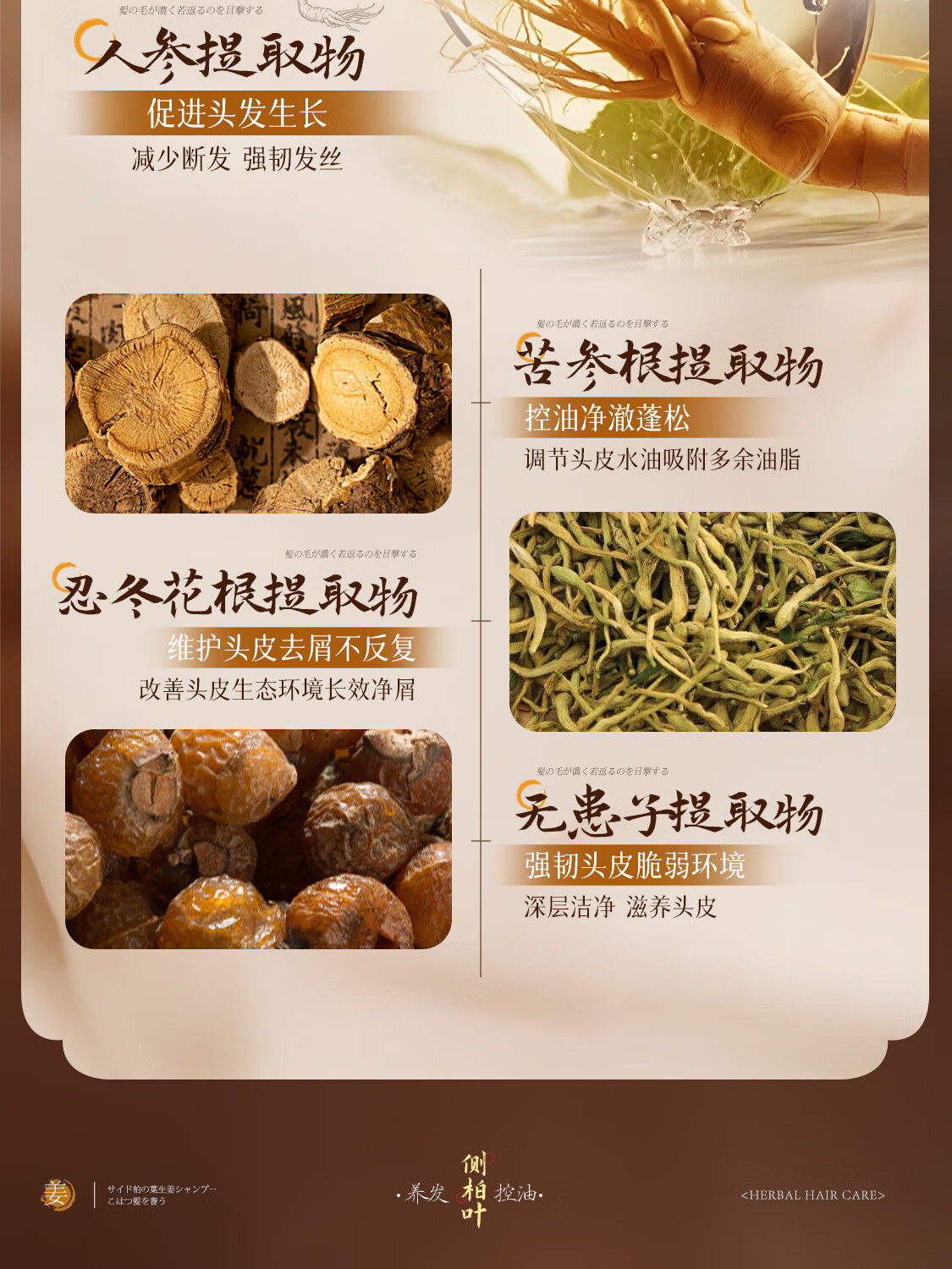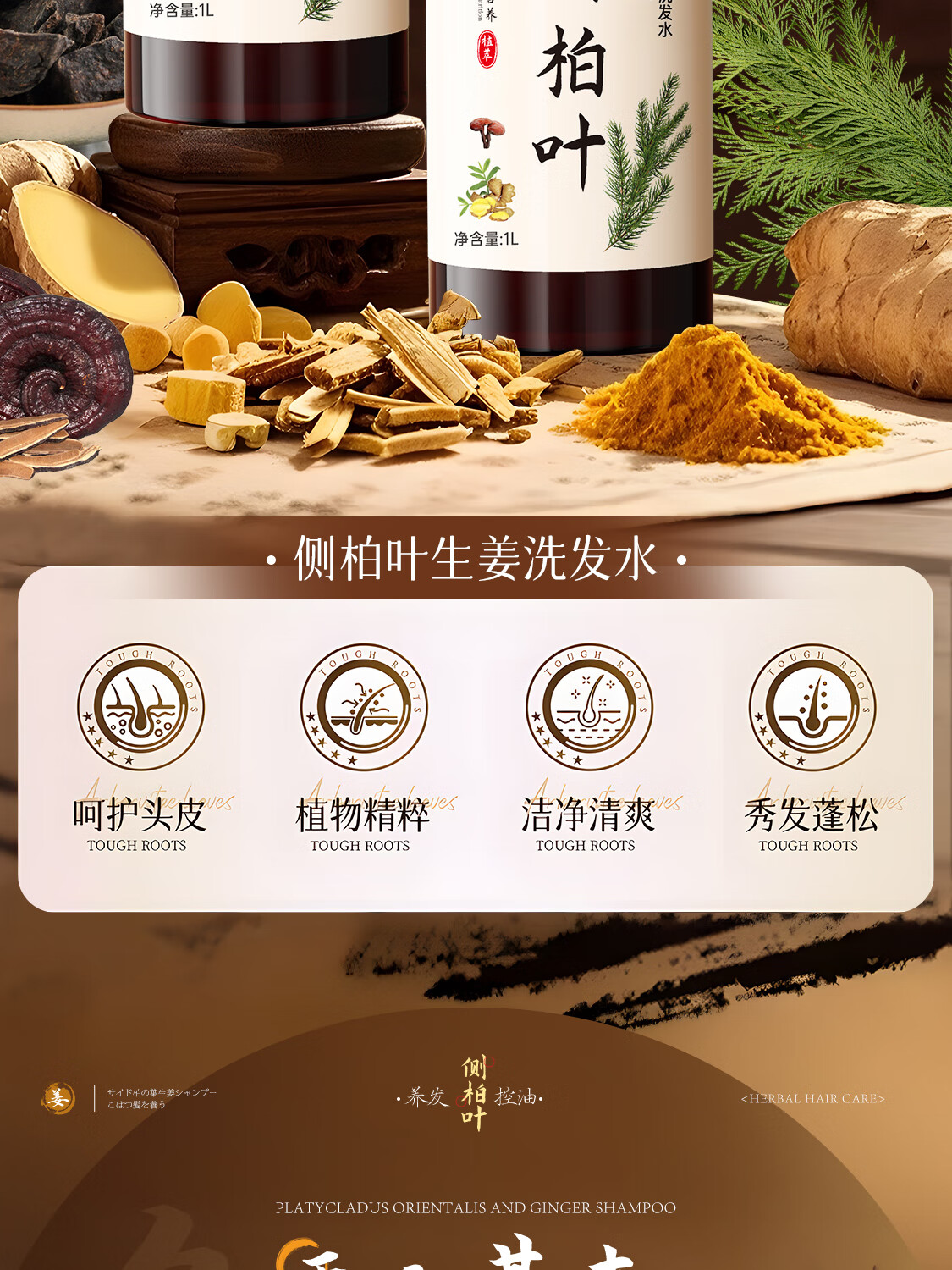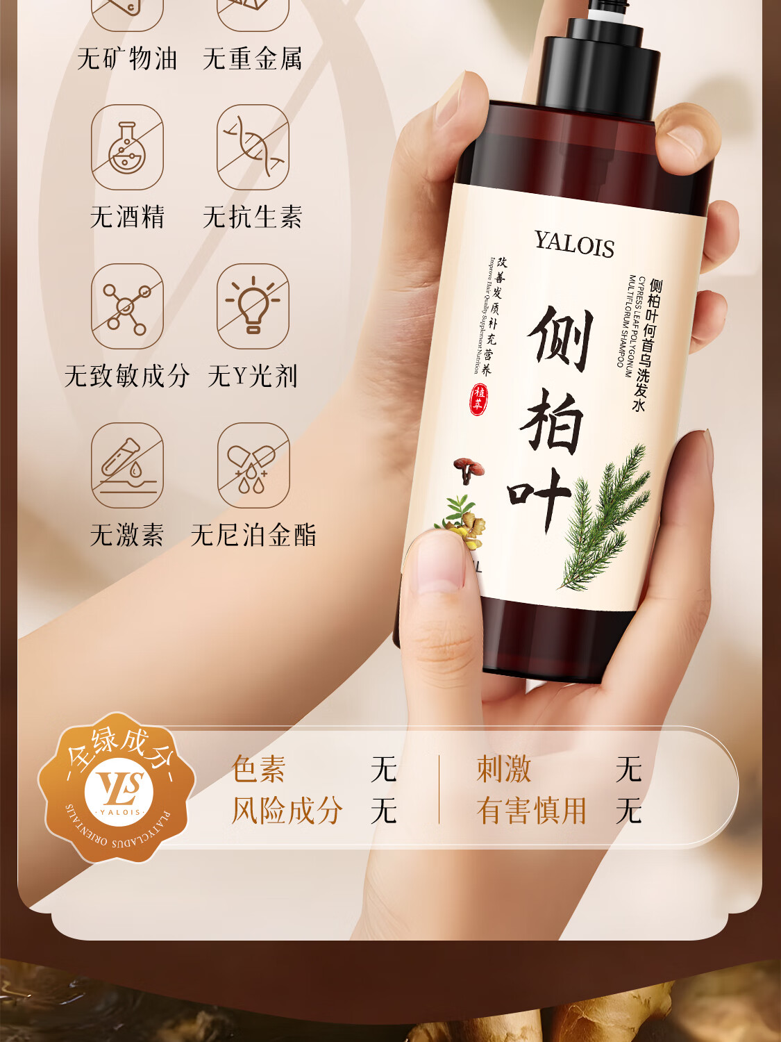娅洛思侧柏叶生姜何首乌洗发水男女士专用防断控油清洁蓬松温和洗头水1L