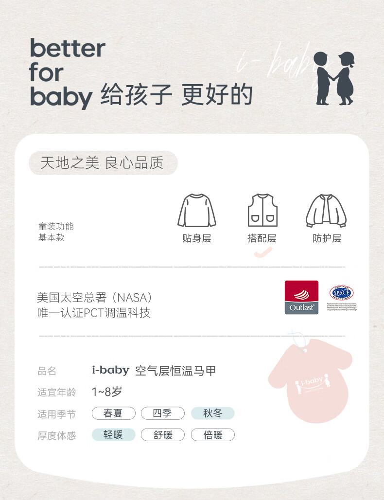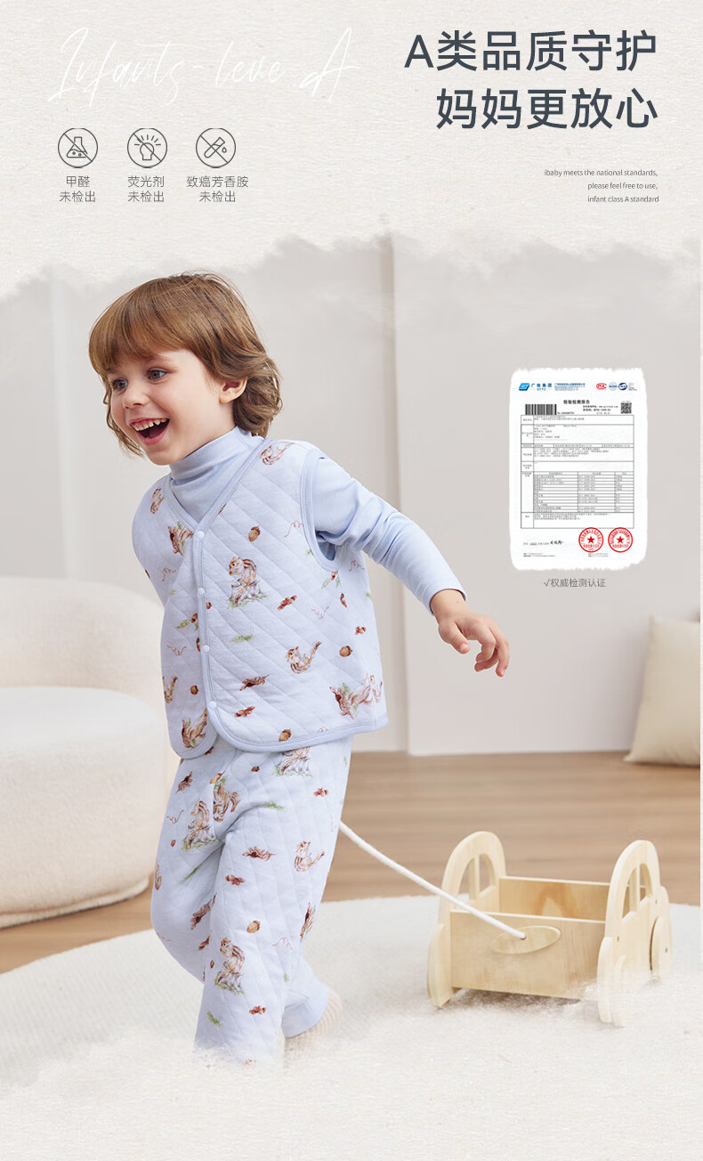 ibaby儿童恒温马甲男女童宝宝春秋冬童装 巧兔庄园 120