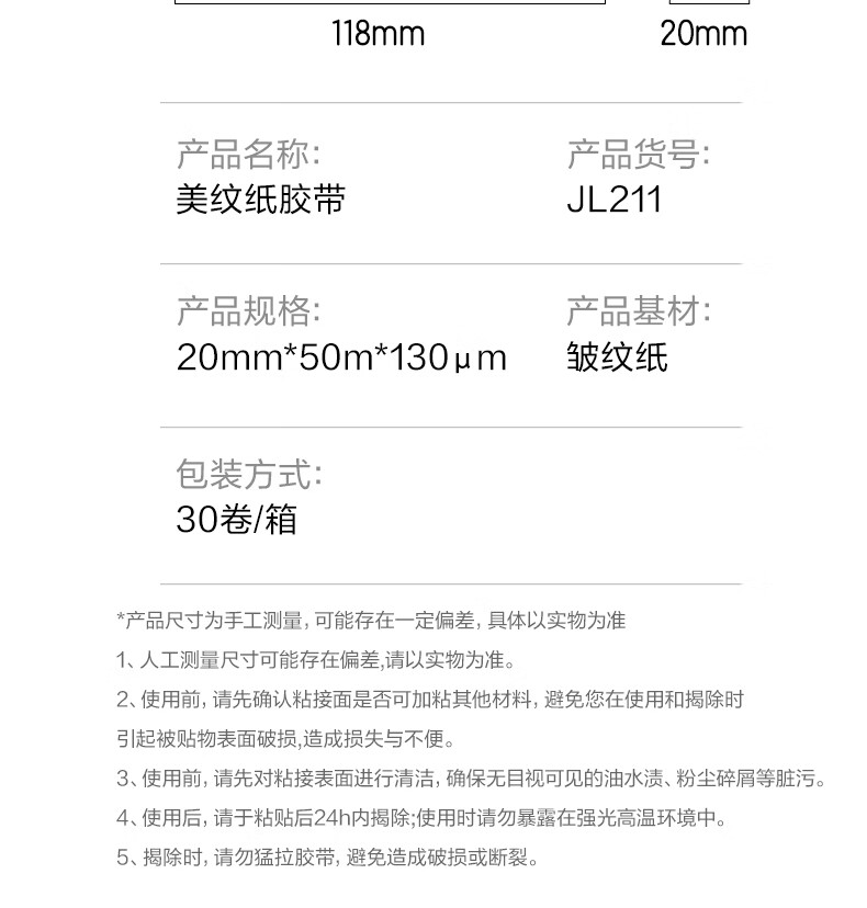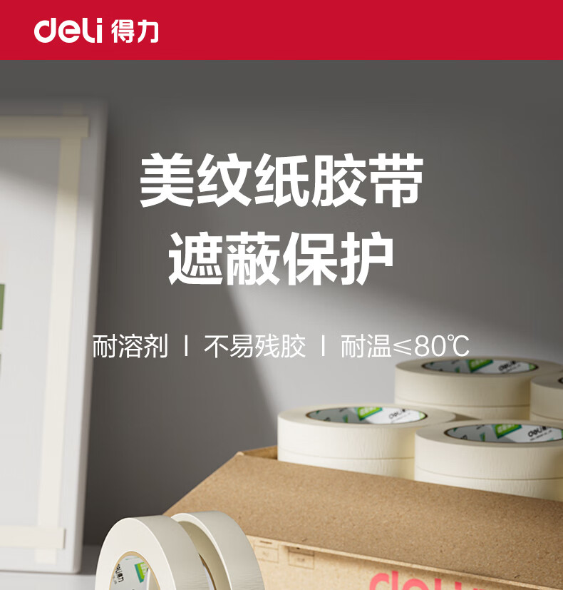 得力(deli)美纹纸胶带 20mm*50m*130μm 美术美工分色 装修遮蔽美缝贴膜刷漆保护无痕 30卷/箱 JL211