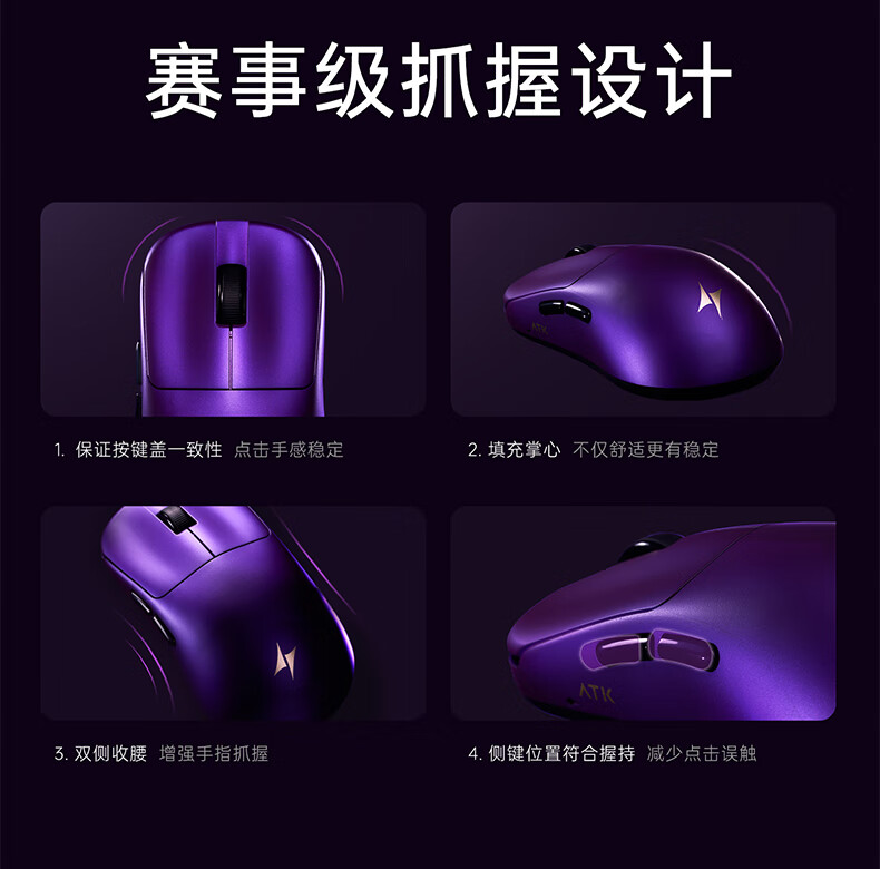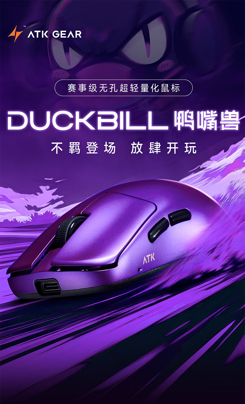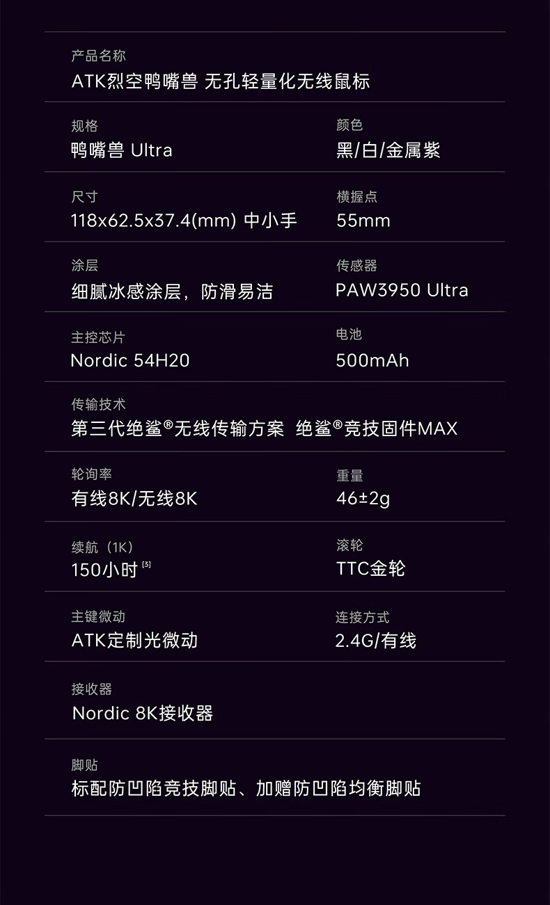 ATK烈空鸭嘴兽 无线鼠标无孔轻量化 双模游戏电竞办公 旗舰抓握鼠标 人体工学裂空 Ultra 黑色