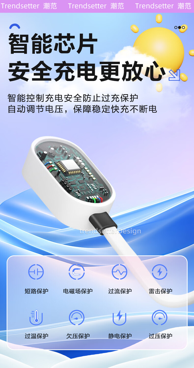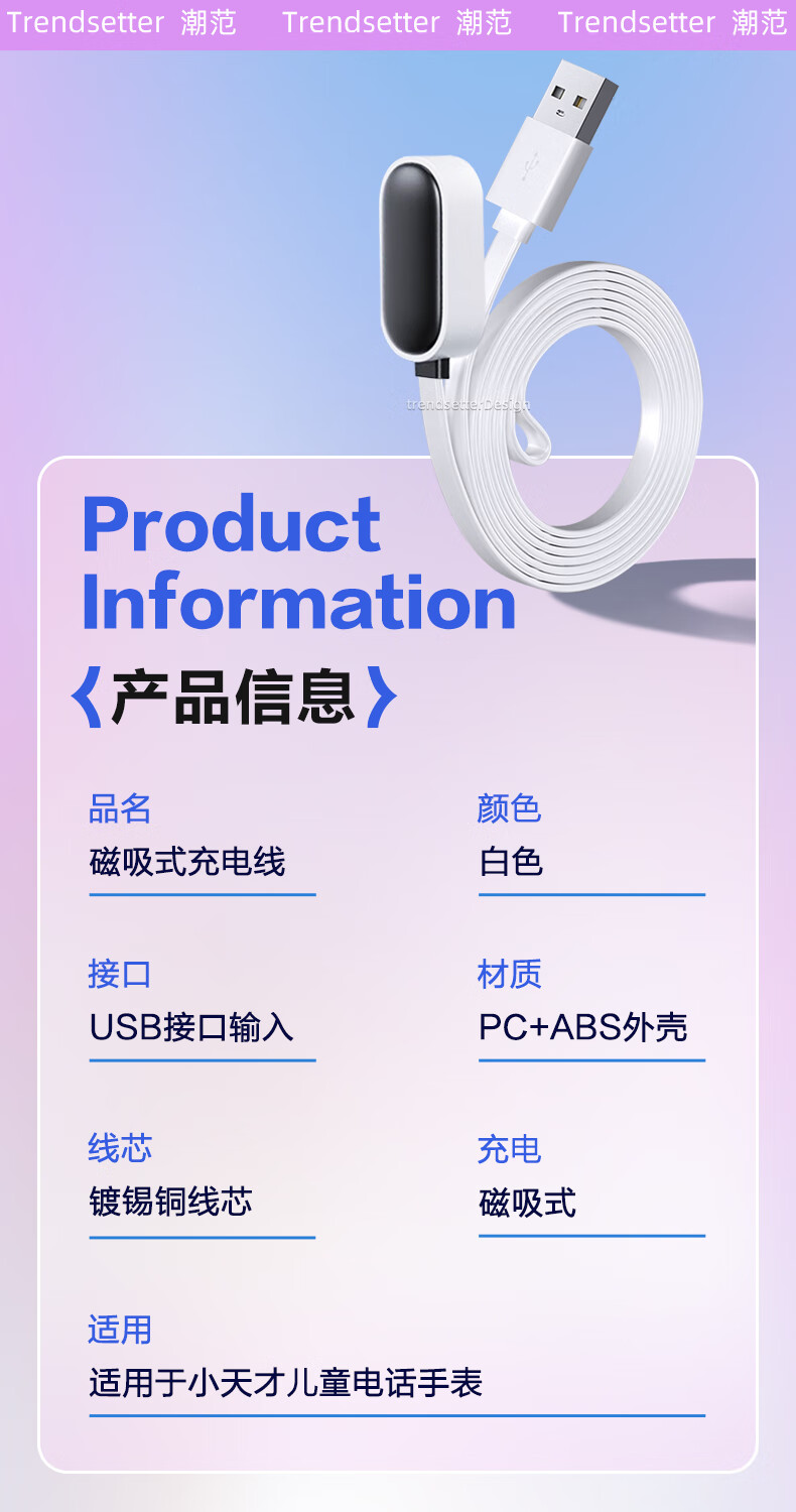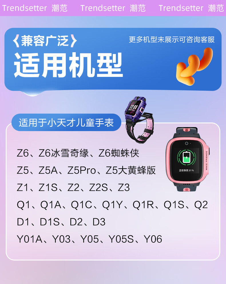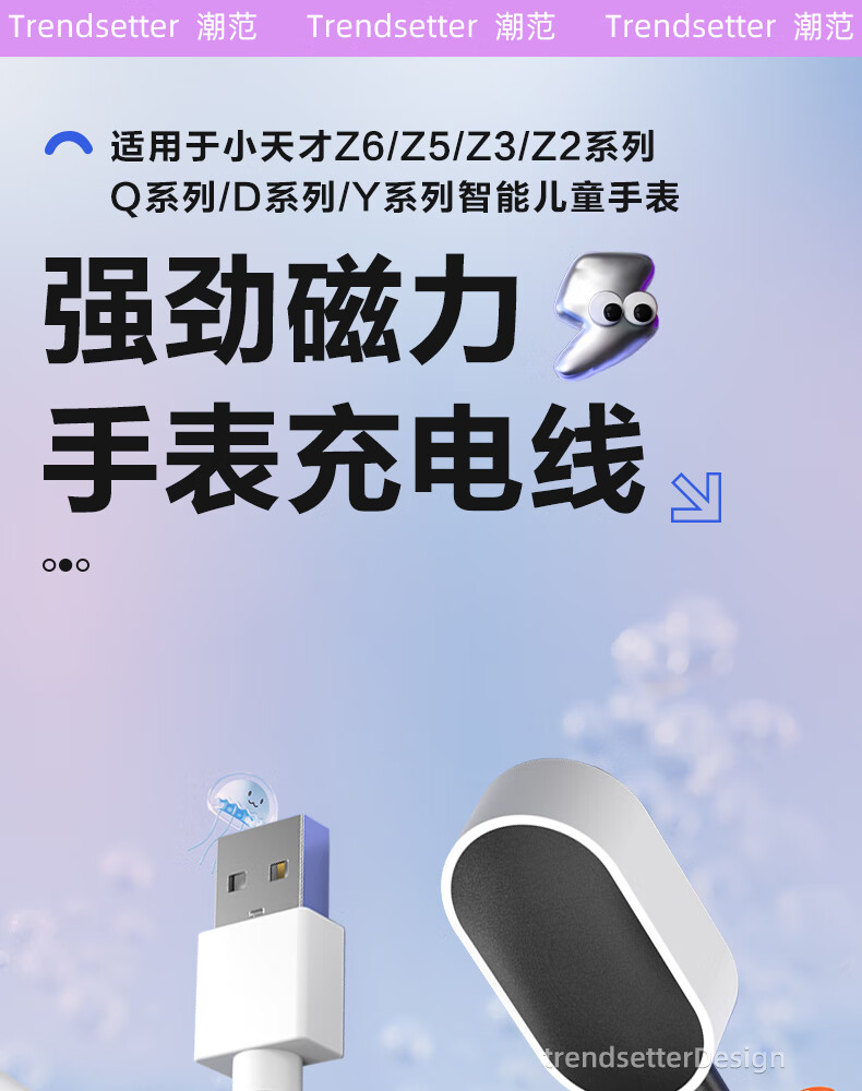 trendsetter适用小天才手表充电线充电器z5a/z2/z3/z6/Q1A/Q1R/q2a/D3S/y06/Q3儿童电话手表充电器线磁吸配件