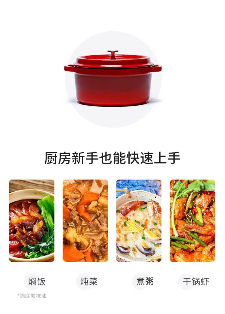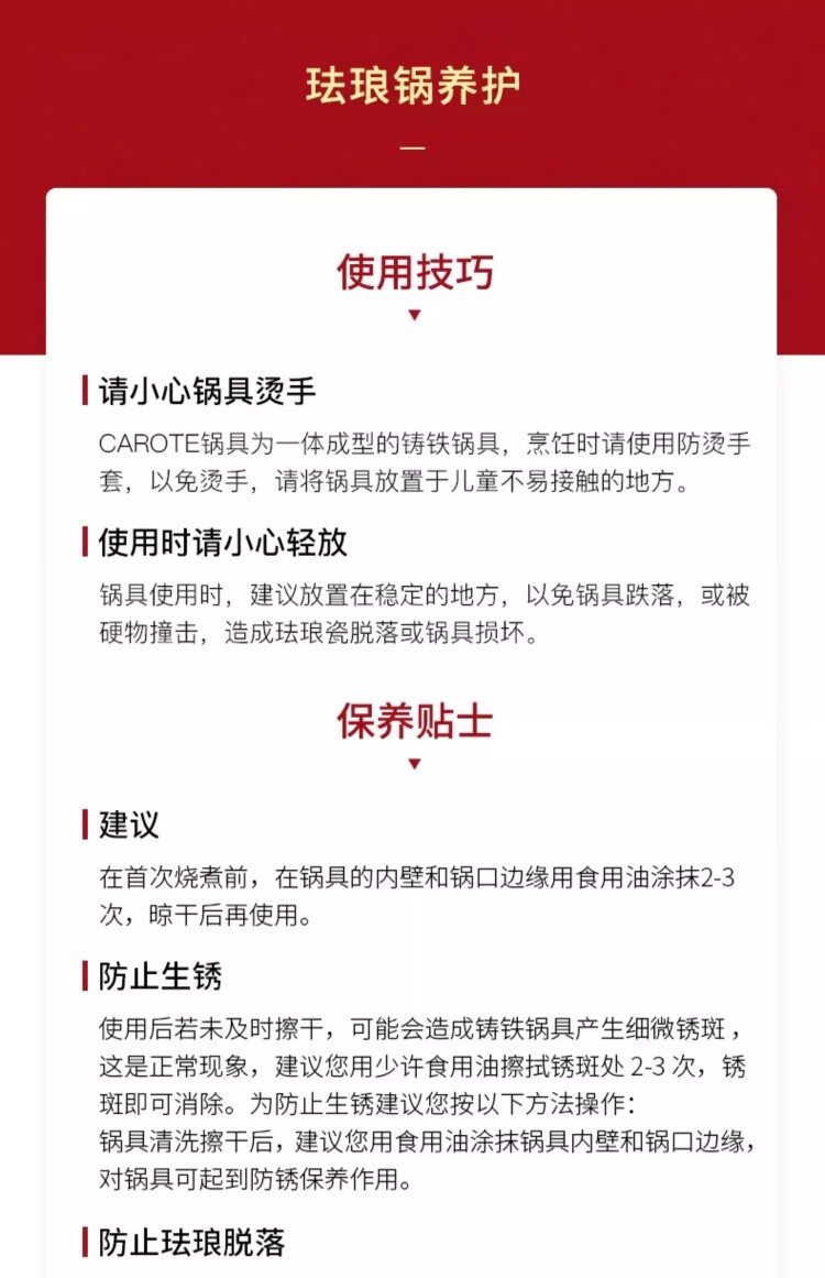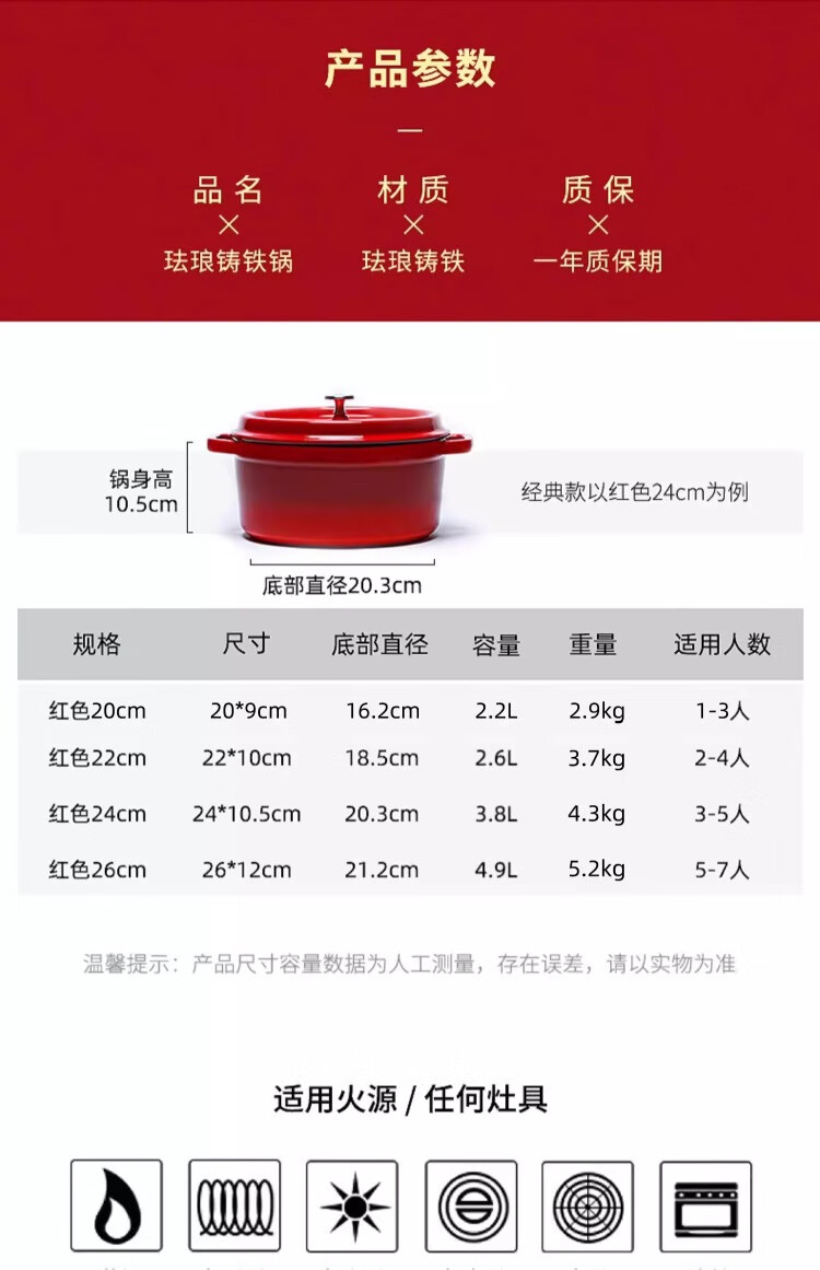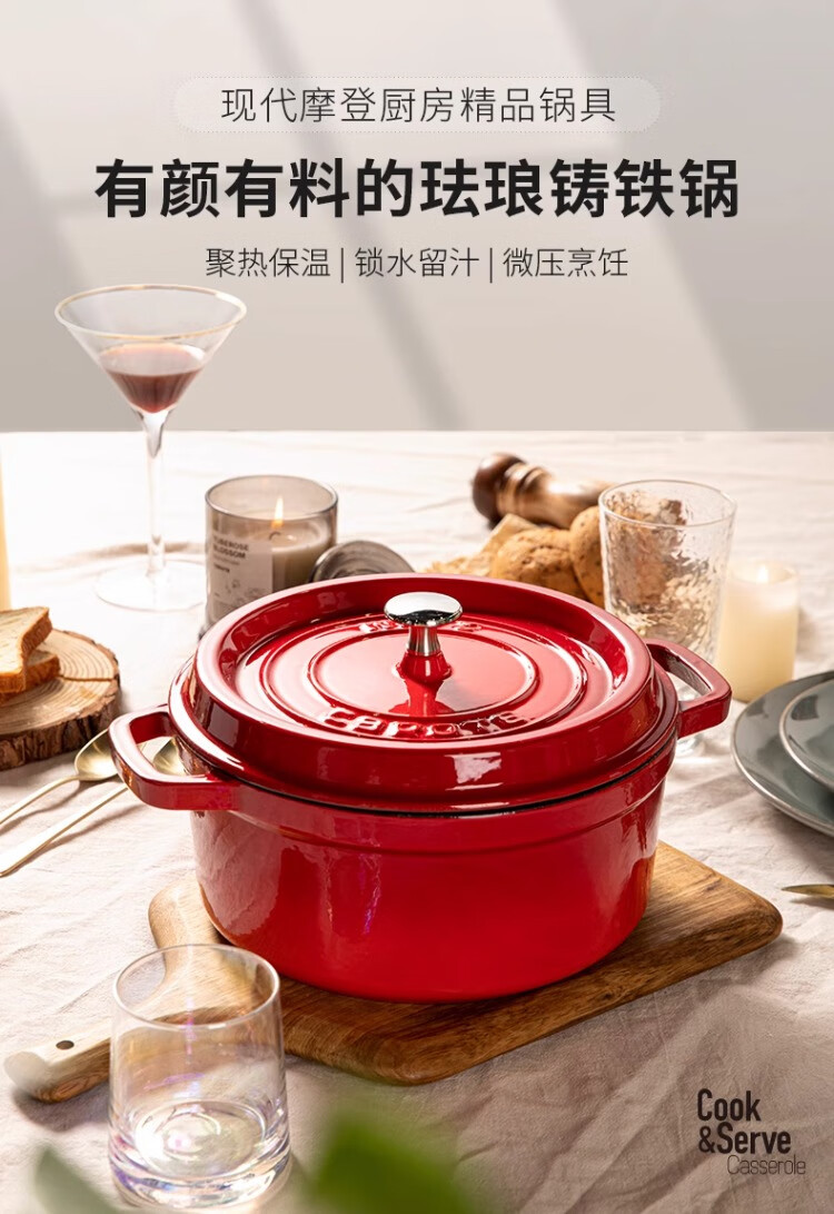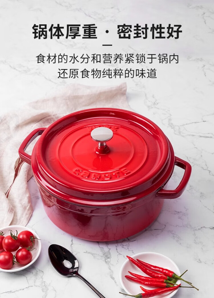 卡罗特珐琅锅铸铁锅家用送礼乔迁礼物炖锅炖盅砂锅汤锅不粘锅煮锅 24cm