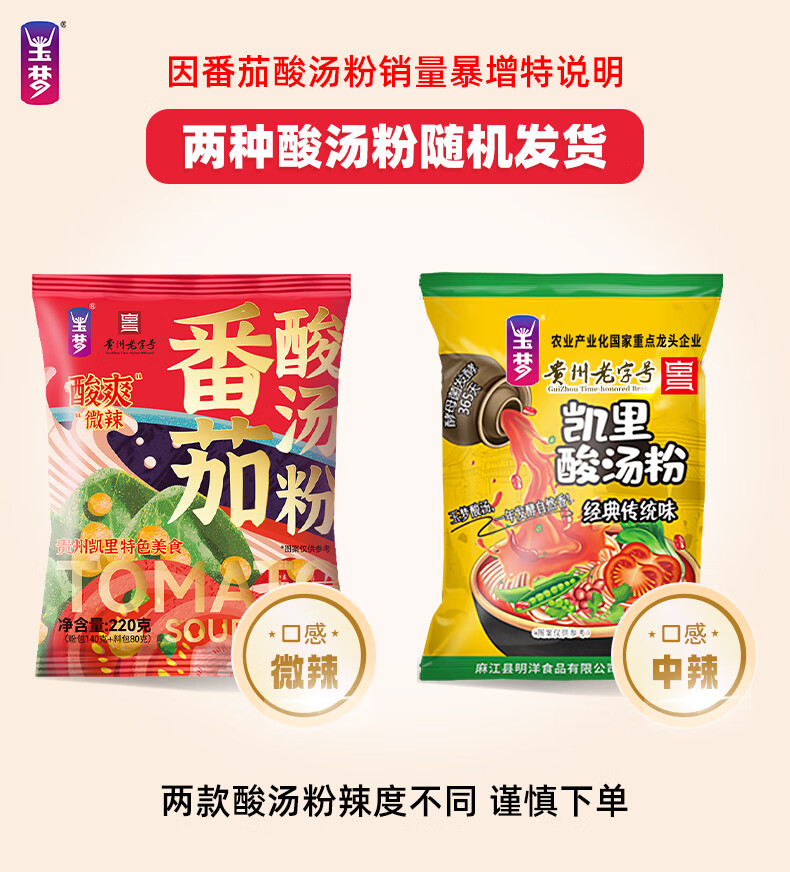 玉梦 贵州特产凯里酸汤粉 非油炸方便速食酸辣粉贵州特色酸汤米粉米线 番茄酸汤粉220g*3袋