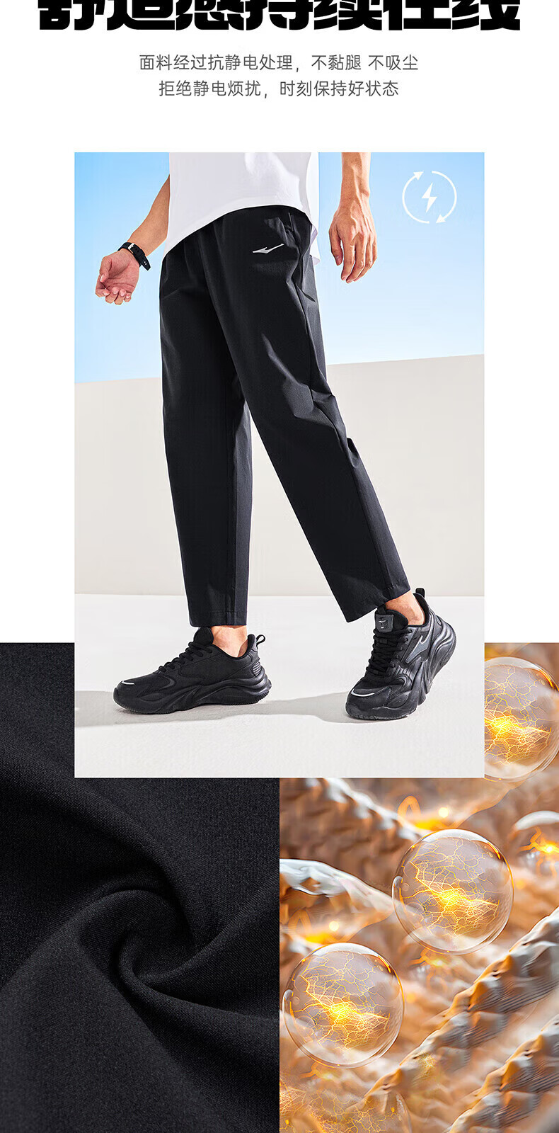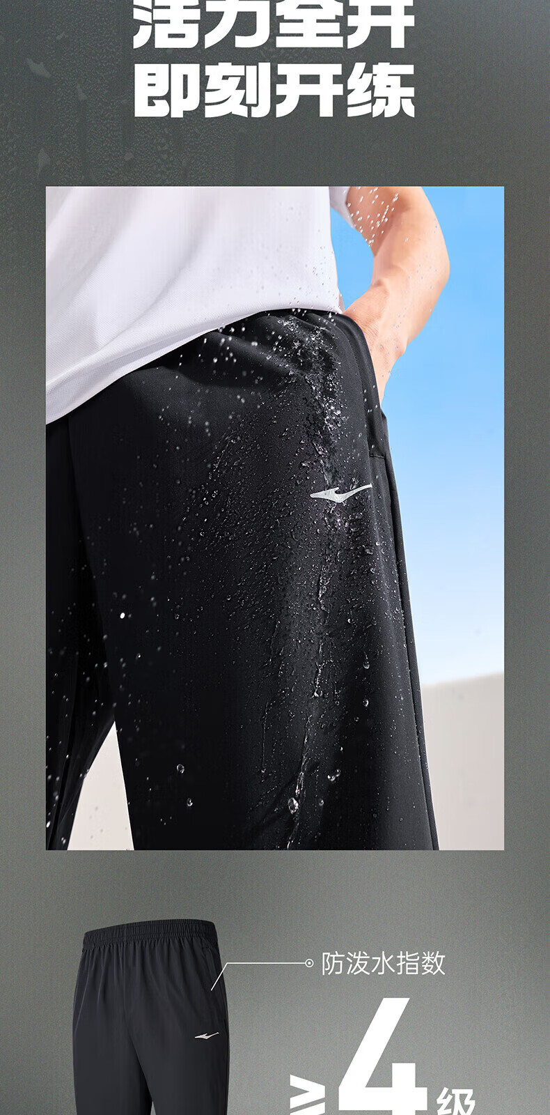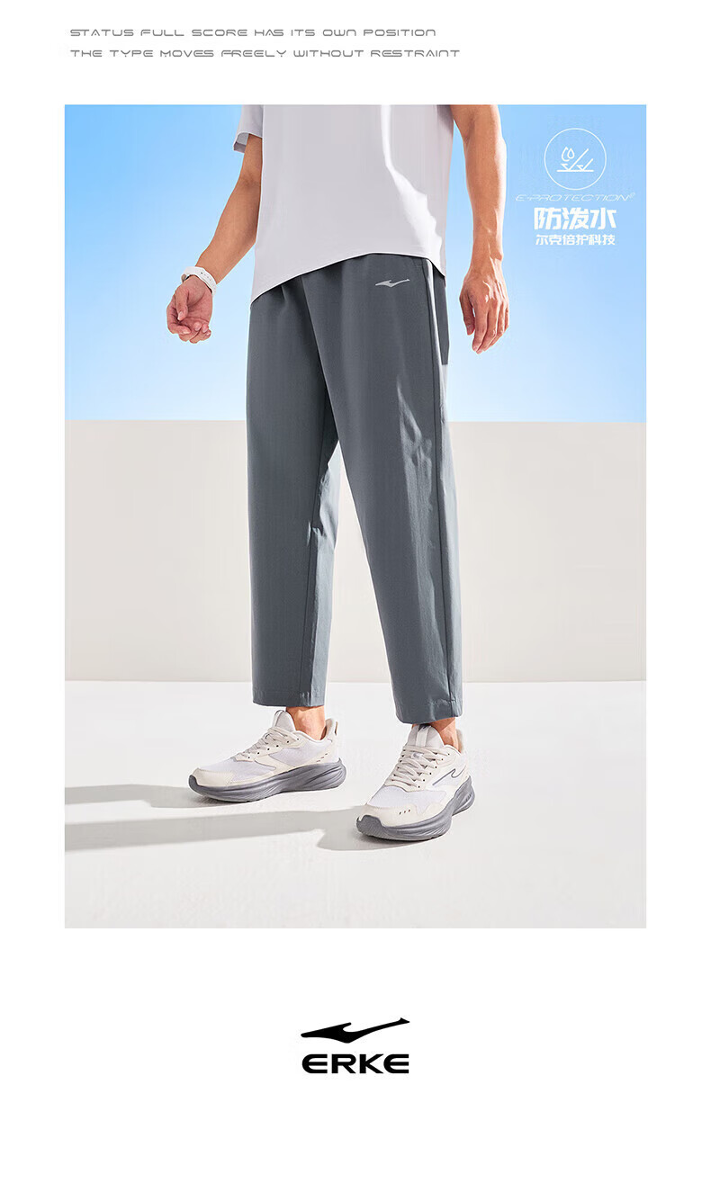 鸿星尔克(ERKE)防泼水|运动裤男新款户外休闲运动健身梭织九分男子长裤男裤 深灰 XL