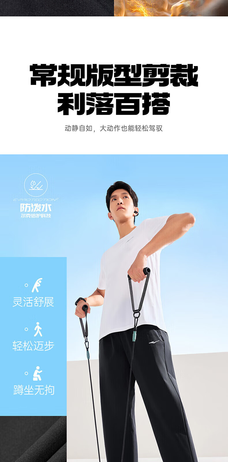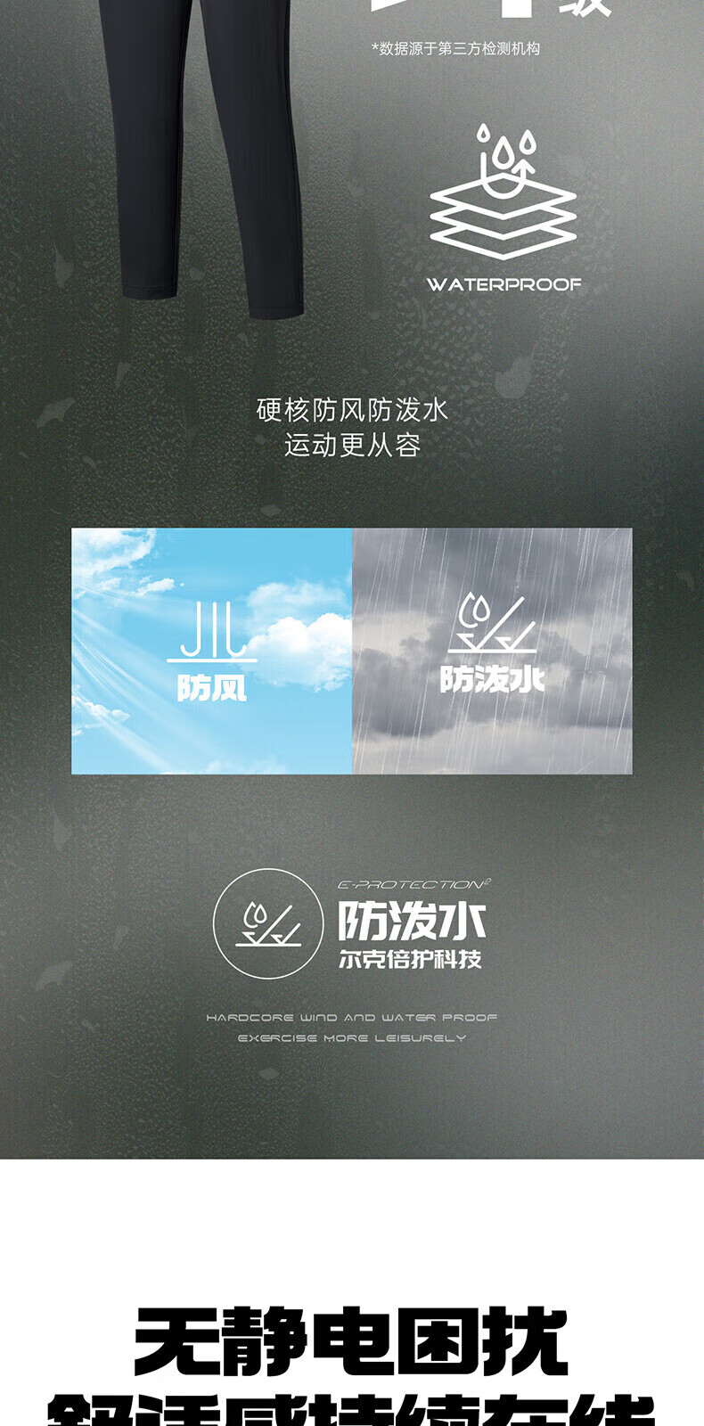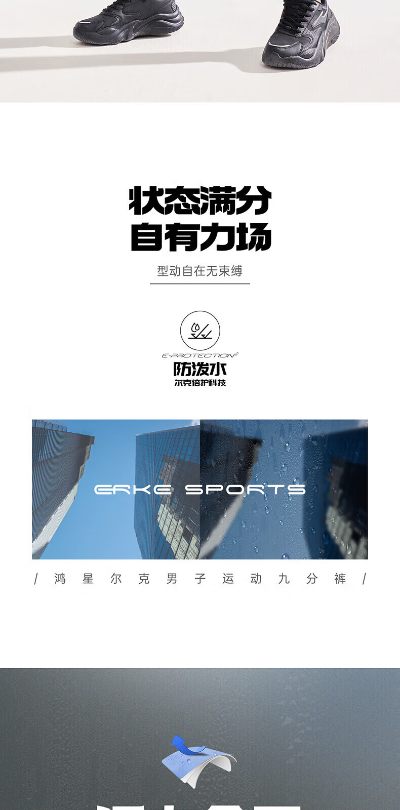 鸿星尔克(ERKE)防泼水|运动裤男新款户外休闲运动健身梭织九分男子长裤男裤 深灰 XL