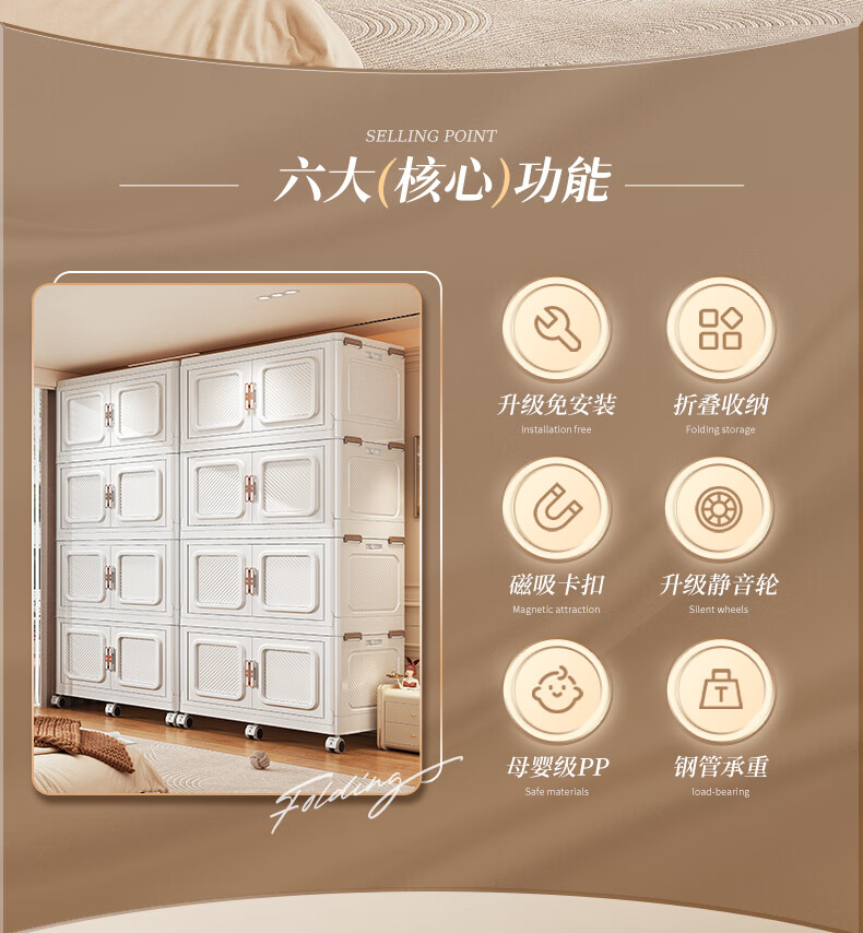 纳份爱 超巨无霸105cm加厚收纳柜衣柜衣物收纳柜零甲醛阳台柜子储物柜 105CM宽丨实色四层【顺丰送货上门】 超加厚-钢管加固-6个万向轮