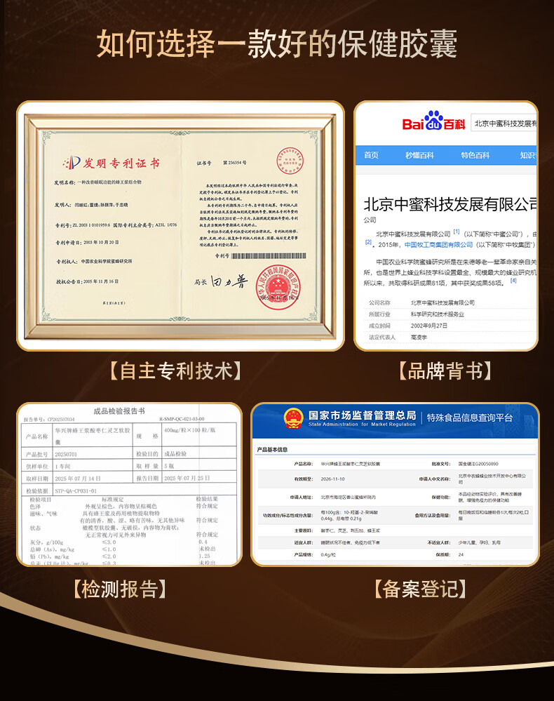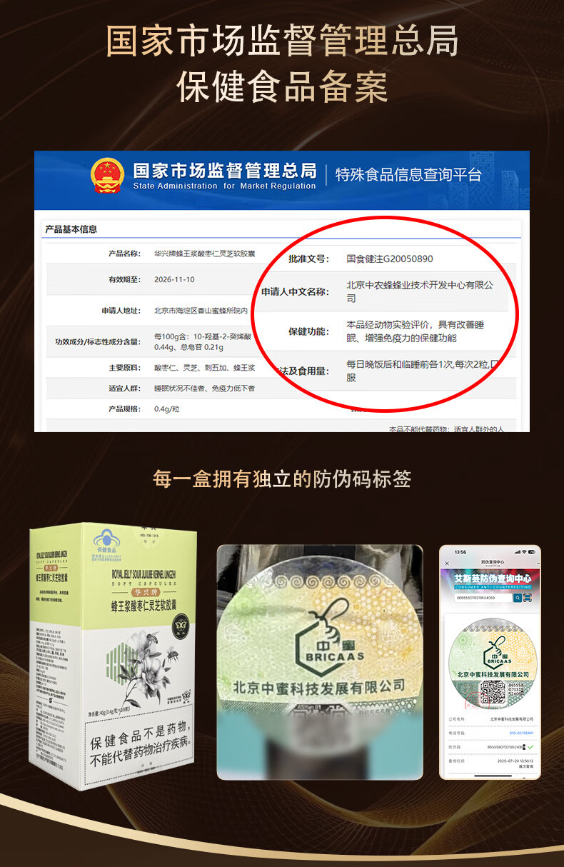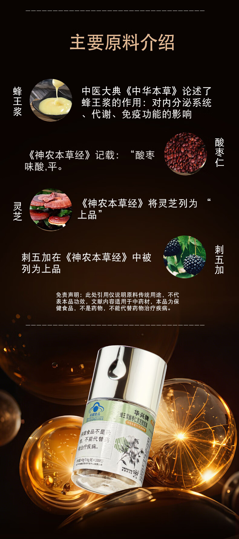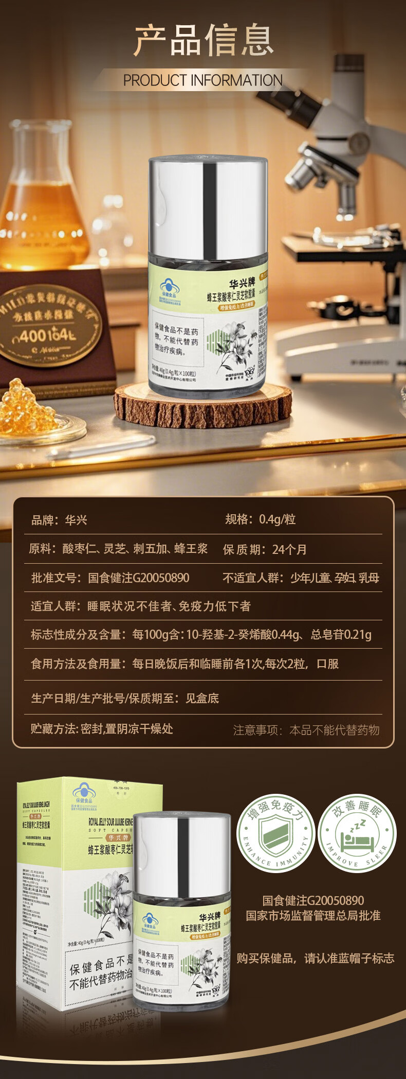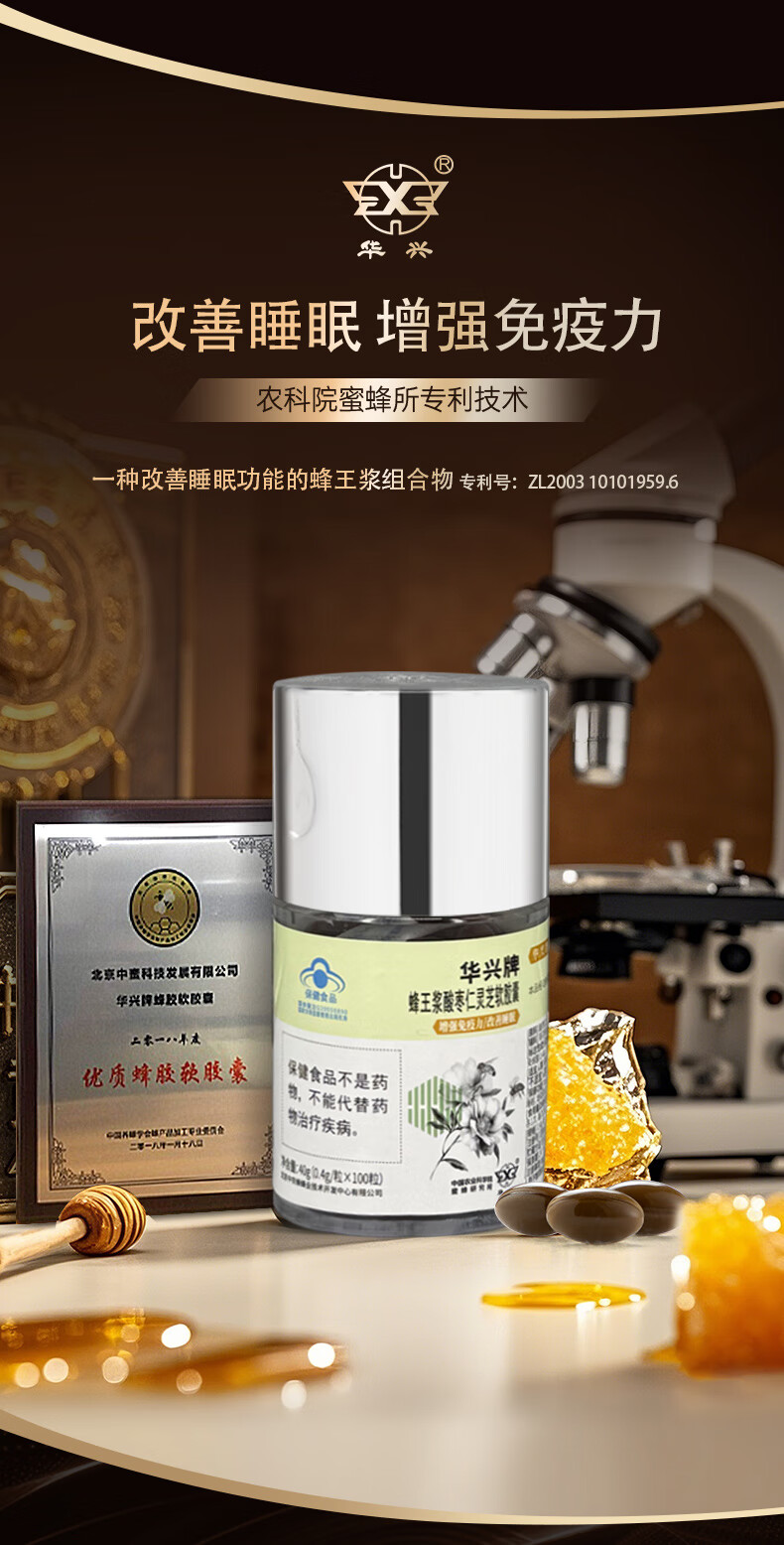 中蜜华兴蜂王浆酸枣仁灵芝胶囊100粒改善睡眠增强免疫力 农科院蜜研所