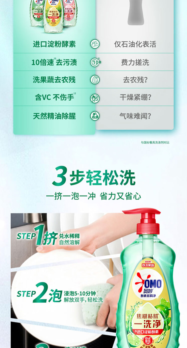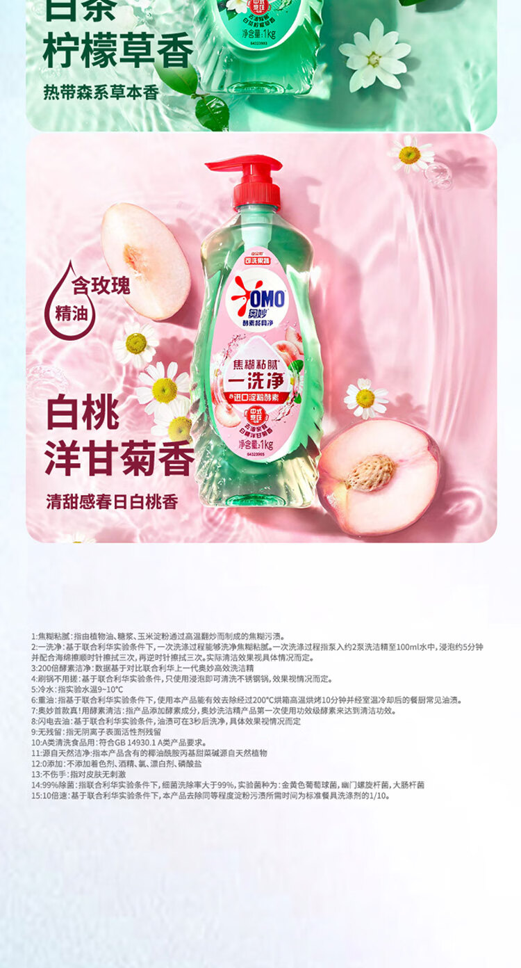 奥妙大桶酵素餐具净洗洁精 白桃洋甘菊1kg*4+500g+橙花500g 6瓶装