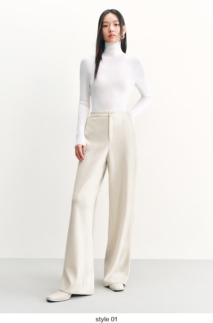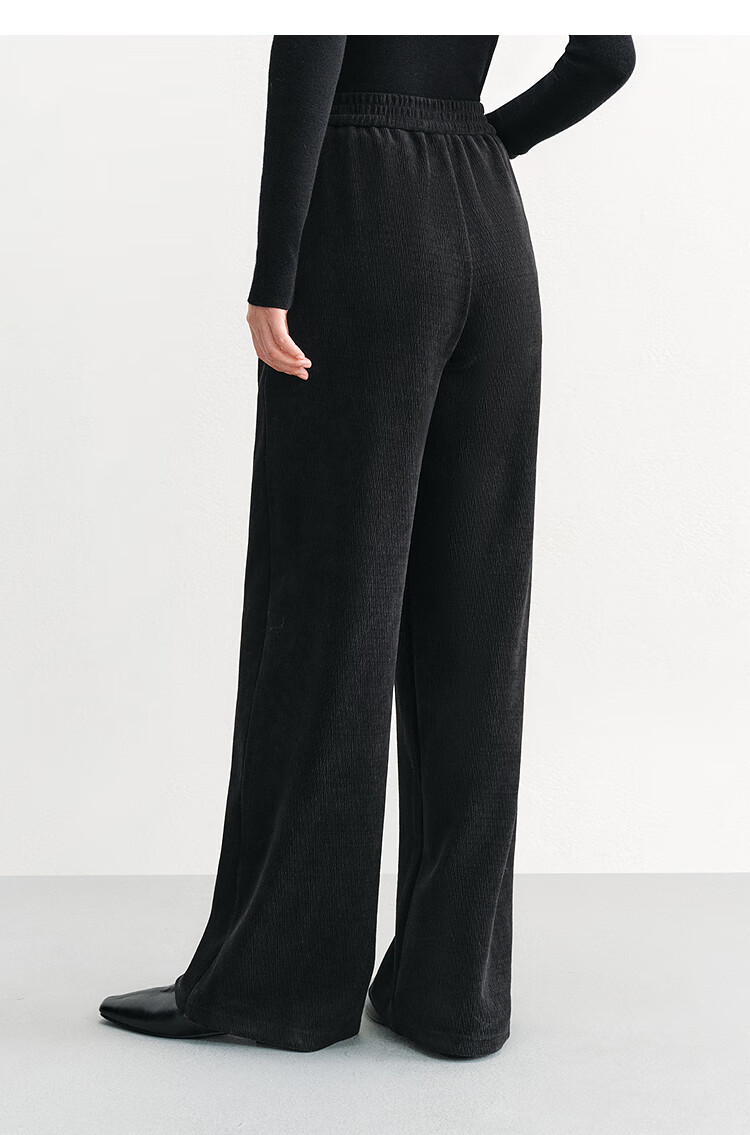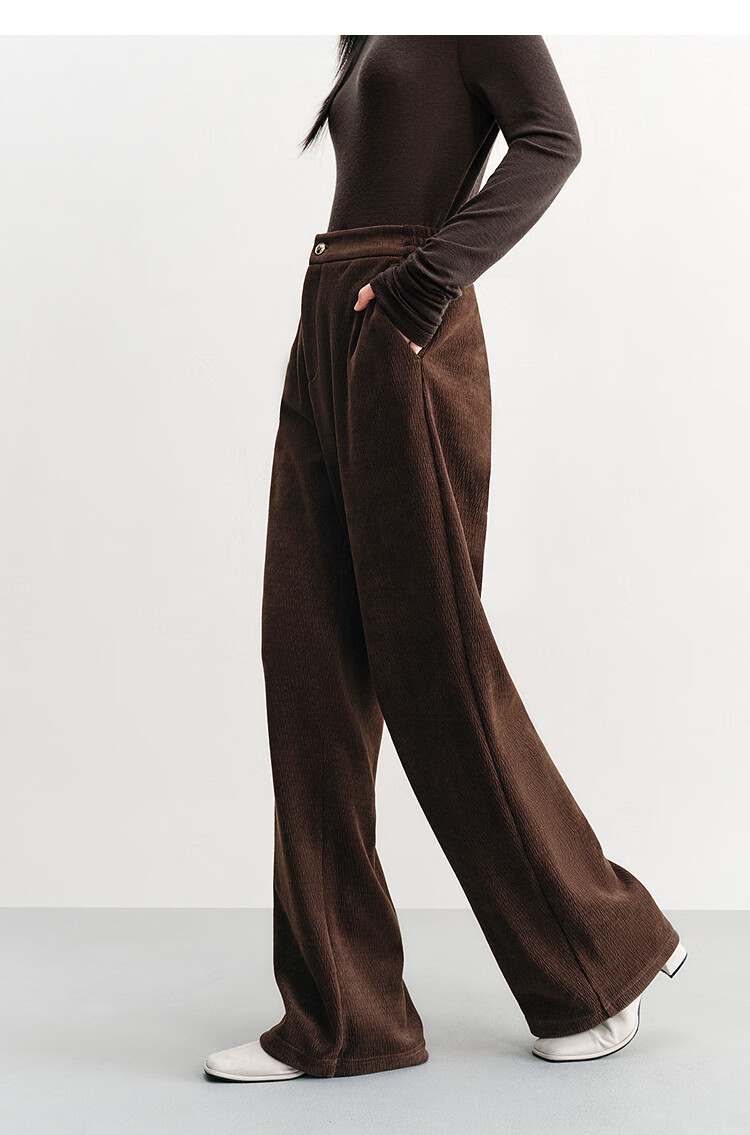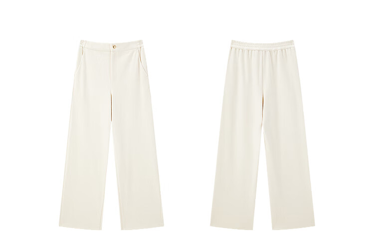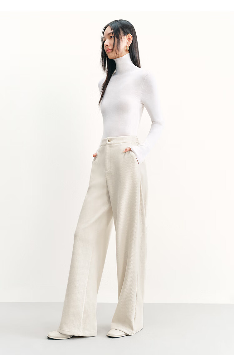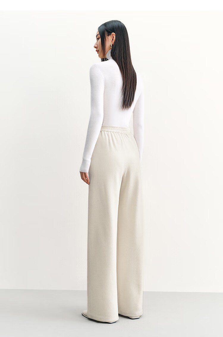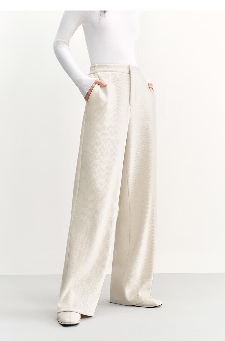 太平鸟女装休闲裤高腰雪尼尔直筒长裤秋冬加厚阔腿裤子 米白色 L