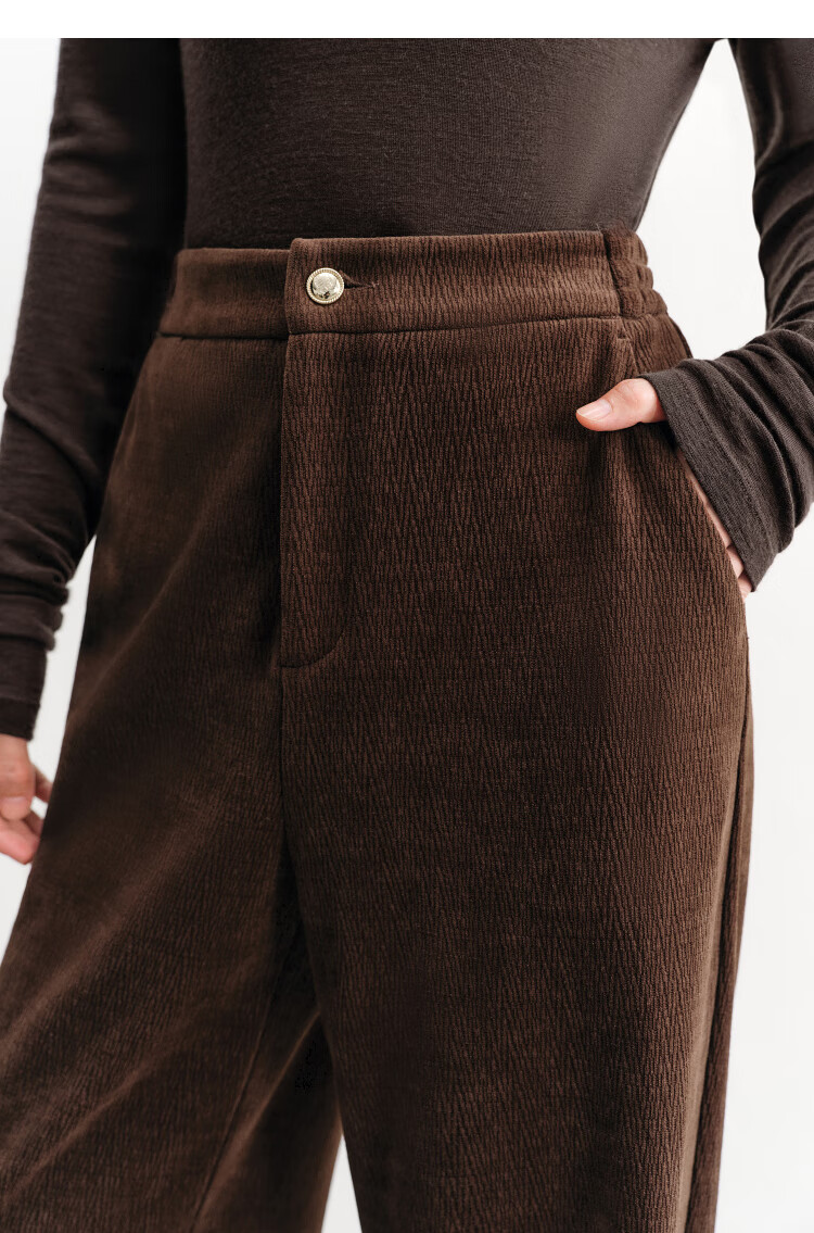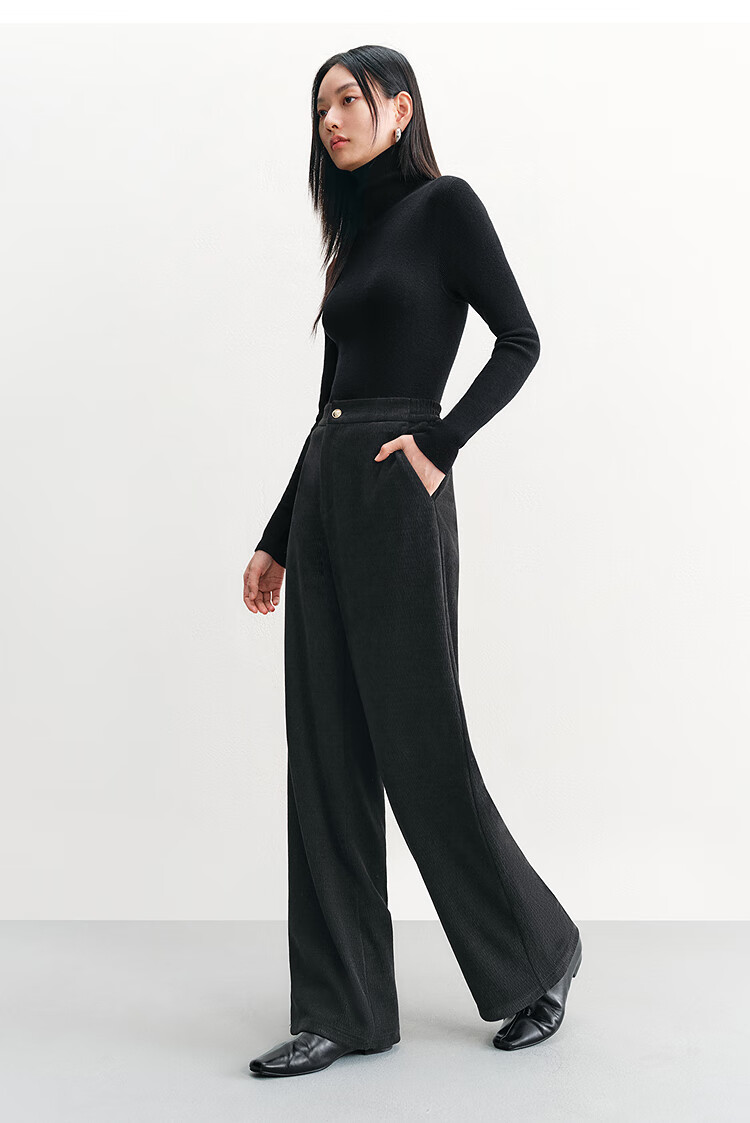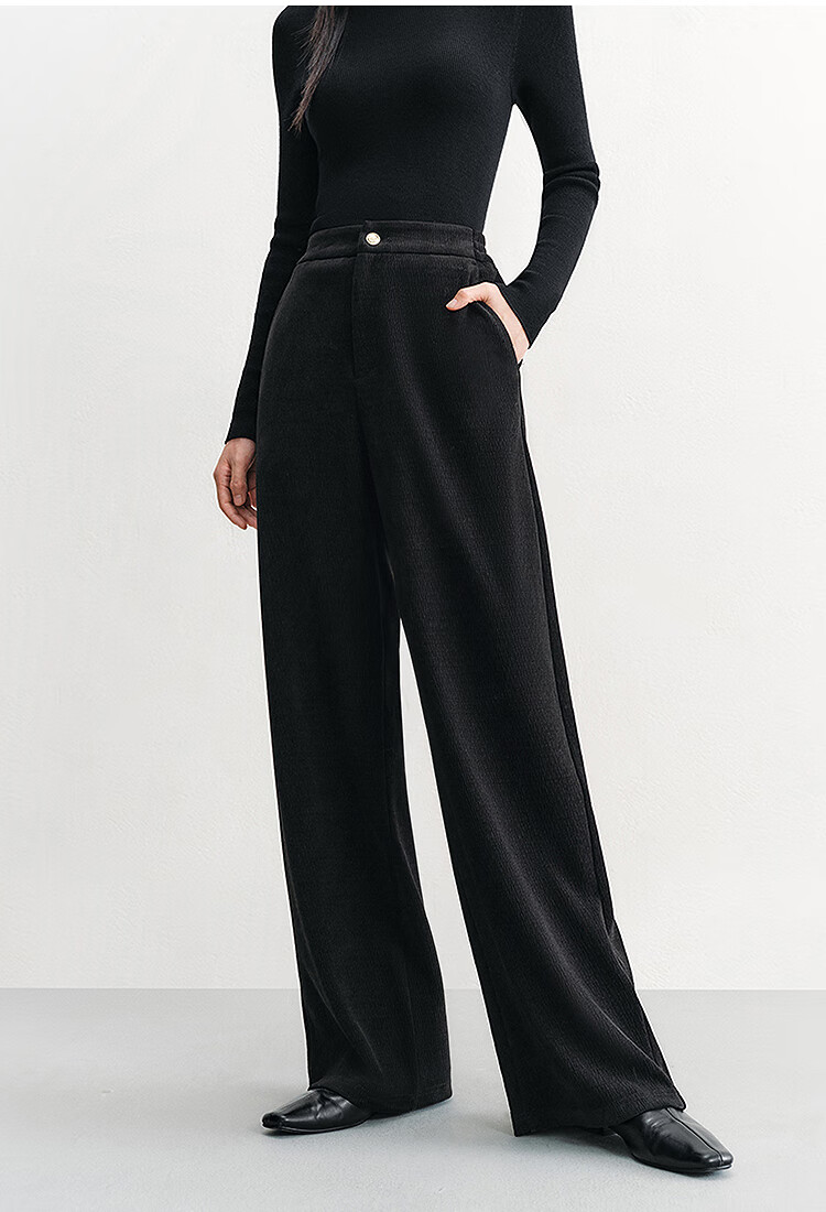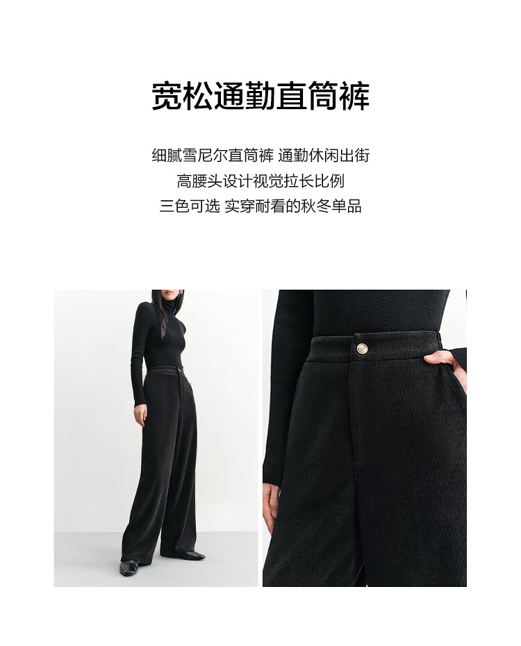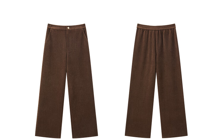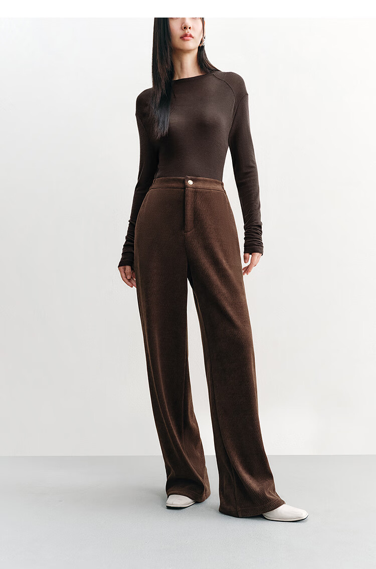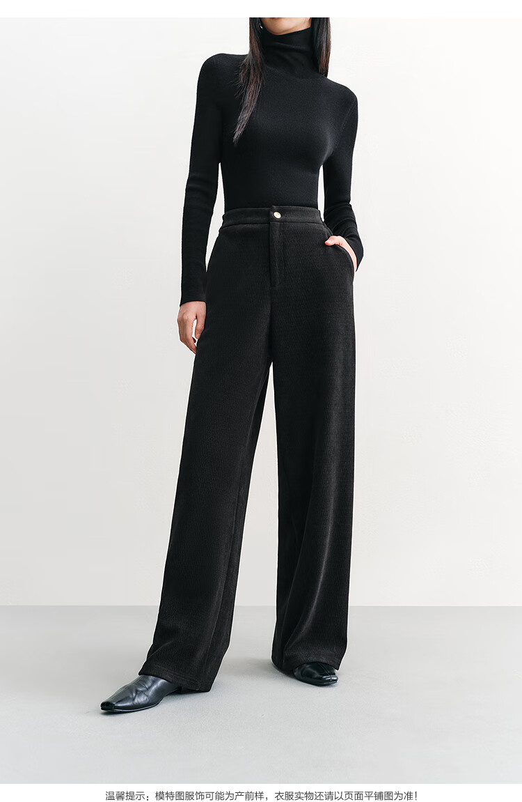 太平鸟女装休闲裤高腰雪尼尔直筒长裤秋冬加厚阔腿裤子 米白色 L
