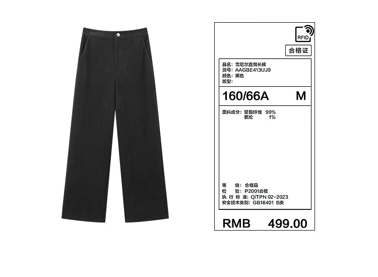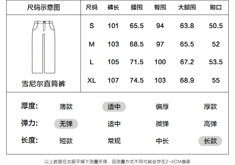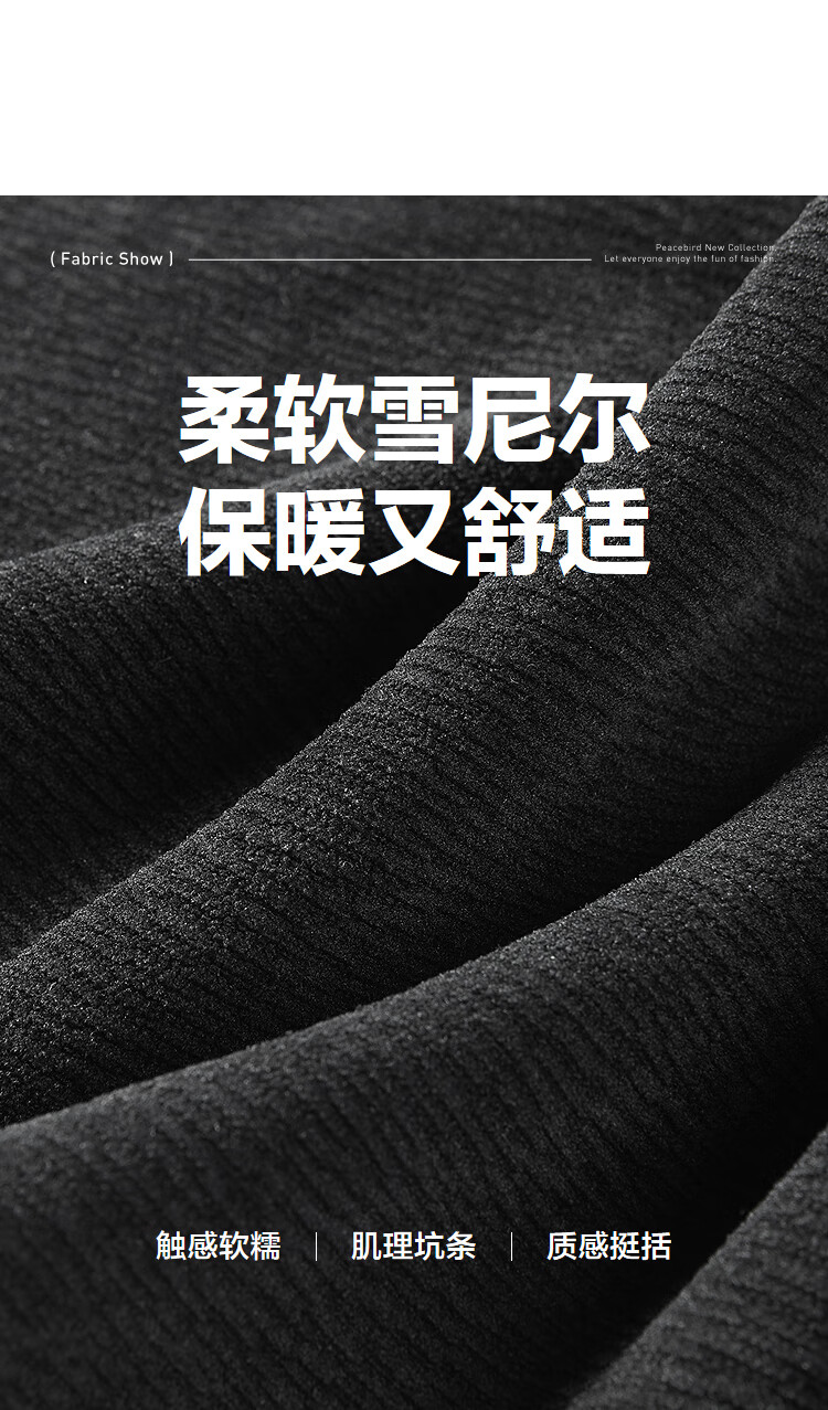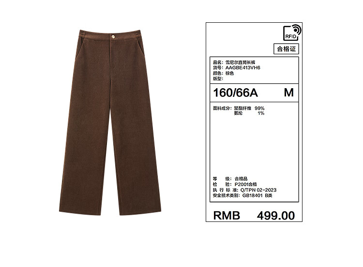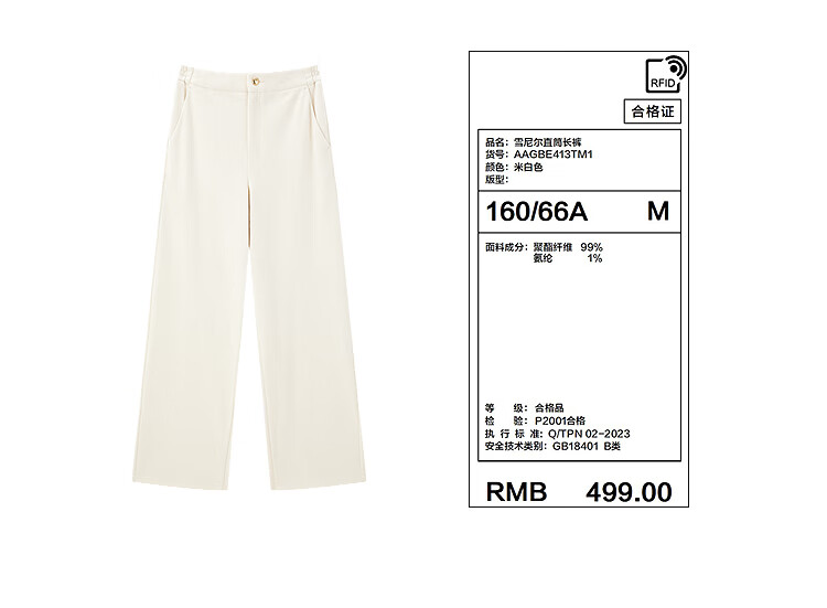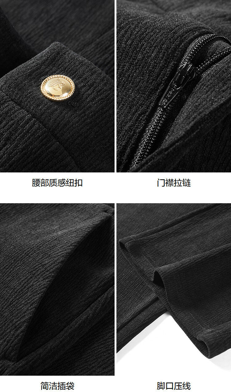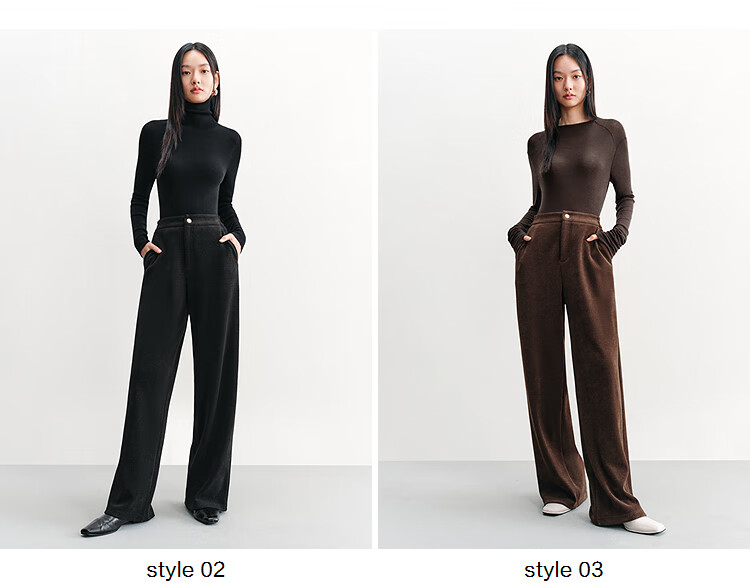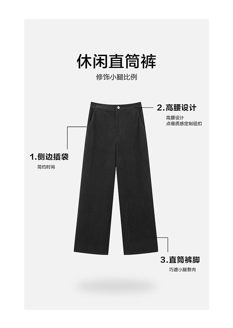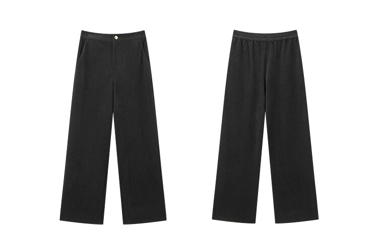 太平鸟女装休闲裤高腰雪尼尔直筒长裤秋冬加厚阔腿裤子 米白色 L
