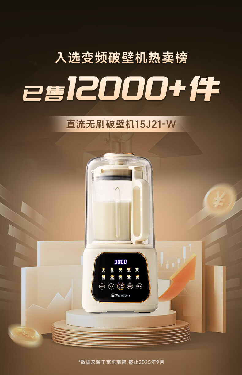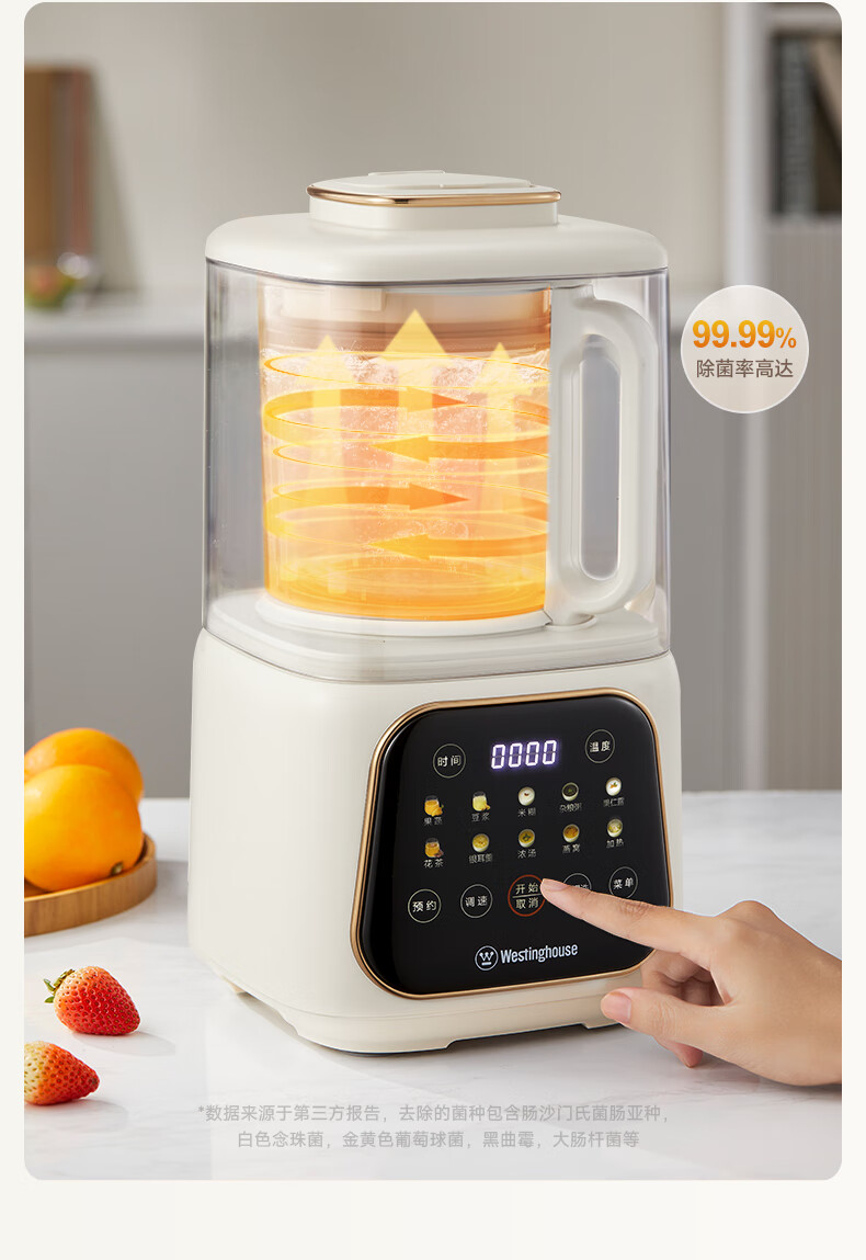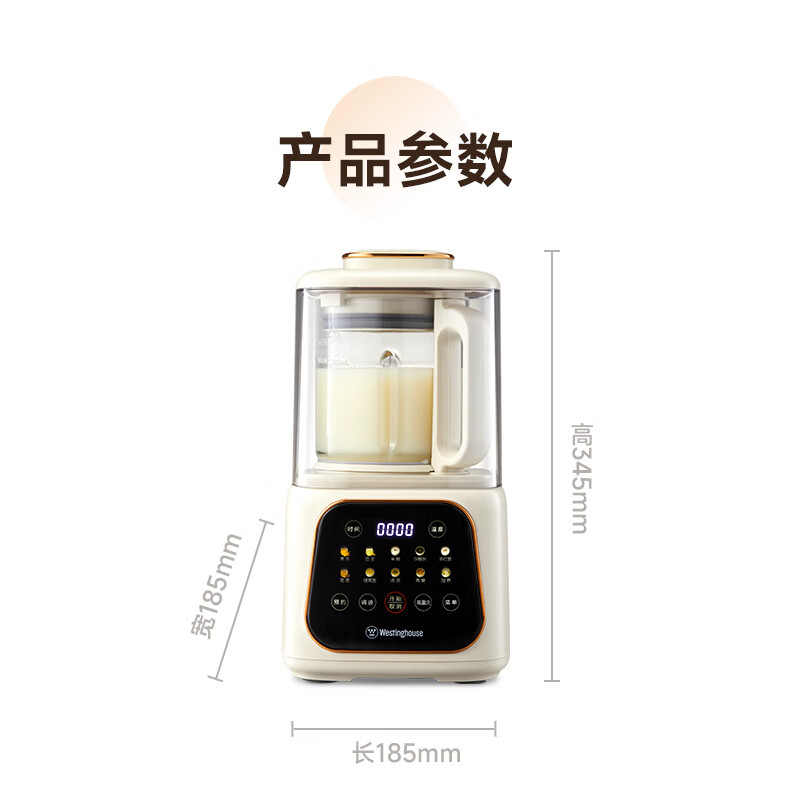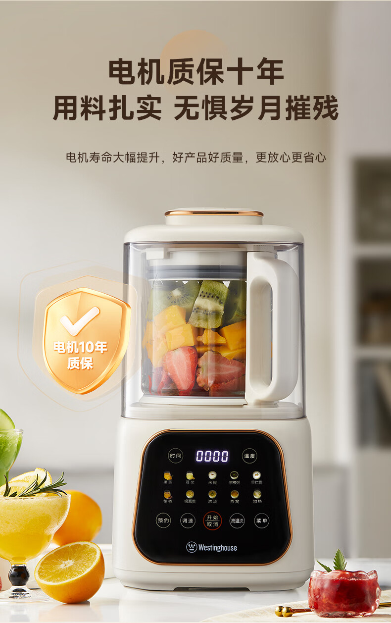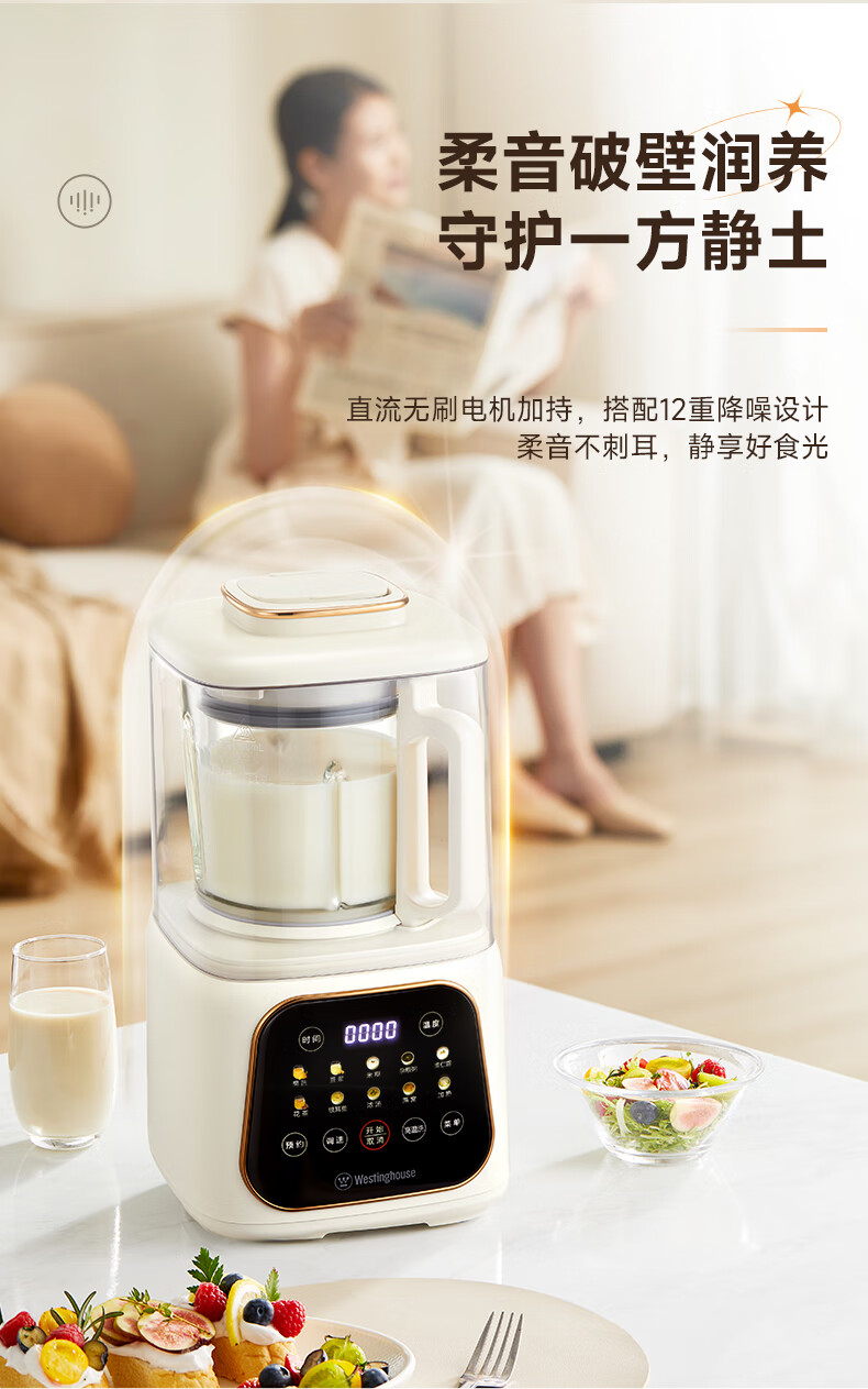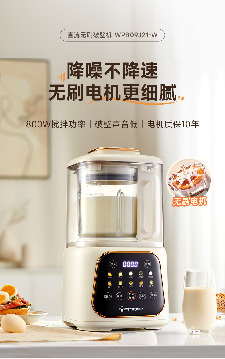 西屋(Westinghouse)无刷破壁机家用豆浆机加热全自动榨汁机变频降噪柔音触控彩屏辅食机 WPB09J21-W