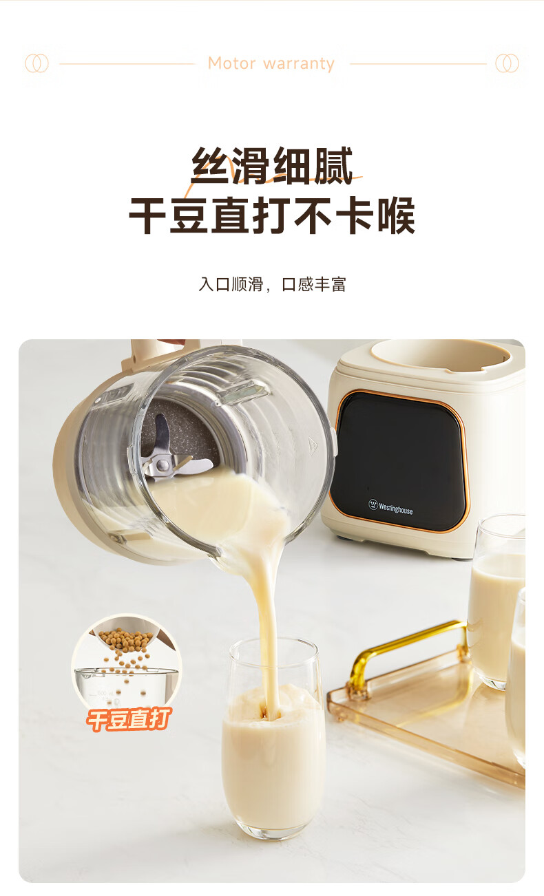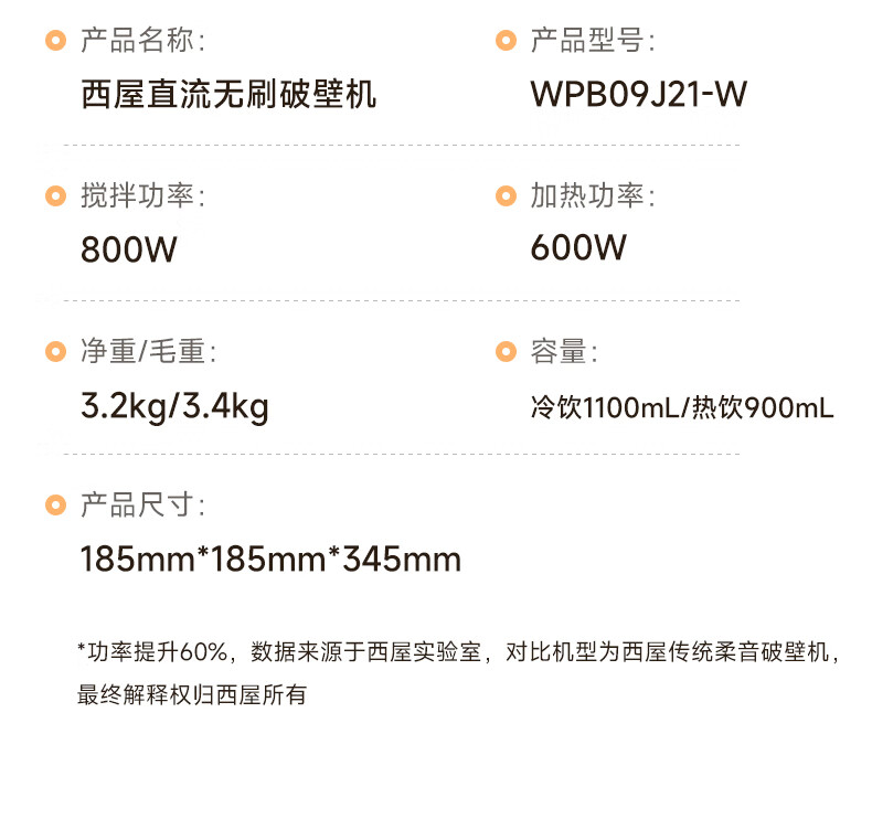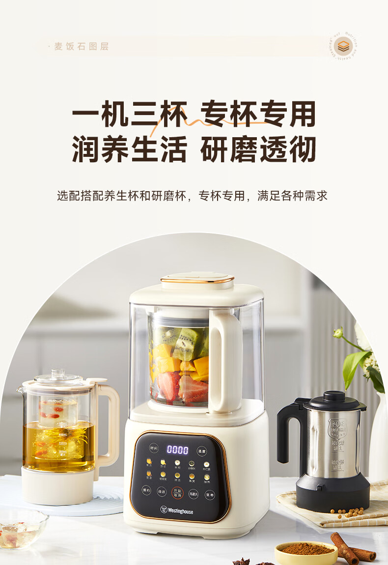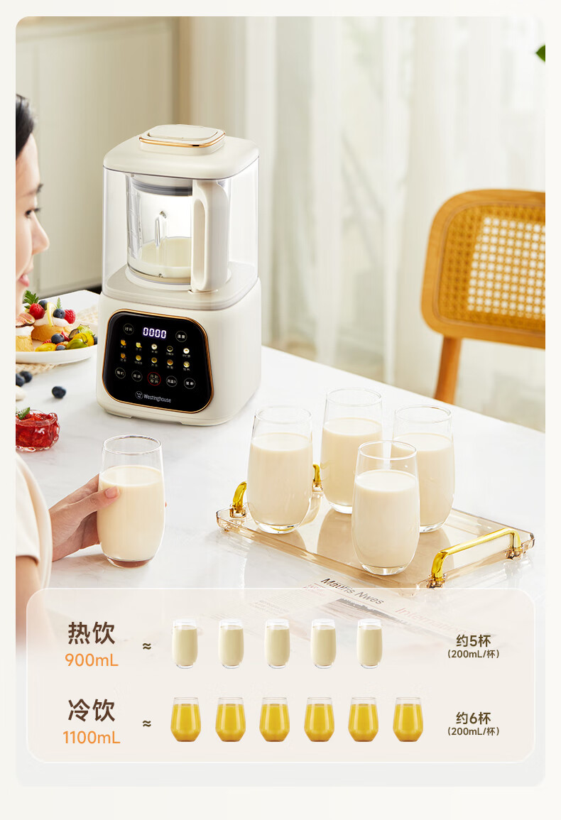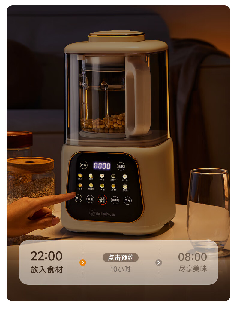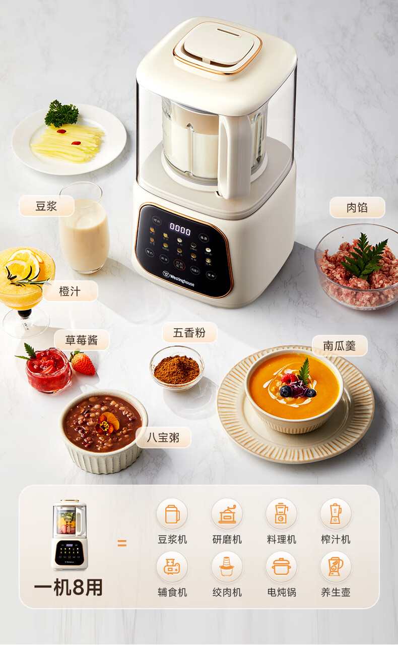 西屋(Westinghouse)无刷破壁机家用豆浆机加热全自动榨汁机变频降噪柔音触控彩屏辅食机 WPB09J21-W