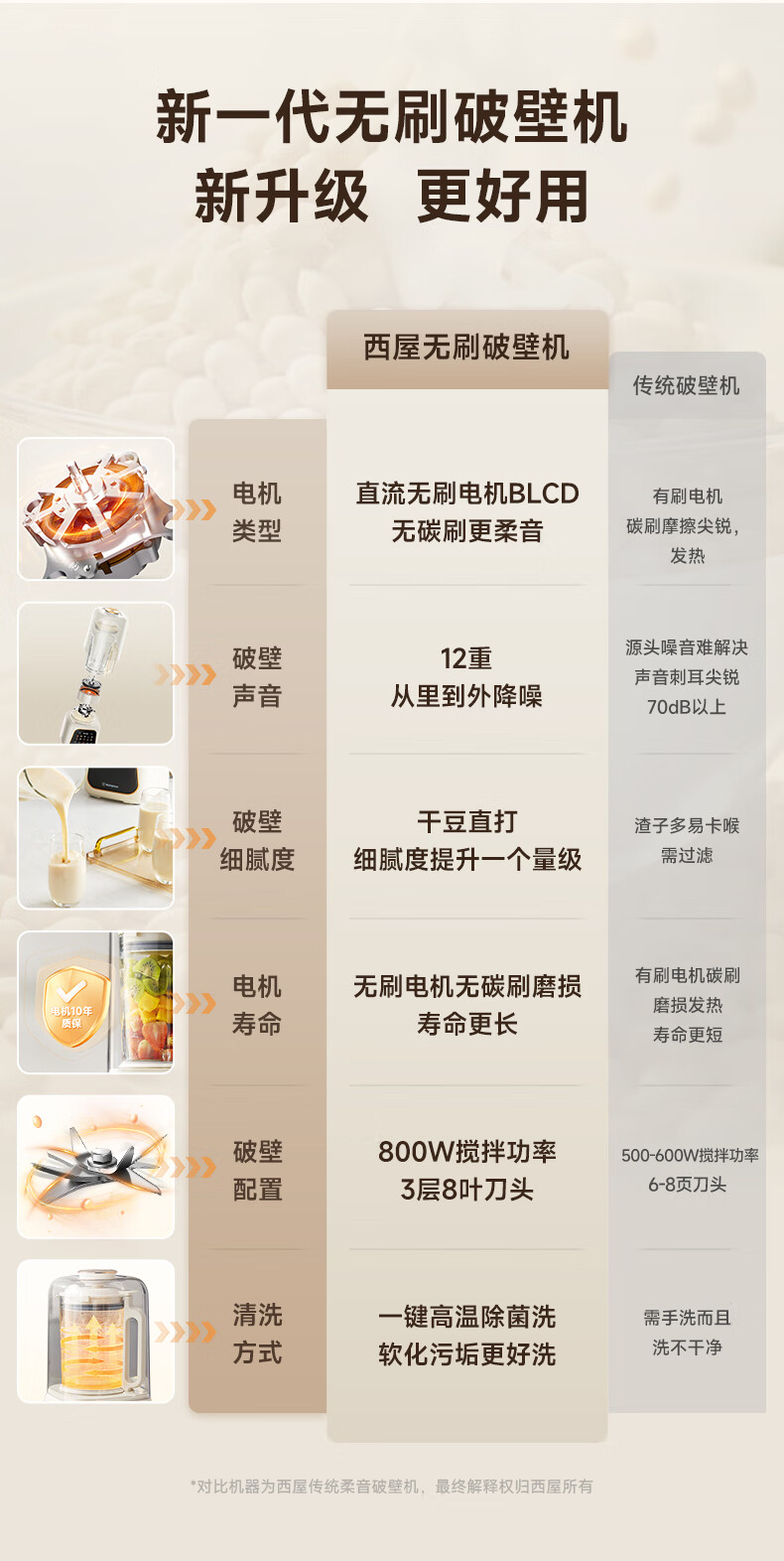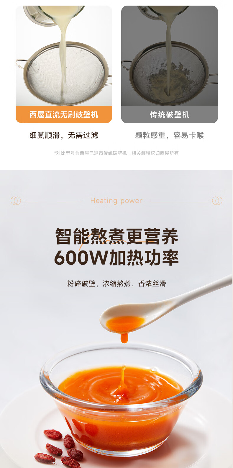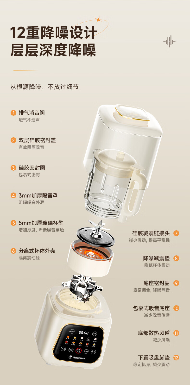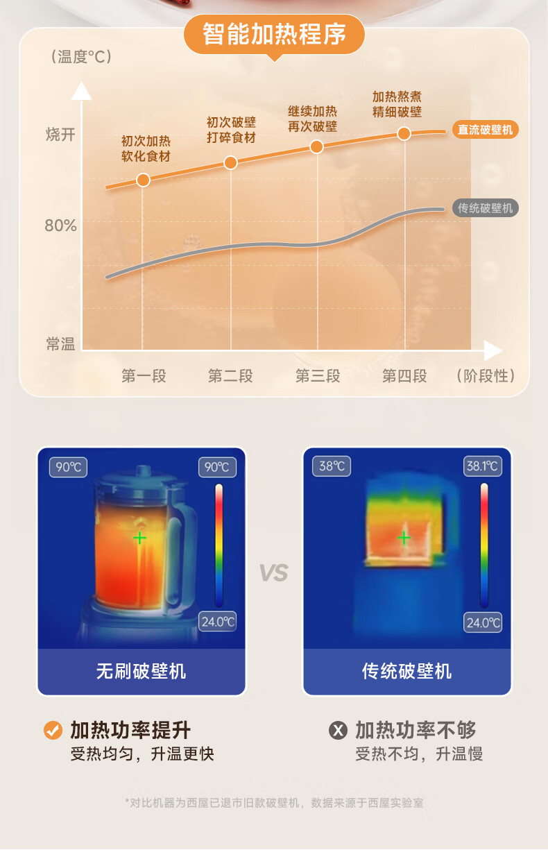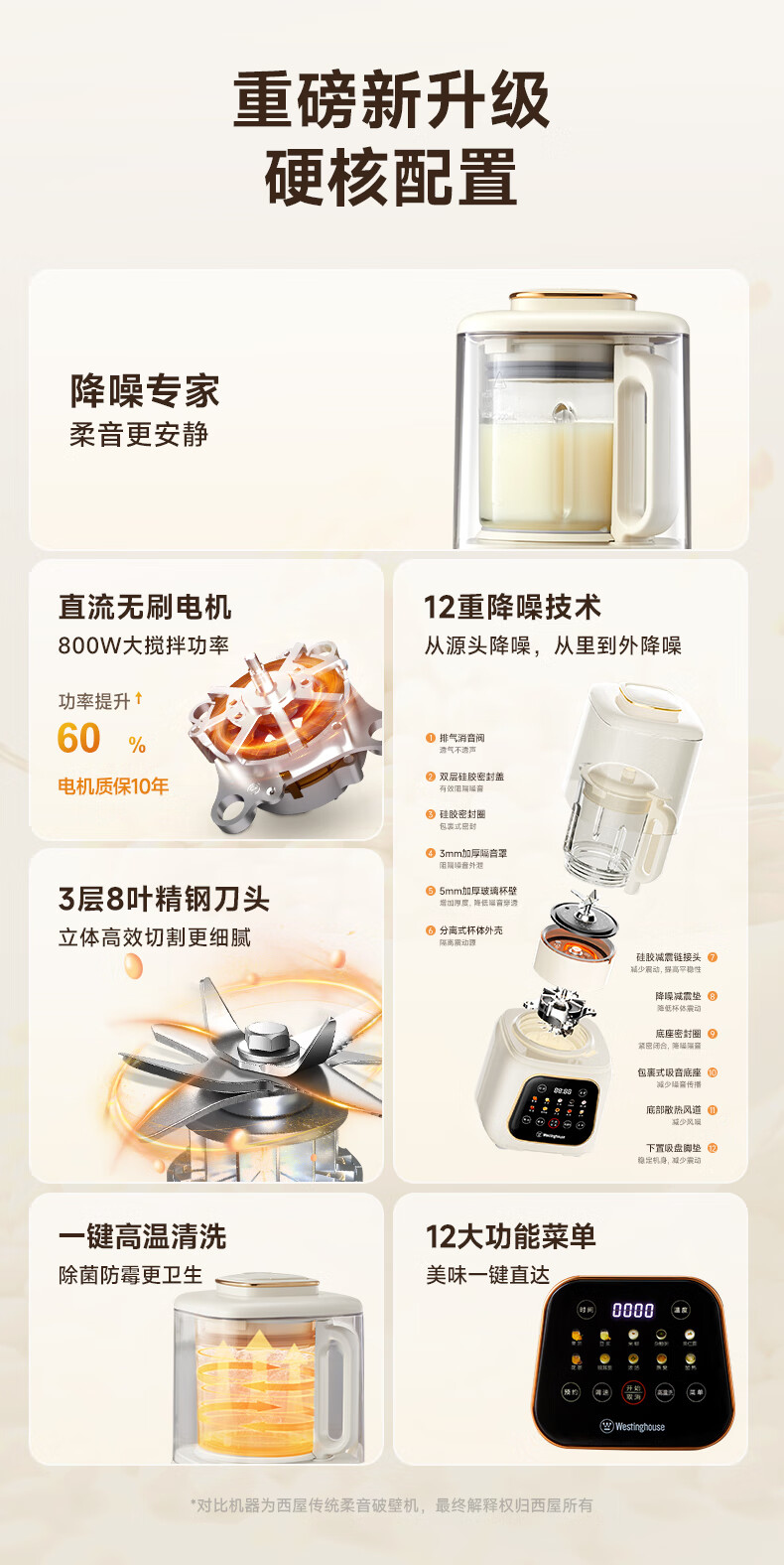 西屋(Westinghouse)无刷破壁机家用豆浆机加热全自动榨汁机变频降噪柔音触控彩屏辅食机 WPB09J21-W