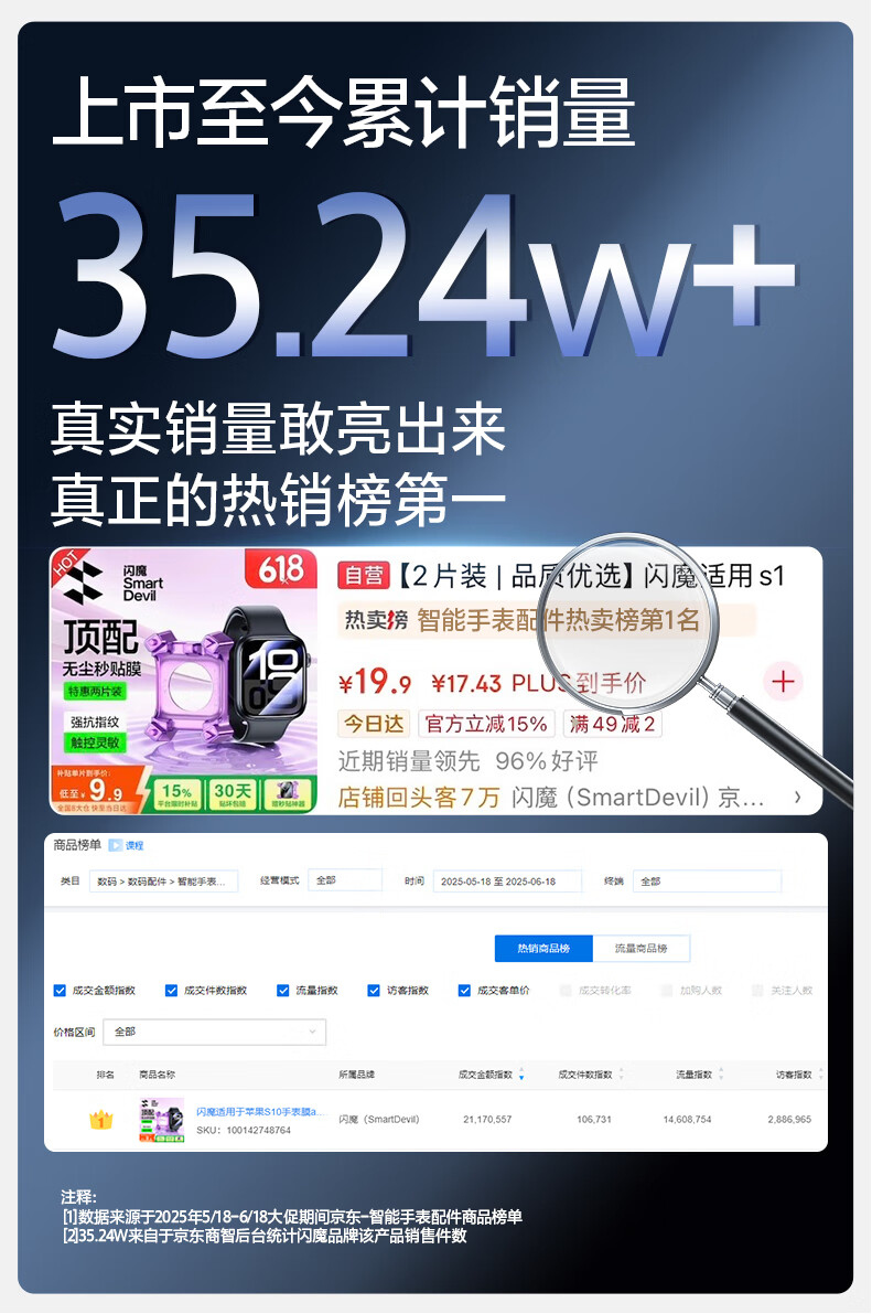 闪魔(SmartDevil)【发布会新品S11】适用apple watch s11保护膜s11/s10手表膜自定位苹果保护膜秒贴耐摔-42mm