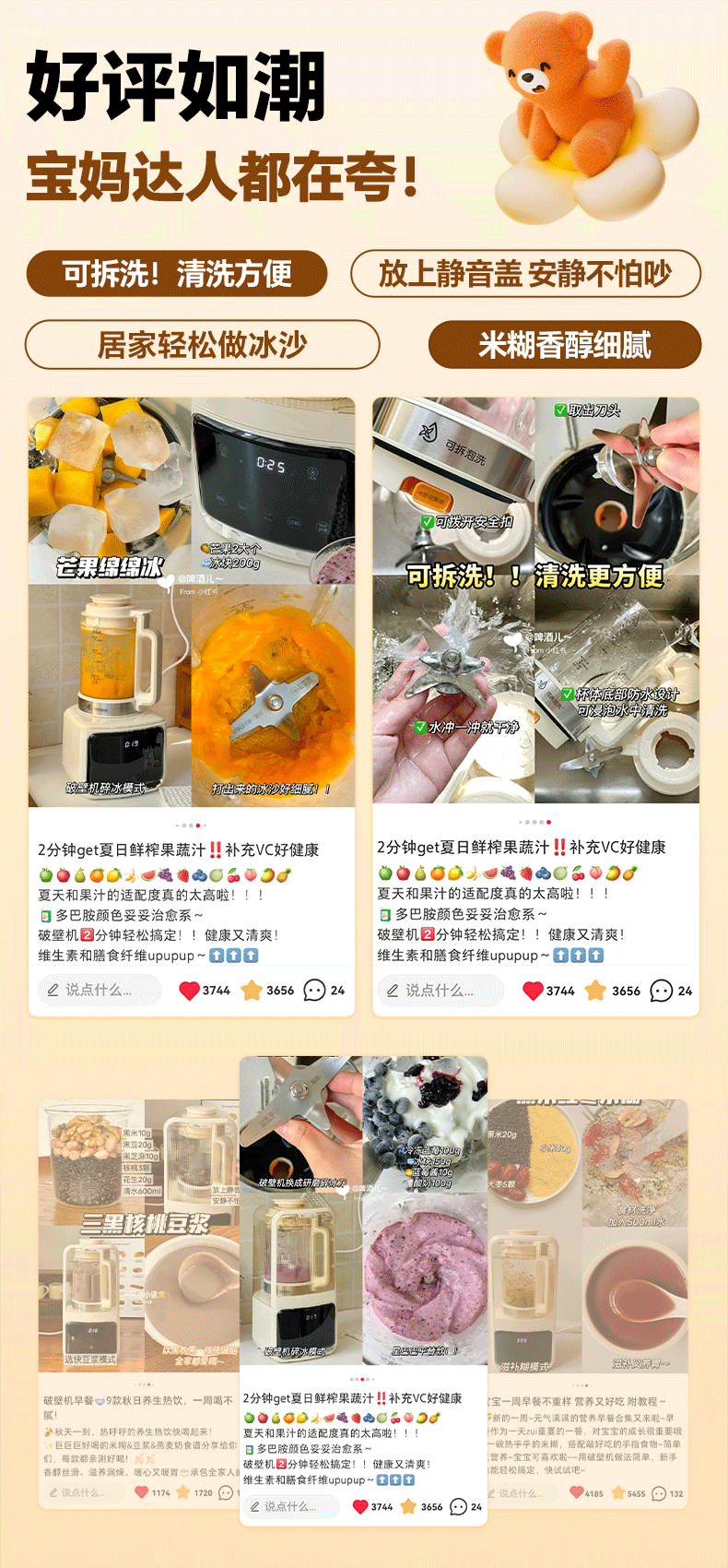 小熊(Bear)白月光豆浆机破壁机家用1L快豆浆大容量3-4人用全自动免煮2025新款多功能免过滤一键清洗DJJ-H08C1