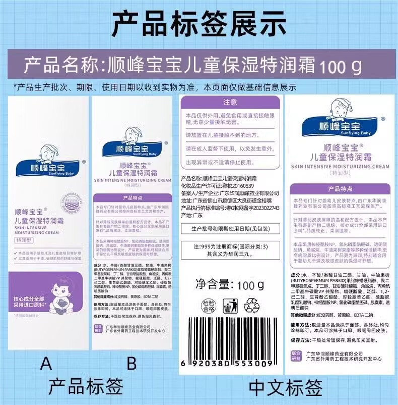 顺峰宝宝儿童面霜保湿特润霜精华霜婴幼儿童身体乳婴幼儿补水润肤 【特润保湿】特润霜225g