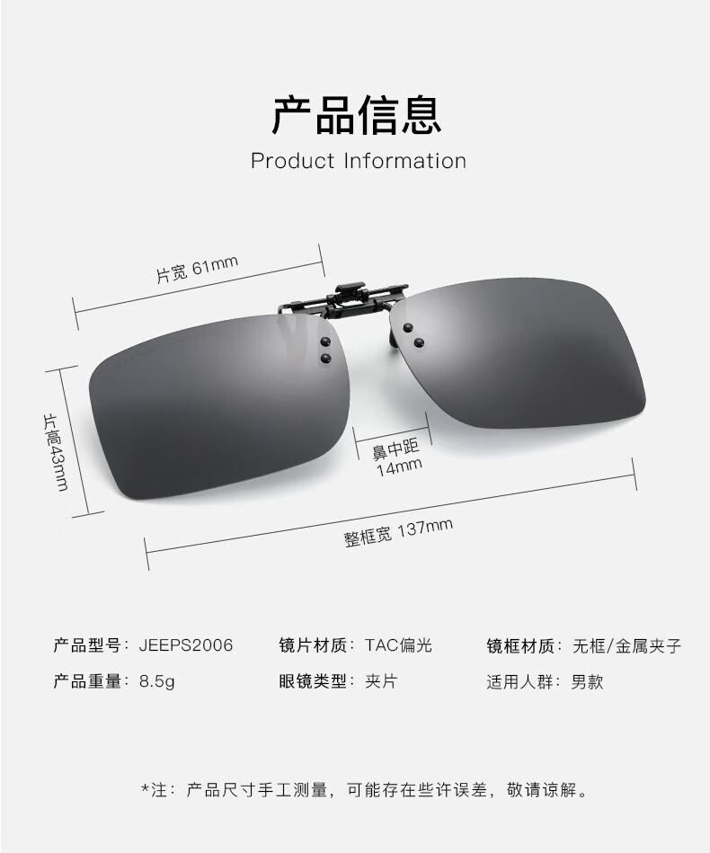 JeepJEEP墨镜夹片太阳镜近视眼镜高清偏光镜开车夹片2006-M5