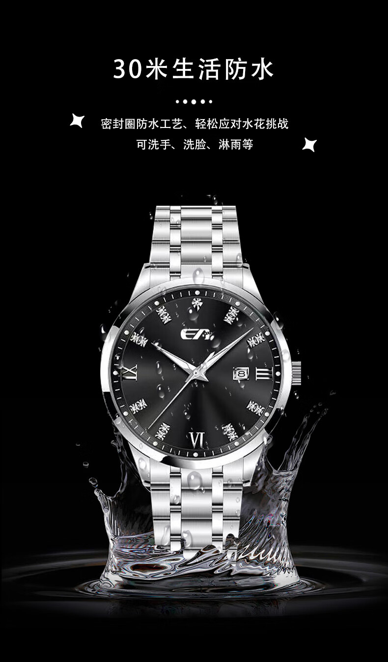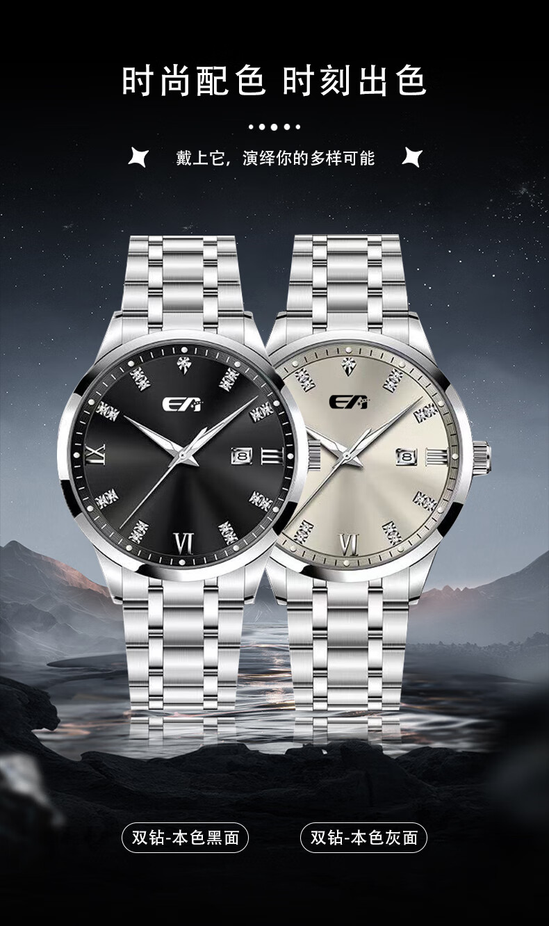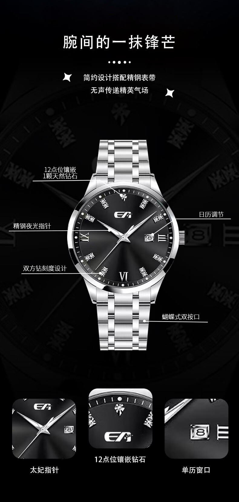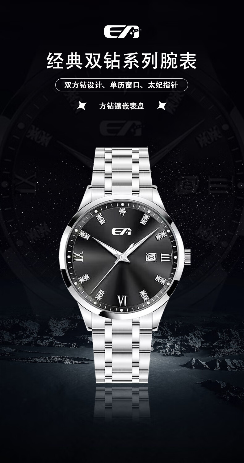 EA手表男钻石简约商务防水气质时尚钢带石英七夕情人节礼物送男友