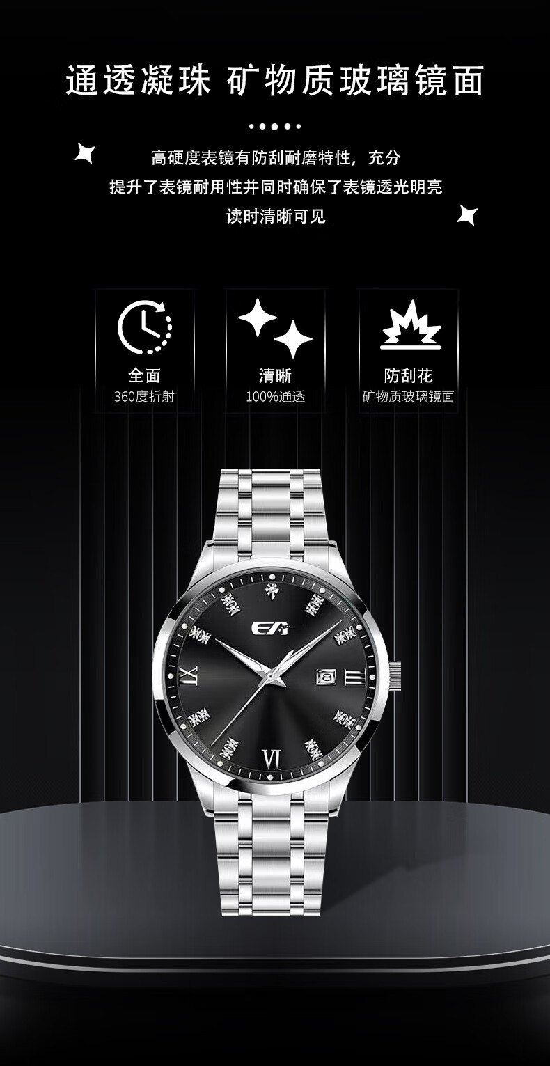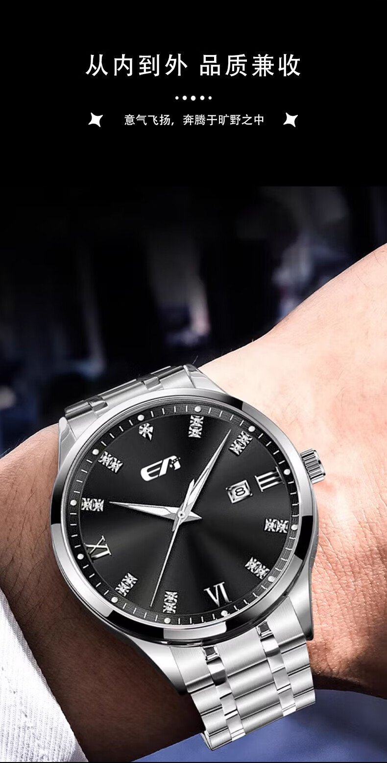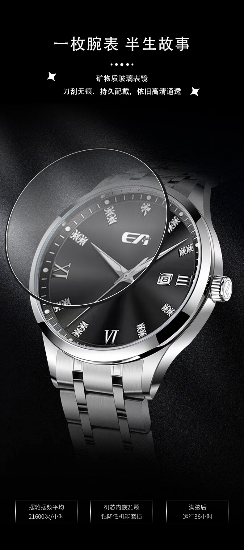 EA手表男钻石简约商务防水气质时尚钢带石英七夕情人节礼物送男友