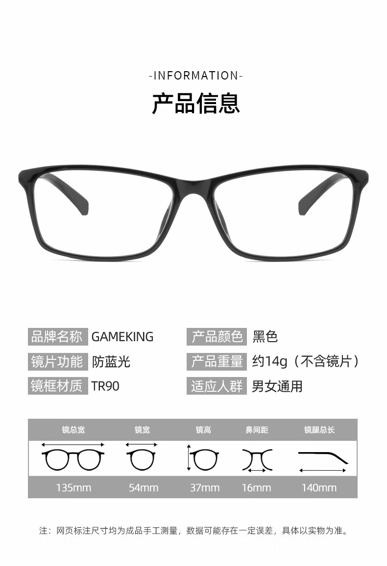Gameking防蓝光眼镜男女防辐射眼镜无度数眼睛框手机电脑游戏平光镜2006黑