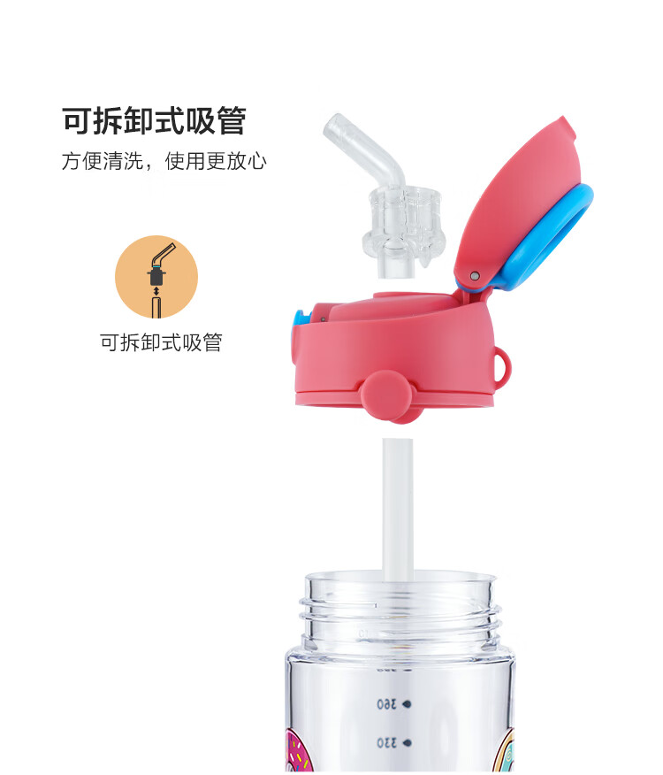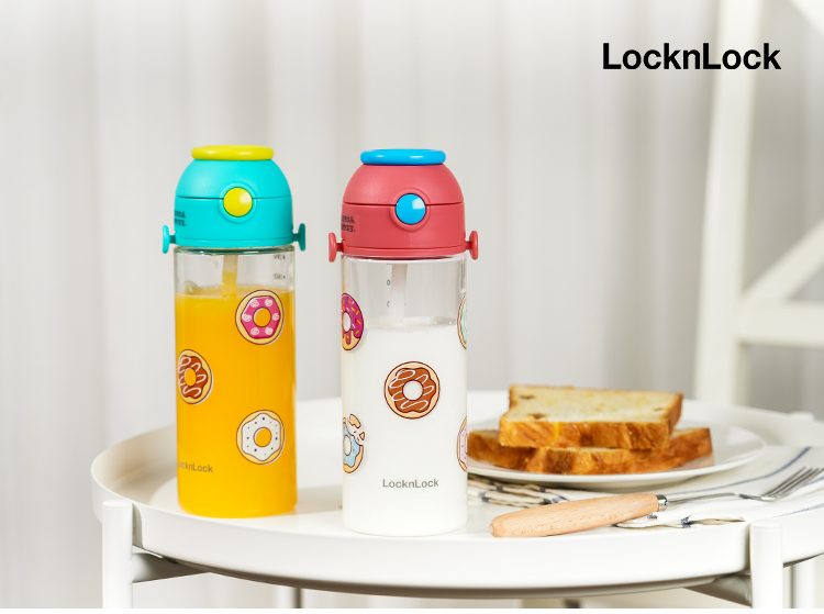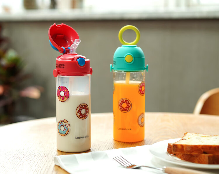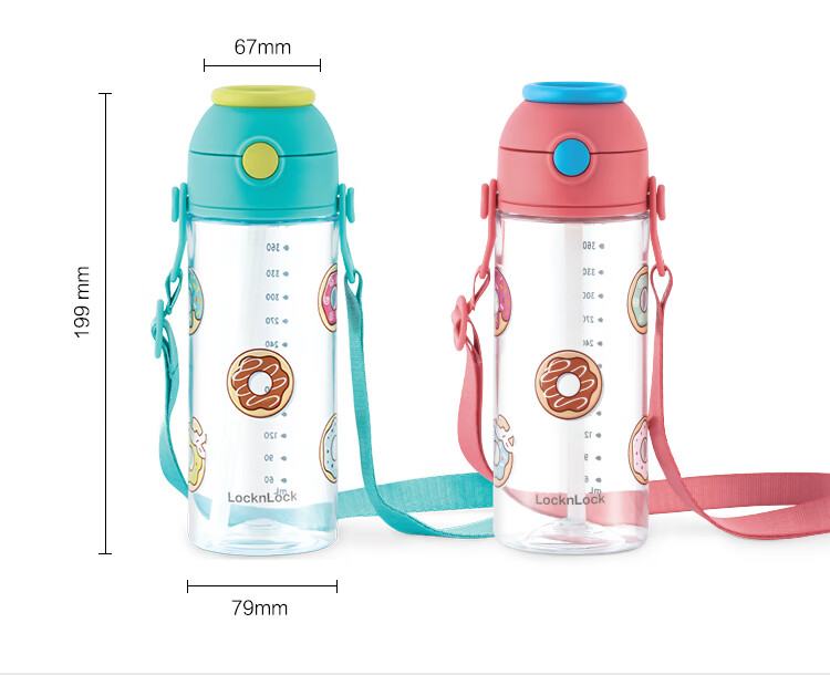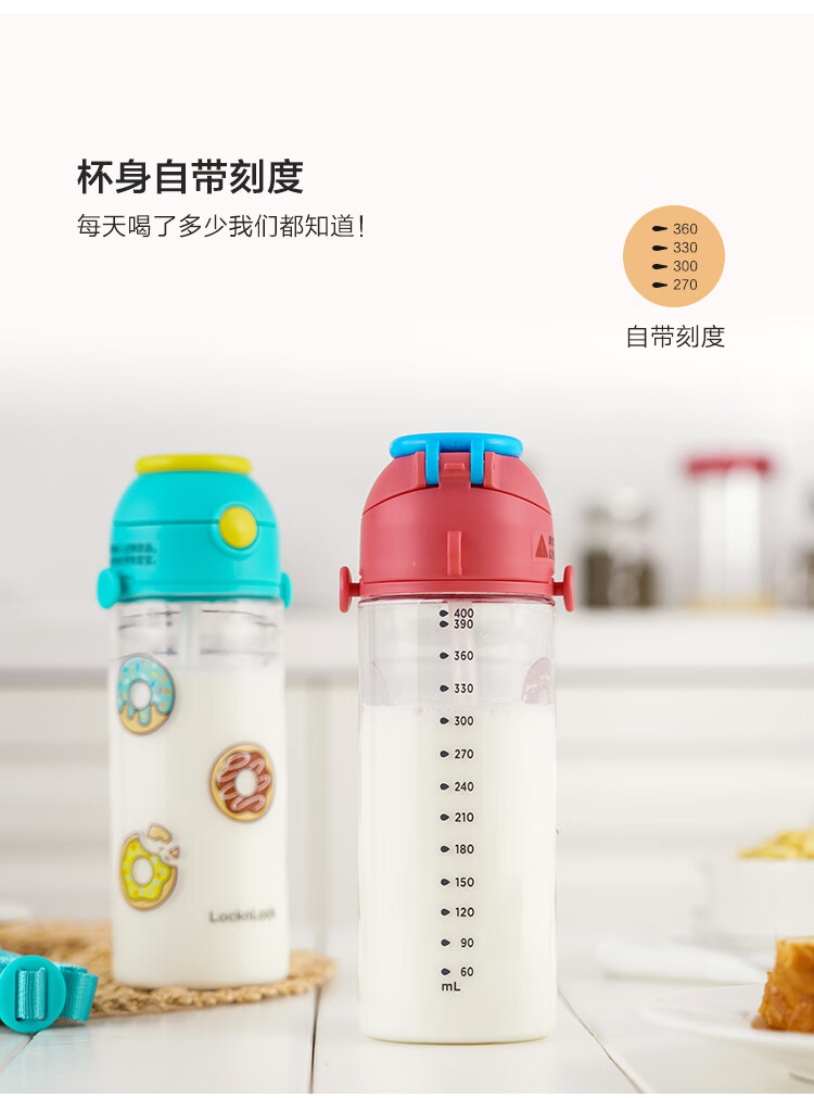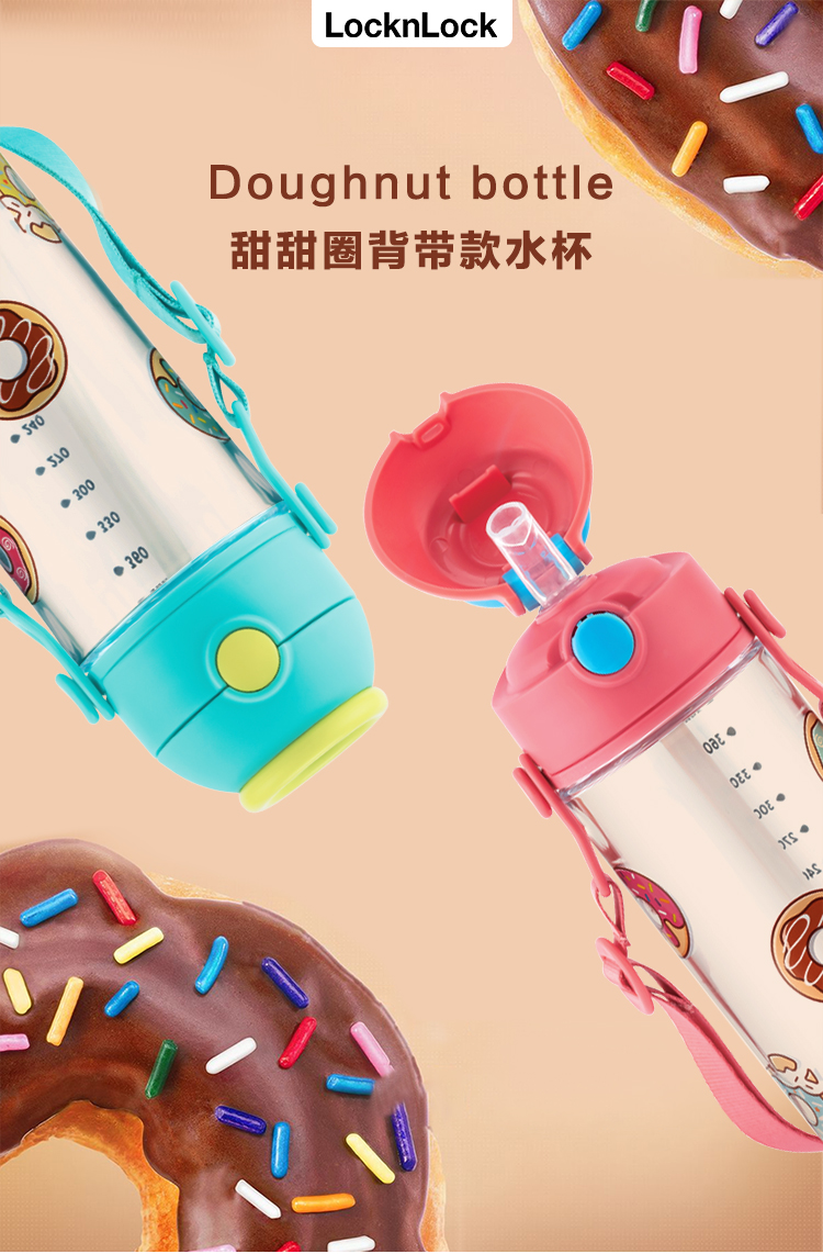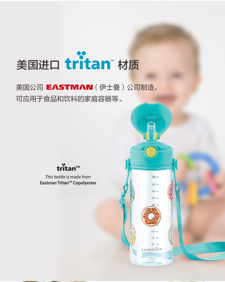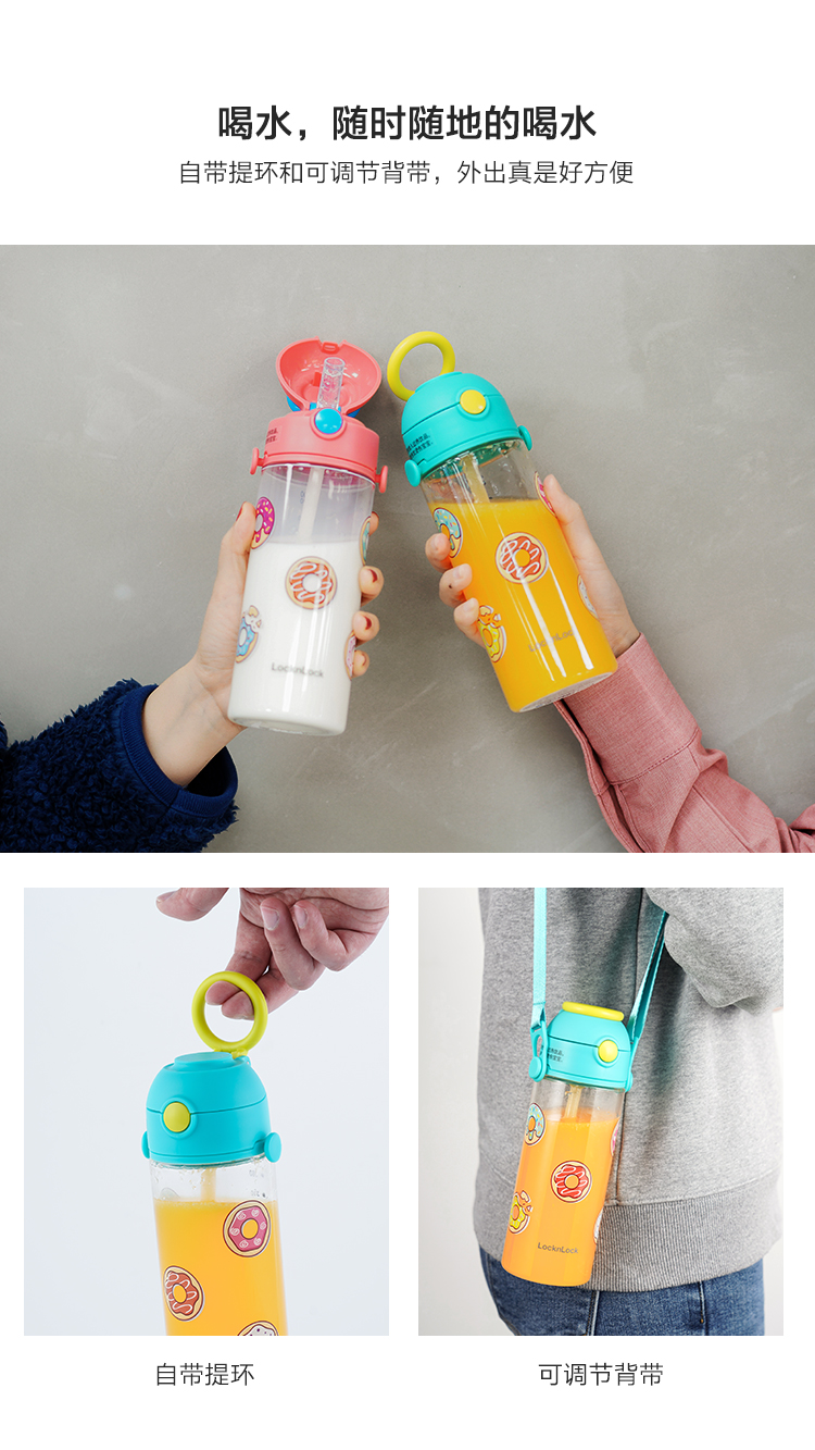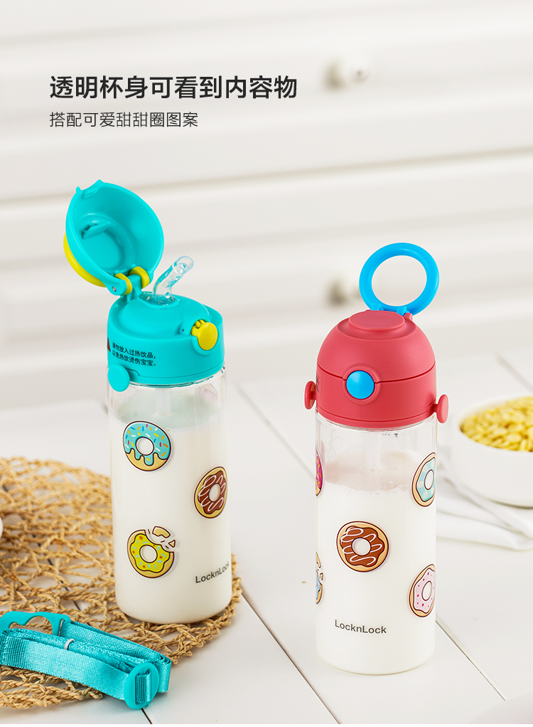 乐扣乐扣(LOCK&LOCK)儿童水杯甜甜圈吸管杯tritan材质学生户外拎手背带杯子460ml绿