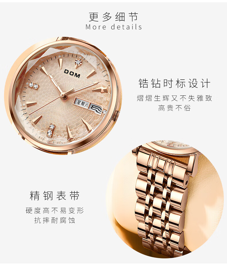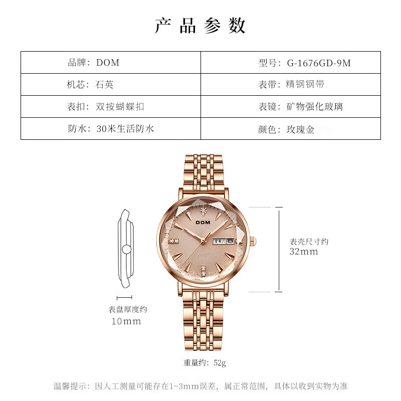 DOM2025新款手表女士品牌十大名表机械风石英生日礼物情人节送女友