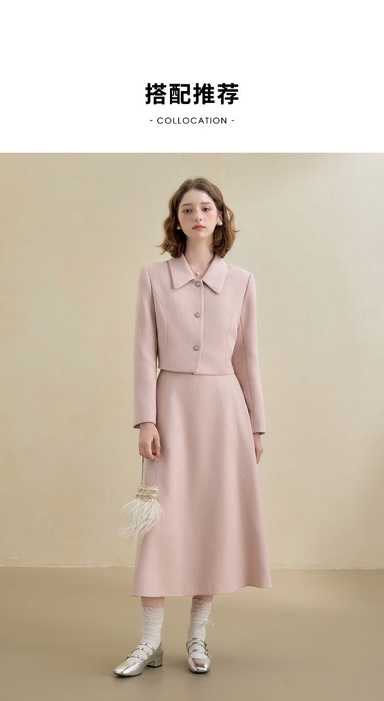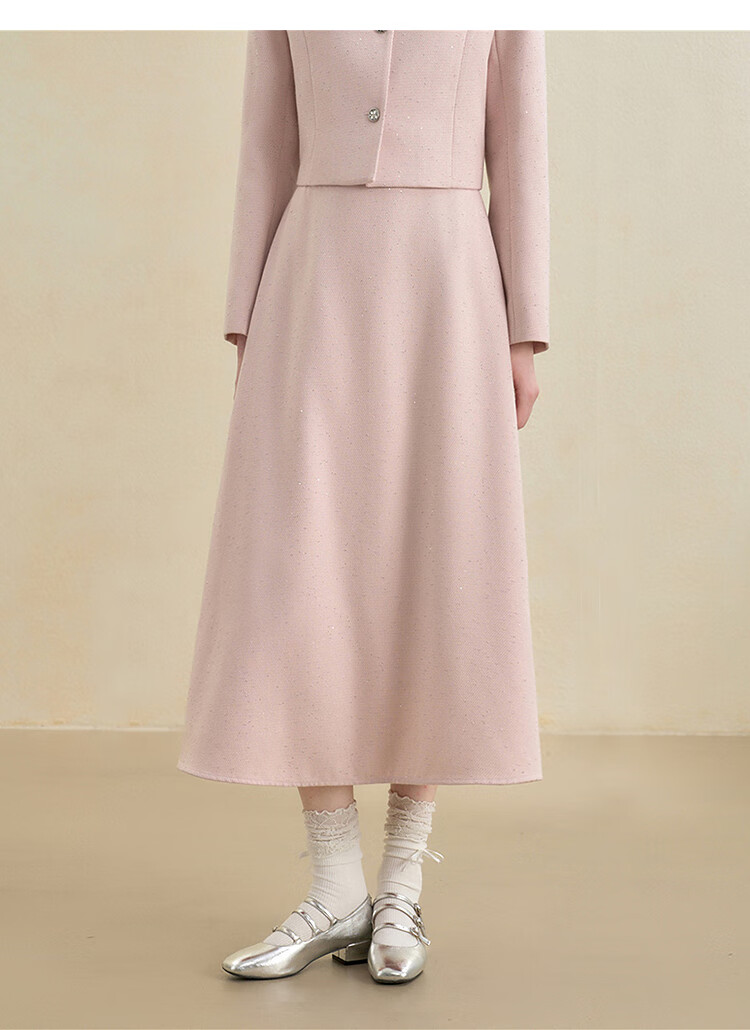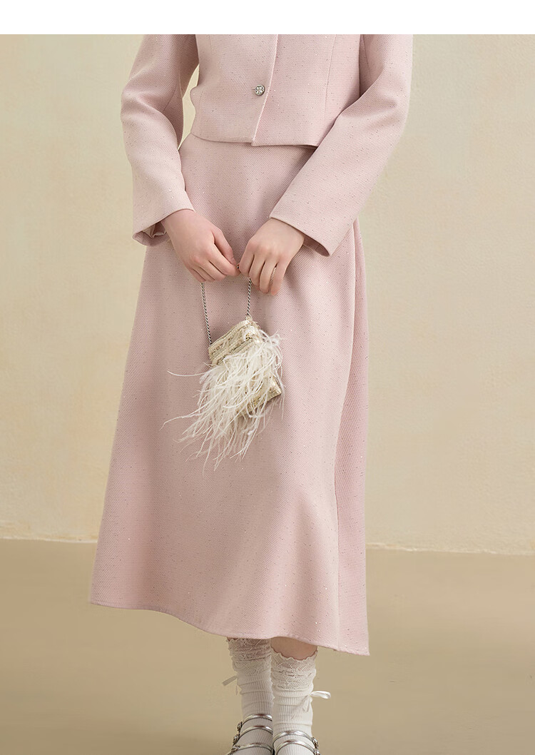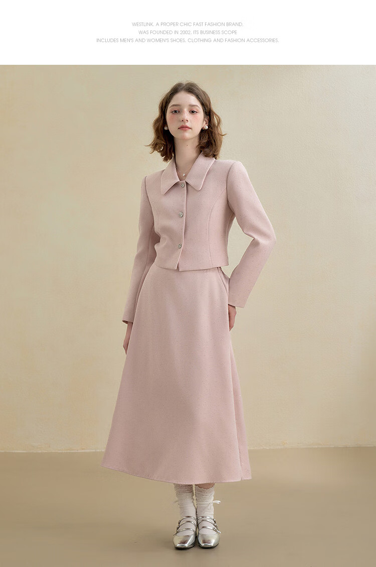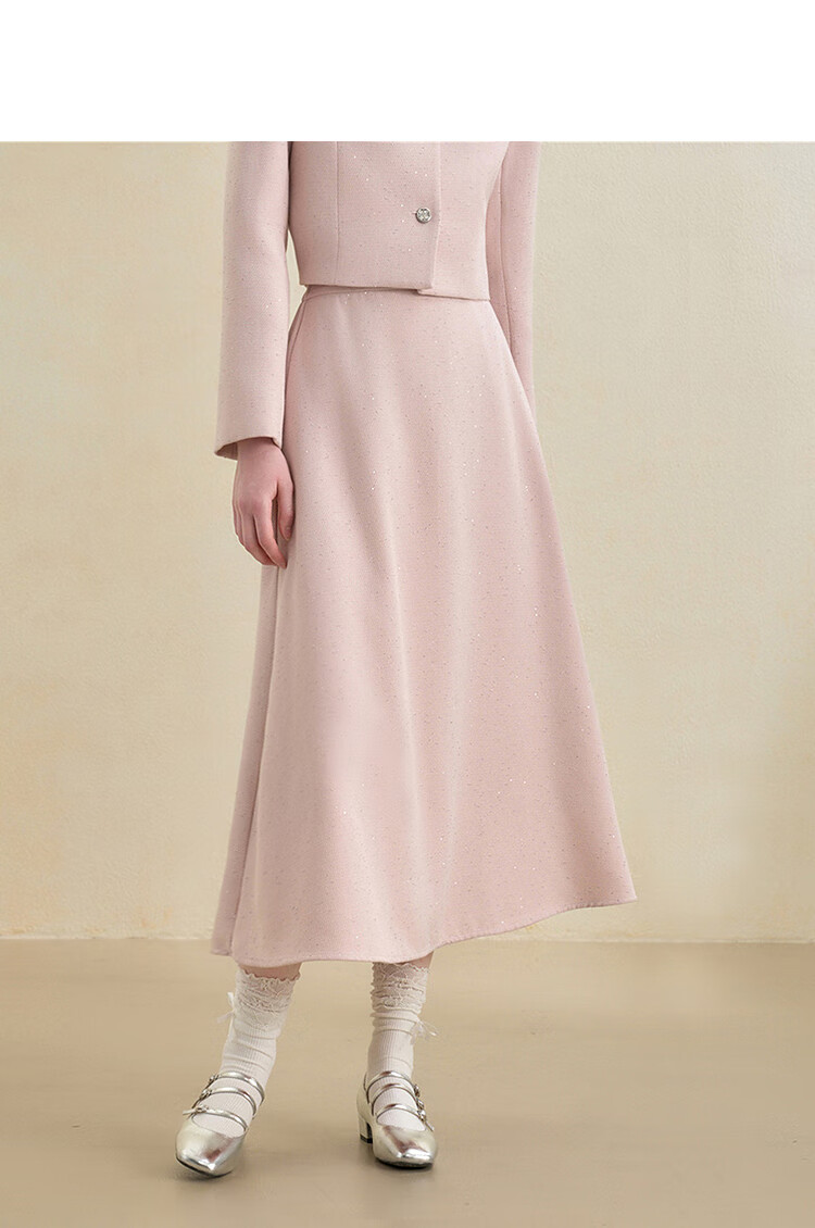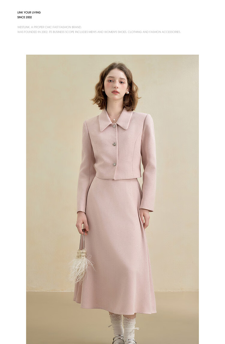 西遇(Westlink)西遇法式烫钻气质小香风半身裙女秋季高腰遮胯显瘦A字长裙 粉色 26/28/29预售10月17日 M (27)