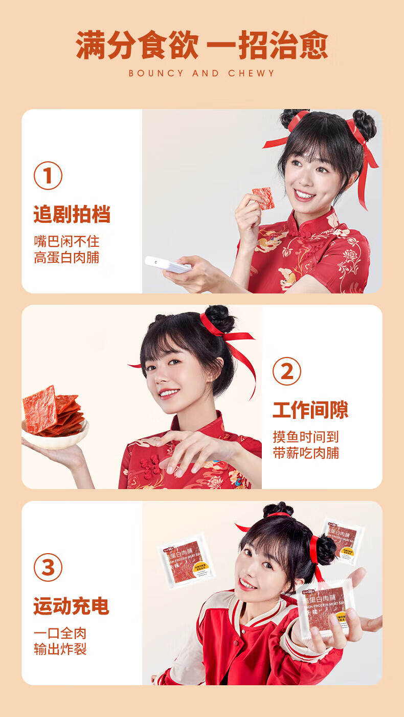 盐津铺子 肉脯休闲食品 手撕肉片干鸡肉脯猪肉脯芝麻味原味零食小吃 高蛋白肉脯(原味) 共30包约85g