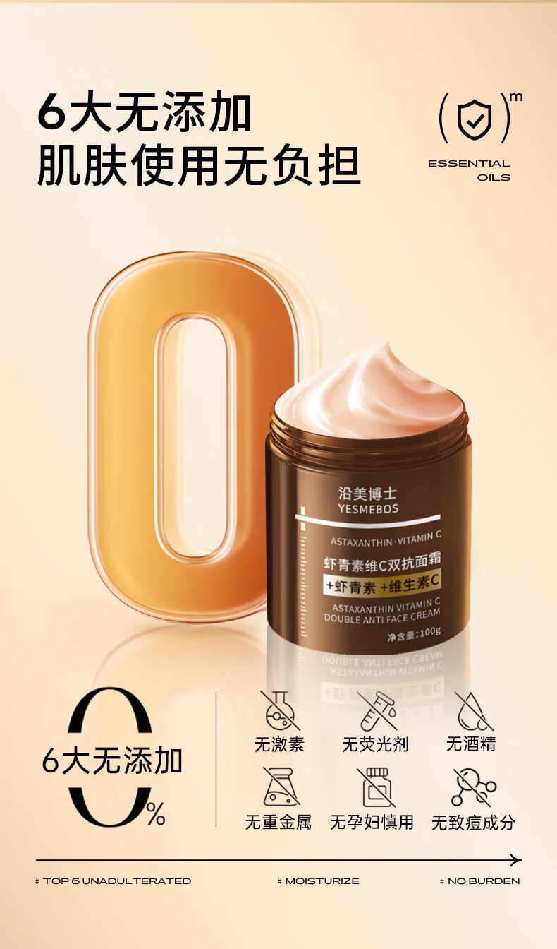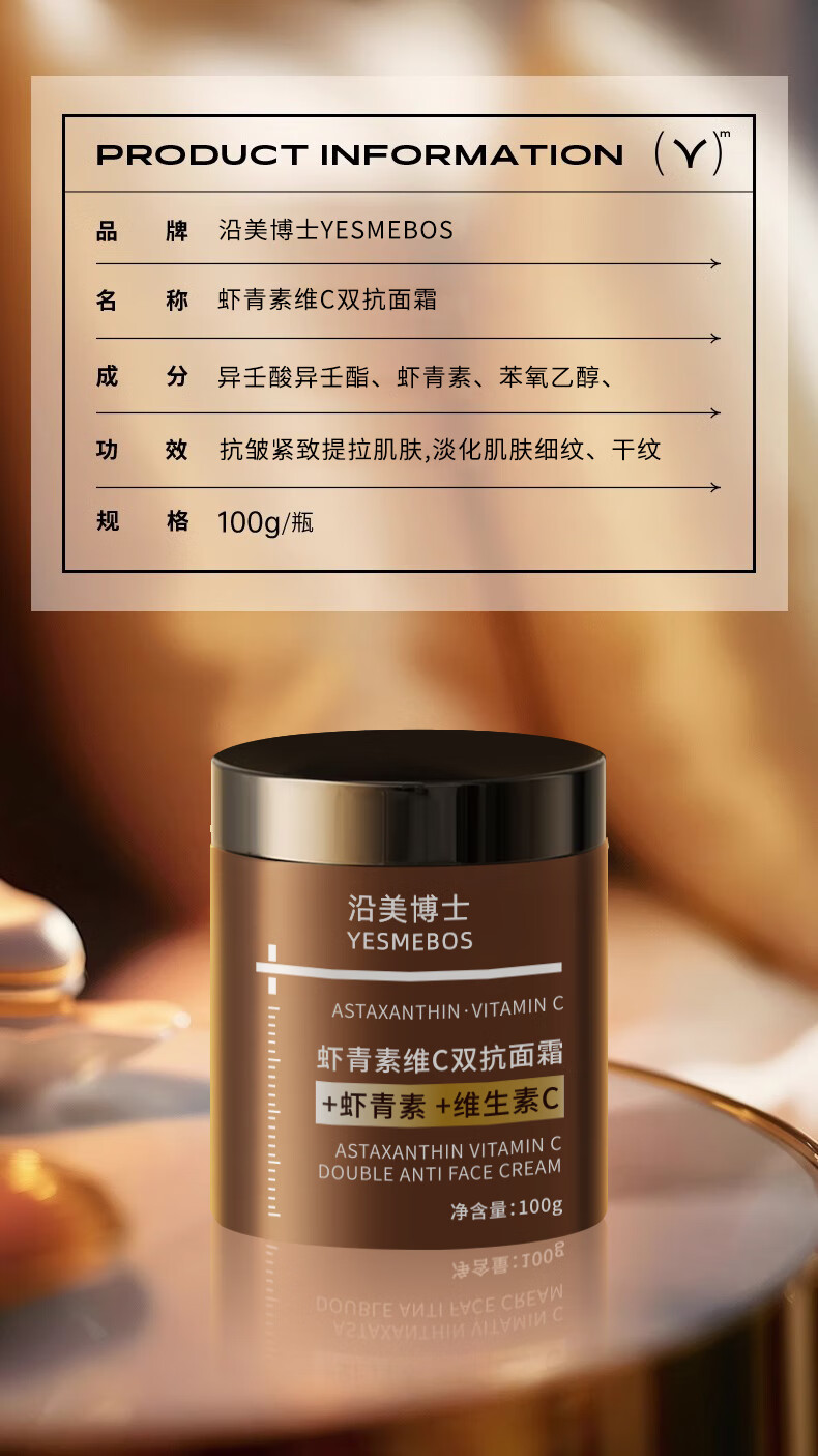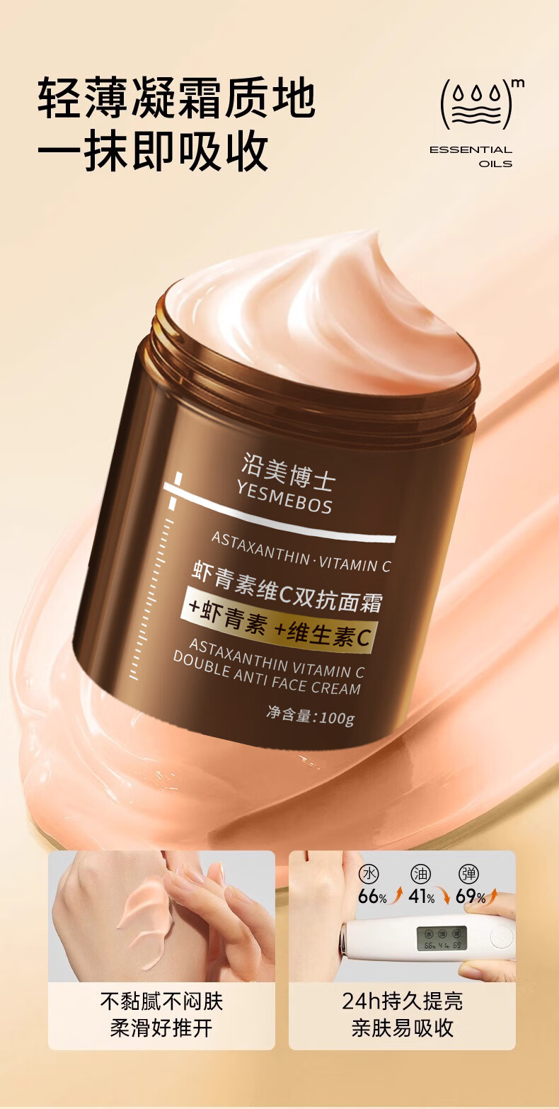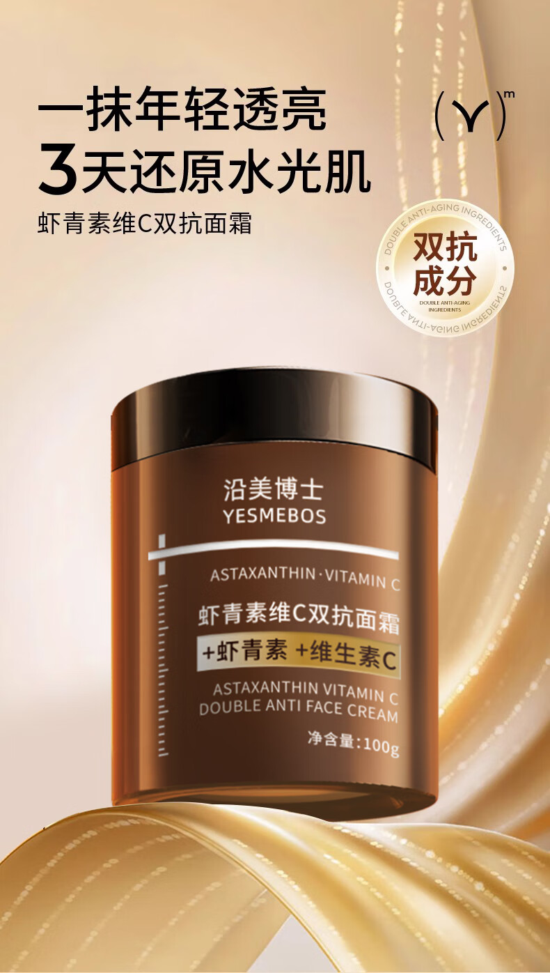 梦若羽虾青素保湿抗皱紧致面霜维c双抗黄提亮抗氧化皱紧致淡细纹抗初老 一瓶装 虾青素面霜