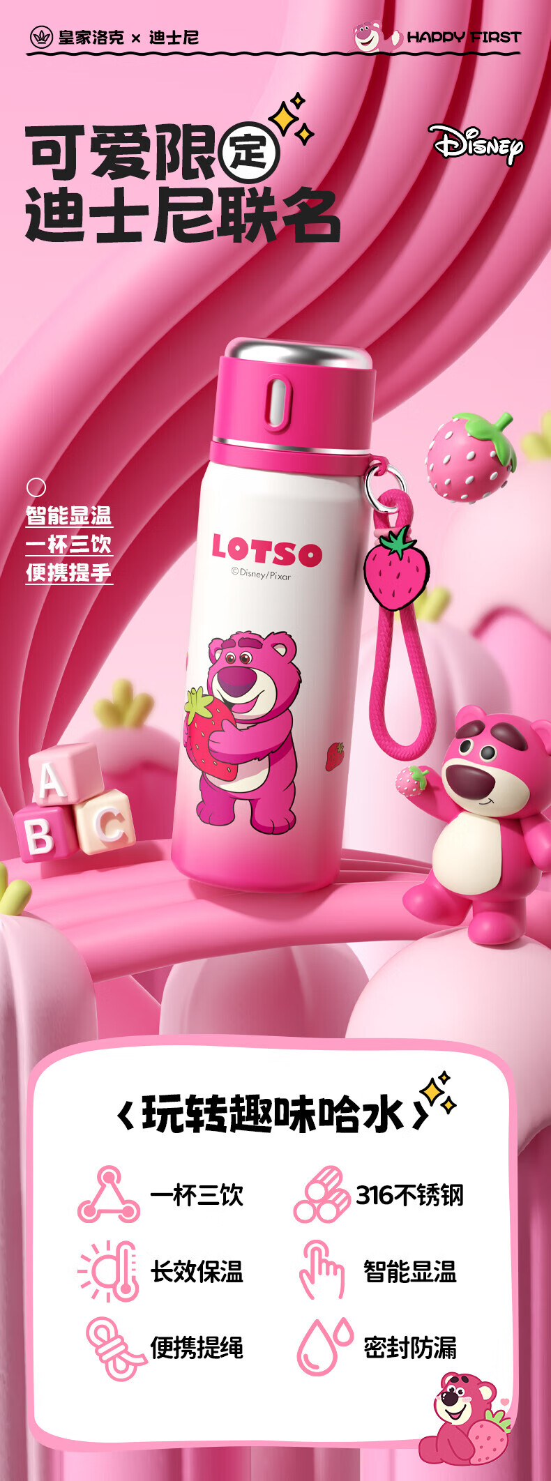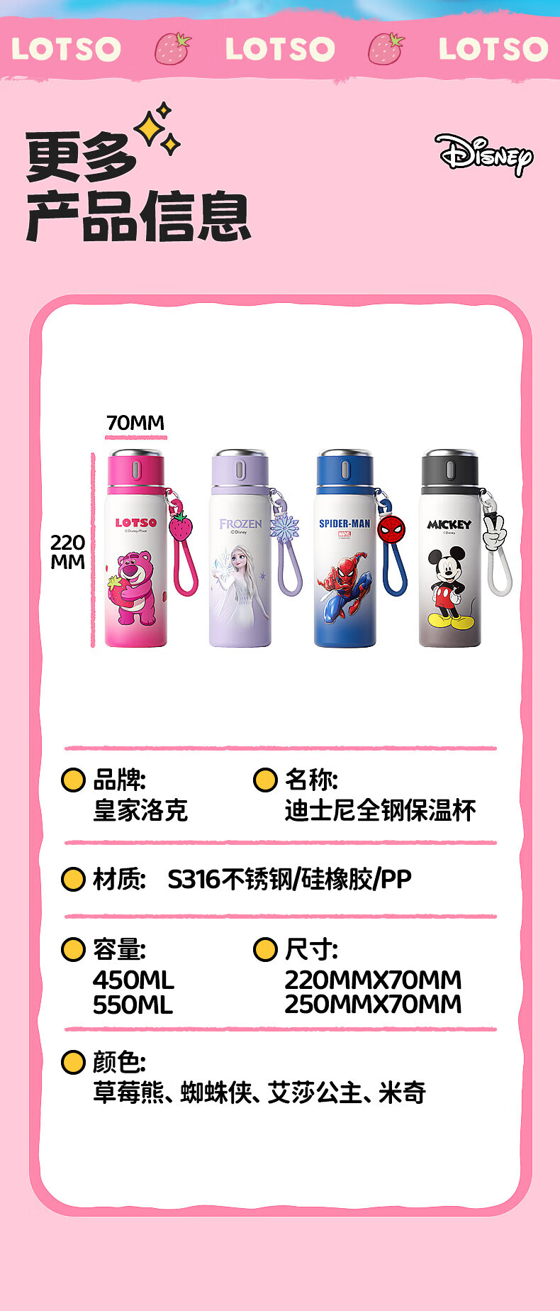 皇家洛克儿童保温杯幼儿园316不锈钢大容量便携水壶带直饮男女小学生水杯 艾莎公主550ml